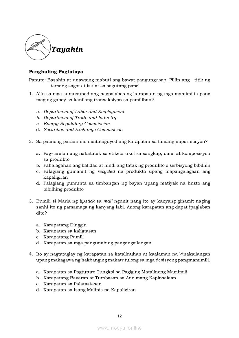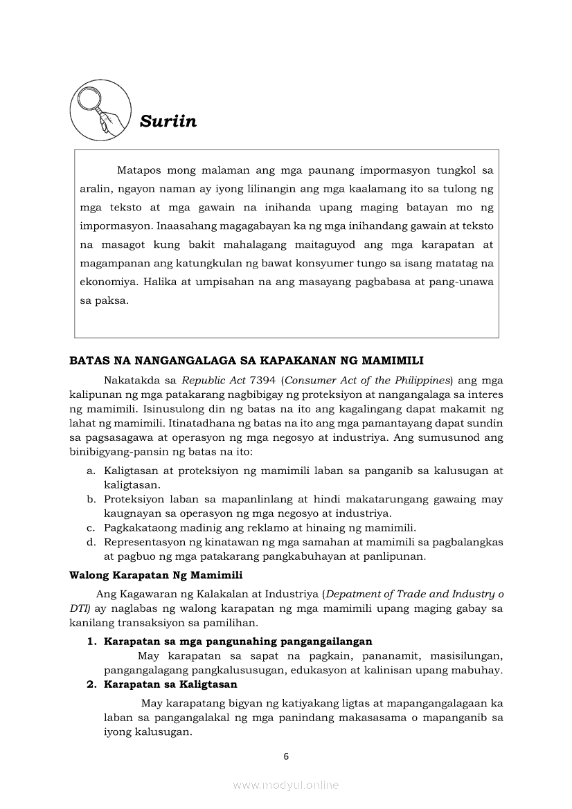 Araling Panlipunan 9 Modyul 6: Mga Karapatan at Tungkulin bilang Isang MamimiliApr 22, 2021 Grade 9Xiaomi Redmi Watch 5 Active 2inch LCD Display Clear Calling 5ATM Waterproof Smart Watch for only ₱3,999 ₱1,200!. Araling Panlipunan 9RelatedAraling Panlipunan Ikaapat na Markahan – Modyul 8: Kalakalang PanlabasAraling Panlipunan Ikaapat na Markahan – Modyul 4: Suliranin sa Sektor ng AgrikulturaAraling Panlipunan Ikaapat na Markahan – Modyul 3: Sektor ng AgrikulturaAraling Panlipunan Ikaapat na Markahan – Modyul 1: Konsepto at Palatandaan ng Pambansang KaunlaranAraling Panlipunan Ikaapat na Markahan – Modyul 2: Sama-samang Pagkilos para sa Pambansang Kaunlaran