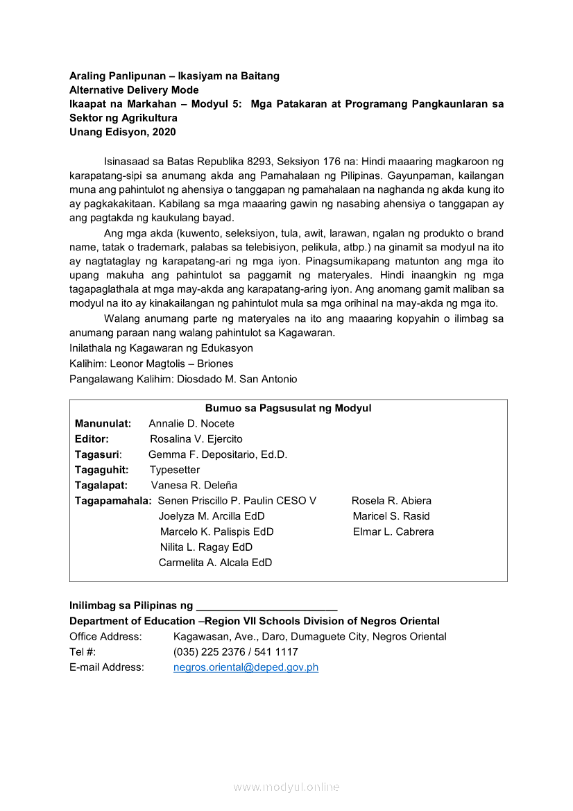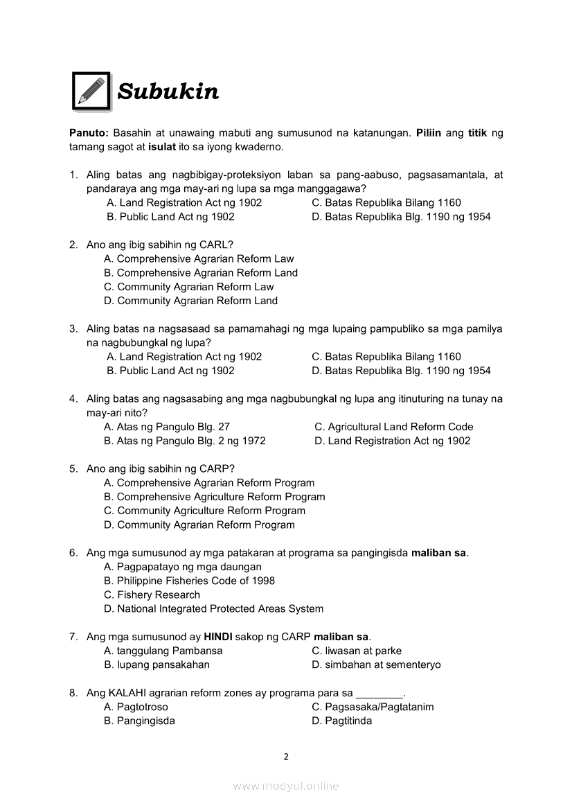 Araling Panlipunan Ikaapat na Markahan – Modyul 5: Mga Patakaran at Programang Pangkaunlaran sa Sektor ng AgrikulturaMay 28, 2021 Grade 9Xiaomi Redmi Watch 5 Active 2inch LCD Display Clear Calling 5ATM Waterproof Smart Watch for only ₱3,999 ₱1,200!. Araling Panlipunan 9 4th QuarterRelatedAraling Panlipunan Ikaapat na Markahan – Modyul 1: Konsepto at Palatandaan ng Pambansang KaunlaranAraling Panlipunan Ikaapat na Markahan – Modyul 2: Sama-samang Pagkilos para sa Pambansang KaunlaranAraling Panlipunan Ikaapat na Markahan – Modyul 3: Sektor ng AgrikulturaAraling Panlipunan Ikaapat na Markahan – Modyul 7: Ang Impormal na Sektor: Mga Dahilan at Epekto nito sa EkonomiyaAraling Panlipunan Ikaapat na Markahan – Modyul 4: Suliranin sa Sektor ng Agrikultura