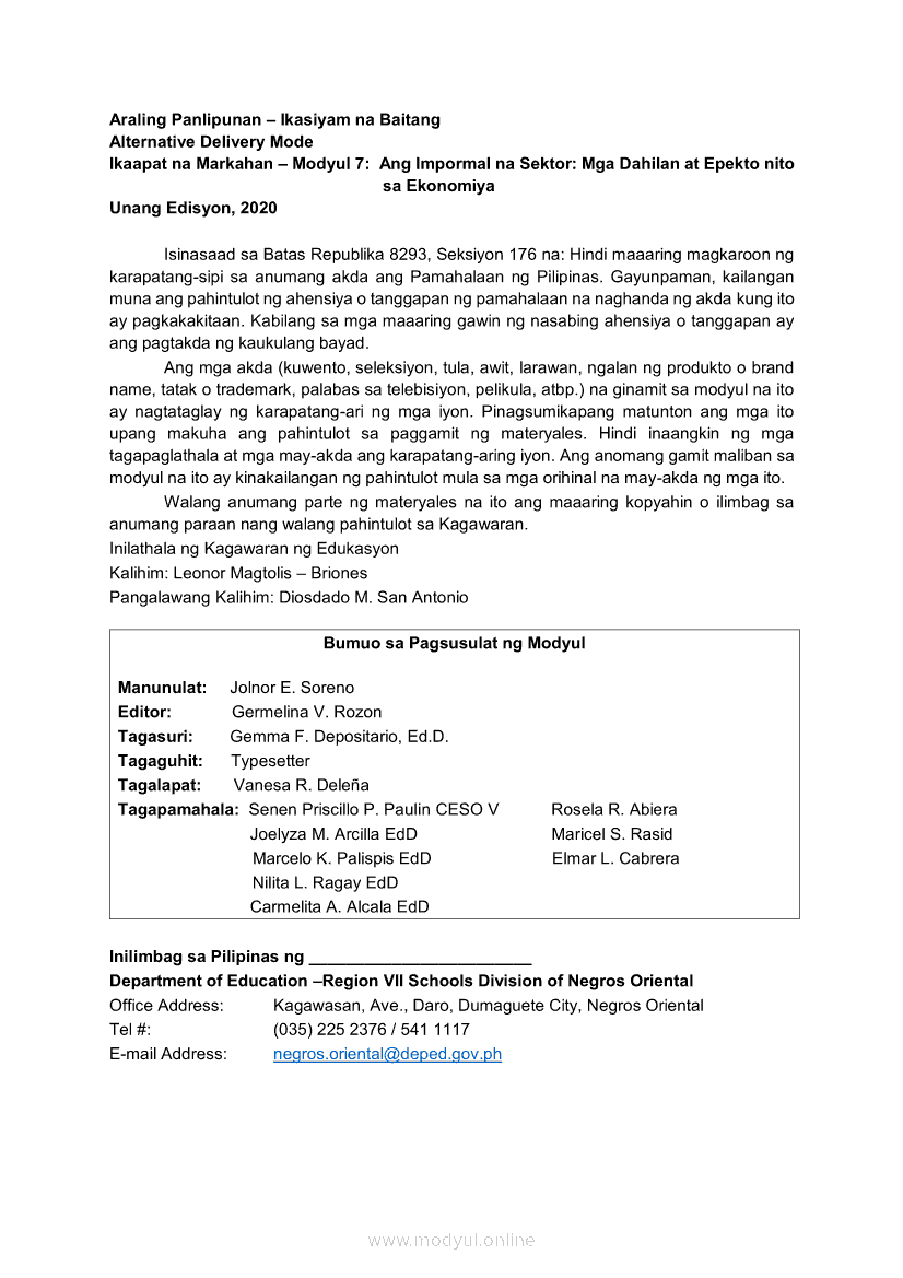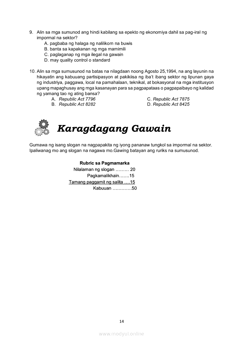 Araling Panlipunan Ikaapat na Markahan – Modyul 7: Ang Impormal na Sektor: Mga Dahilan at Epekto nito sa EkonomiyaMay 28, 2021 Grade 9Xiaomi Redmi Watch 5 Active 2inch LCD Display Clear Calling 5ATM Waterproof Smart Watch for only ₱3,999 ₱1,200!. Araling Panlipunan 9 4th QuarterRelatedAraling Panlipunan Ikaapat na Markahan – Modyul 4: Suliranin sa Sektor ng AgrikulturaAraling Panlipunan Ikaapat na Markahan – Modyul 3: Sektor ng AgrikulturaAraling Panlipunan Ikaapat na Markahan – Modyul 5: Mga Patakaran at Programang Pangkaunlaran sa Sektor ng AgrikulturaAraling Panlipunan Ikaapat na Markahan – Modyul 8: Kalakalang PanlabasAraling Panlipunan Ikaapat na Markahan – Modyul 6: Mga Patakaran at Programa sa Sektor ng Industriya at Paglilingkod
