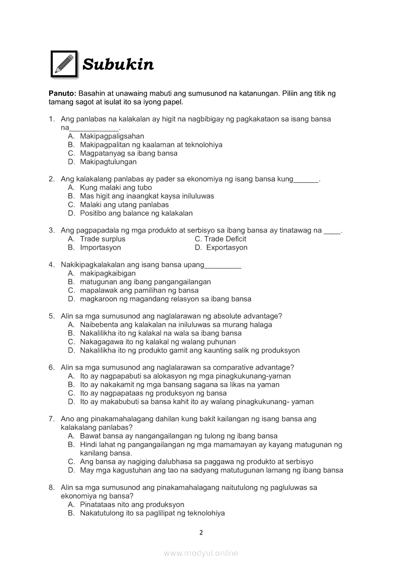 Araling Panlipunan Ikaapat na Markahan – Modyul 8: Kalakalang PanlabasMay 28, 2021 Grade 9Xiaomi Redmi Watch 5 Active 2inch LCD Display Clear Calling 5ATM Waterproof Smart Watch for only ₱3,999 ₱1,200!. Araling Panlipunan 9 4th QuarterRelatedAraling Panlipunan Ikaapat na Markahan – Modyul 1: Konsepto at Palatandaan ng Pambansang KaunlaranAraling Panlipunan Ikaapat na Markahan – Modyul 4: Suliranin sa Sektor ng AgrikulturaAraling Panlipunan Ikaapat na Markahan – Modyul 5: Mga Patakaran at Programang Pangkaunlaran sa Sektor ng AgrikulturaAraling Panlipunan Ikaapat na Markahan – Modyul 6: Mga Patakaran at Programa sa Sektor ng Industriya at PaglilingkodAraling Panlipunan Ikaapat na Markahan – Modyul 7: Ang Impormal na Sektor: Mga Dahilan at Epekto nito sa Ekonomiya