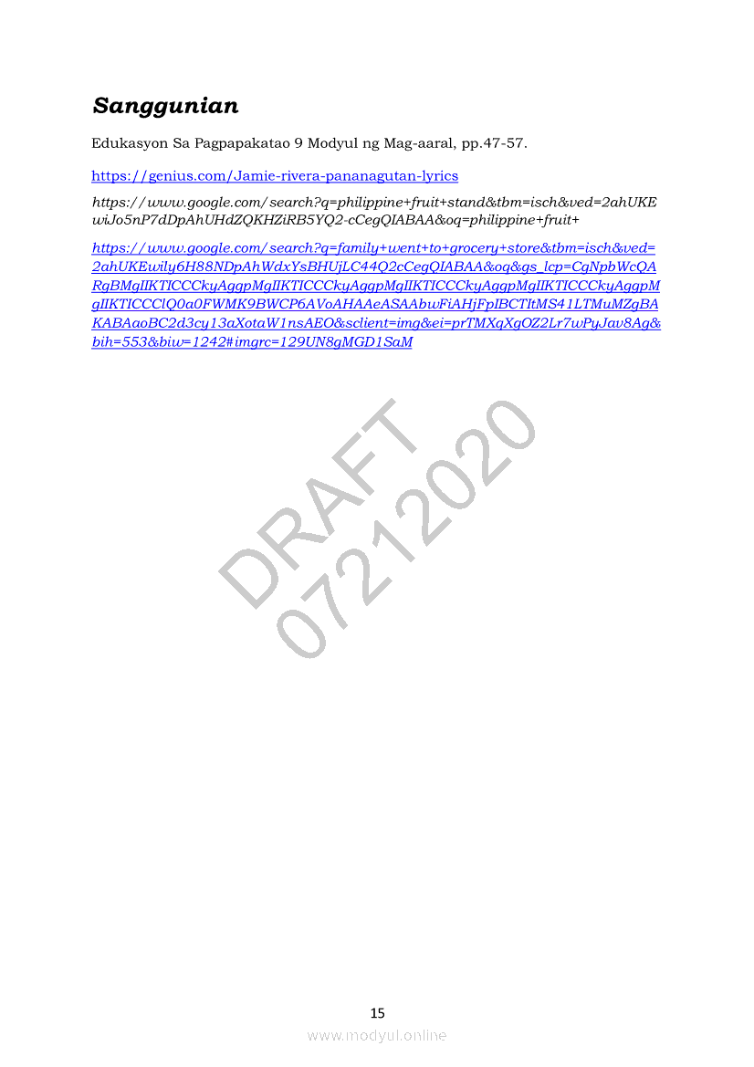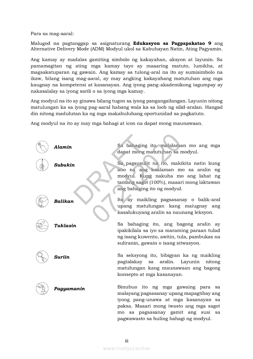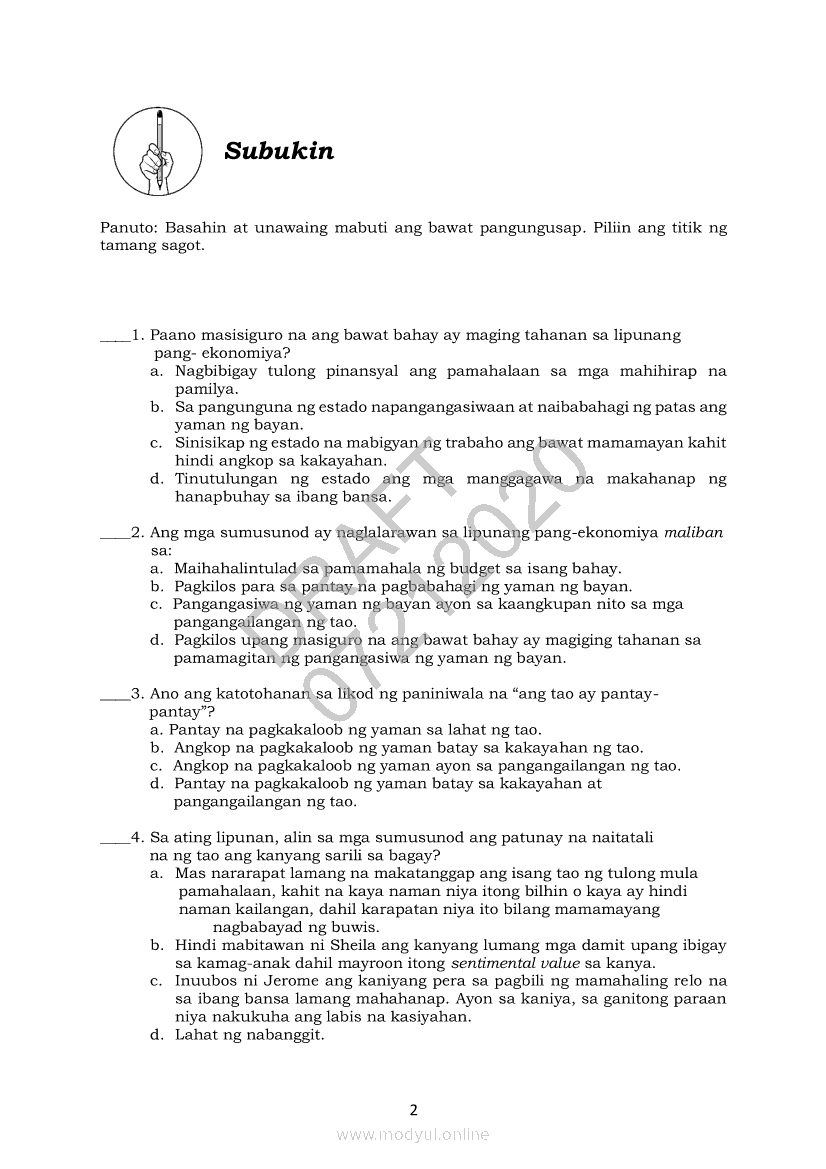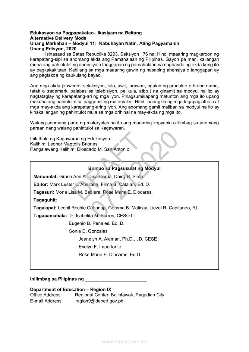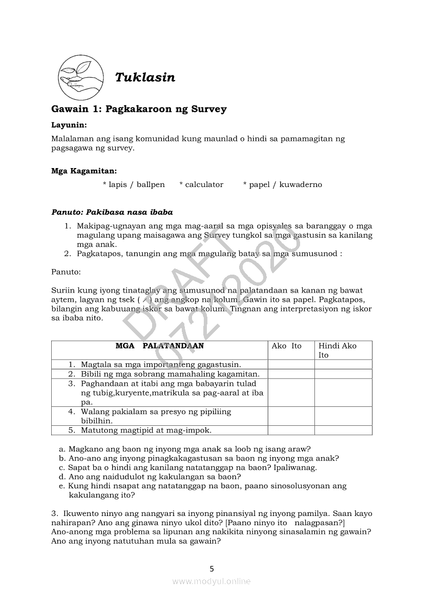 Edukasyon sa Pagpapakatao 9 Modyul 11: Kabuhayan Natin, Ating PagyamaninApr 22, 2021 Grade 9Xiaomi Redmi Watch 5 Active 2inch LCD Display Clear Calling 5ATM Waterproof Smart Watch for only ₱3,999 ₱1,200!. Edukasyon sa Pagpapakatao 9RelatedEdukasyon sa Pagpapakatao Ikaapat na Markahan – Modyul 3: Personal na Pahayag ng Misyon sa Buhay (Ikatlong Linggo)Edukasyon sa Pagpapakatao Ikaapat na Markahan- Modyul 2: Mga Pansariling Salik sa Pagpili ng Track o Kursong Akademik, Teknikal-Bokasyonal, Sining at Disenyo, at Isports. (Ikalawang Linggo)Edukasyon sa Pagpapakatao Ikaapat na Markahan – Modyul 4: Personal na Pahayag ng Misyon sa Buhay (Ikaapat na Linggo)Edukasyon sa Pagpapakatao Ikaapat na Markahan- Modyul 1: Mga Pansariling Salik sa Pagpili ng Track o Kursong Akademik, Teknikal-Bokasyonal, Sining at Disenyo, at Isports. (Unang Linggo)Edukasyon sa Pagpapakatao 9 Modyul 15: Hawak Kamay, Tungo sa Tagumpay
