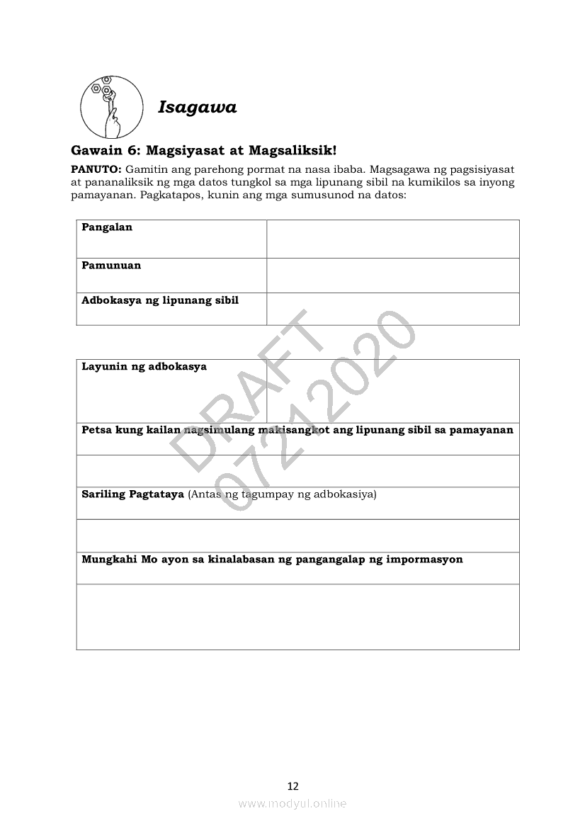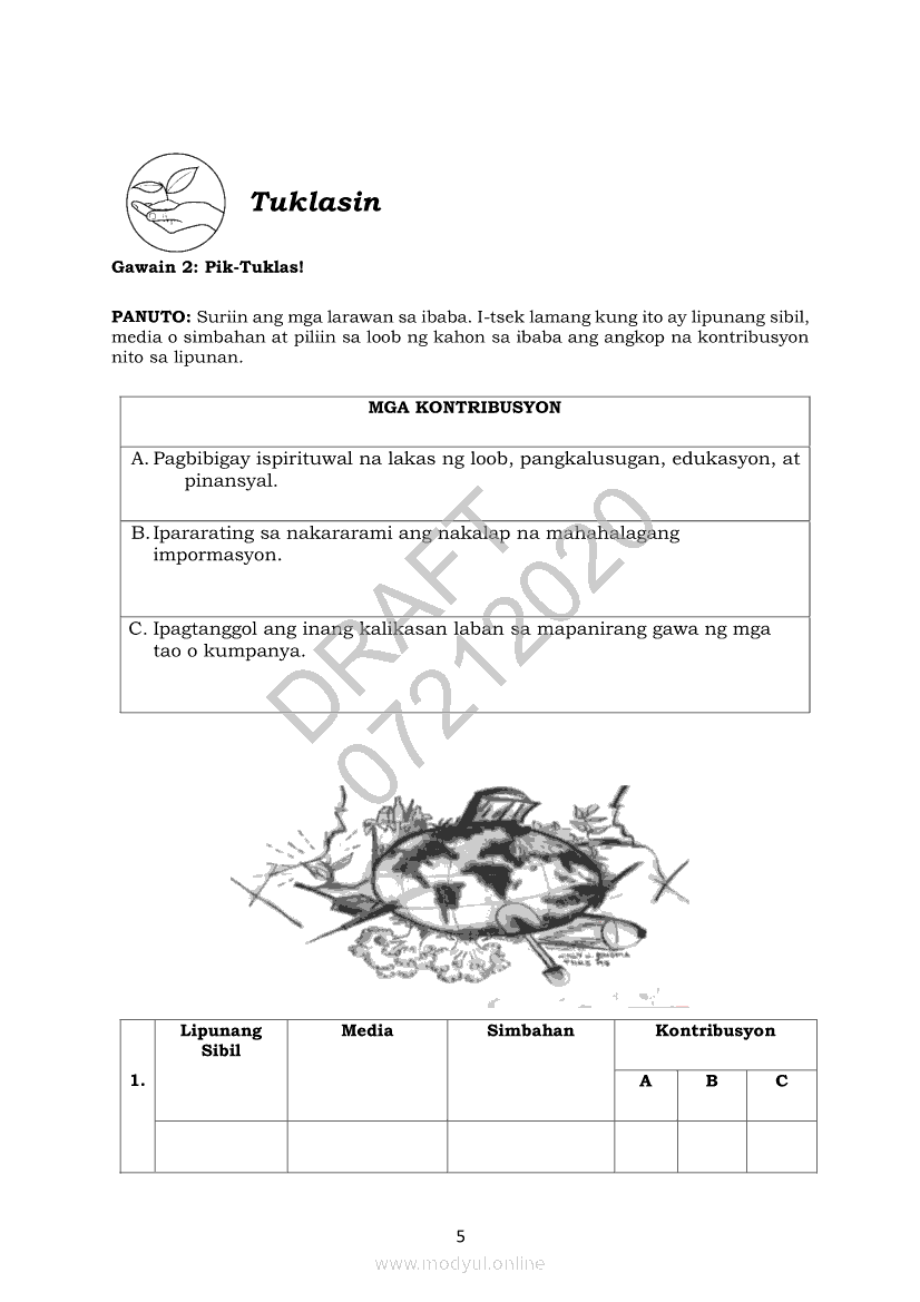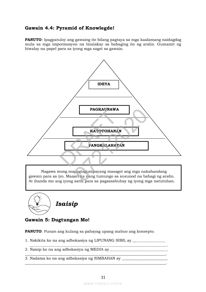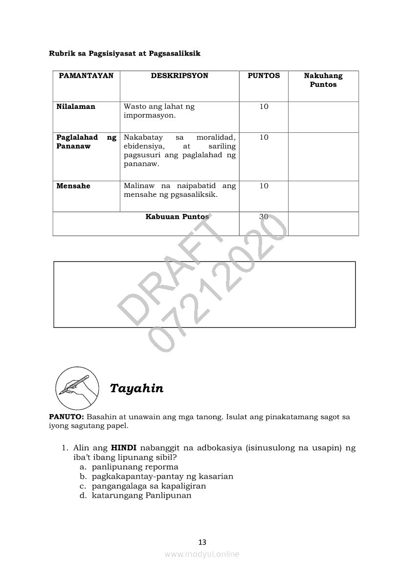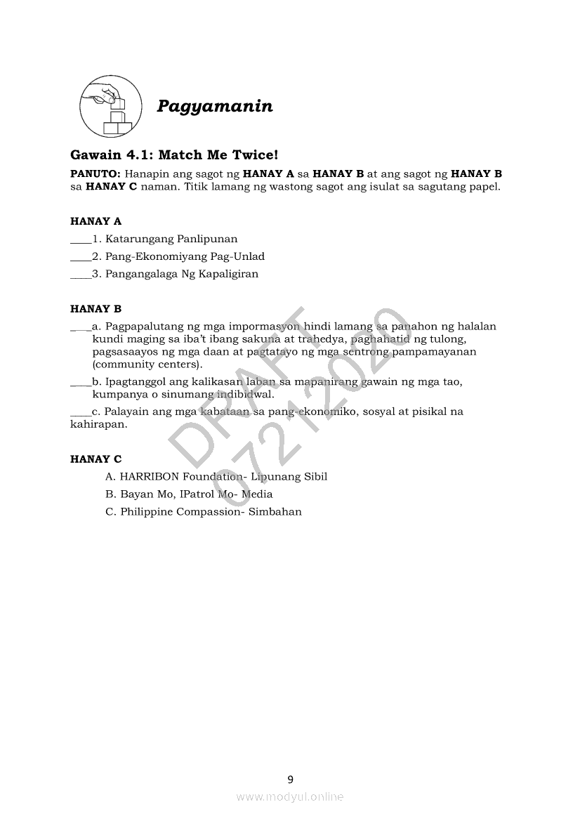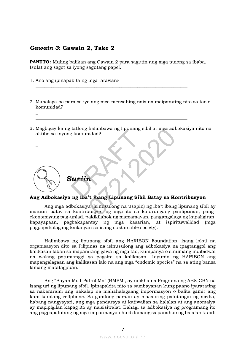 Edukasyon sa Pagpapakatao 9 Modyul 16: Sama-samang Pagkilos, Sama-samang Pag-unladApr 22, 2021 Grade 9Xiaomi Redmi Watch 5 Active 2inch LCD Display Clear Calling 5ATM Waterproof Smart Watch for only ₱3,999 ₱1,200!. Edukasyon sa Pagpapakatao 9RelatedEdukasyon sa Pagpapakatao Ikaapat na Markahan- Modyul 2: Mga Pansariling Salik sa Pagpili ng Track o Kursong Akademik, Teknikal-Bokasyonal, Sining at Disenyo, at Isports. (Ikalawang Linggo)Edukasyon sa Pagpapakatao Ikaapat na Markahan- Modyul 1: Mga Pansariling Salik sa Pagpili ng Track o Kursong Akademik, Teknikal-Bokasyonal, Sining at Disenyo, at Isports. (Unang Linggo)Edukasyon sa Pagpapakatao Ikaapat na Markahan – Modyul 3: Personal na Pahayag ng Misyon sa Buhay (Ikatlong Linggo)Edukasyon sa Pagpapakatao Ikaapat na Markahan – Modyul 4: Personal na Pahayag ng Misyon sa Buhay (Ikaapat na Linggo)Edukasyon sa Pagpapakatao 9 Ikalawang Markahan – Modyul 3: Ang Paggawa Bilang Paglilingkod at Pagtaguyod ng Dignidad ng Tao