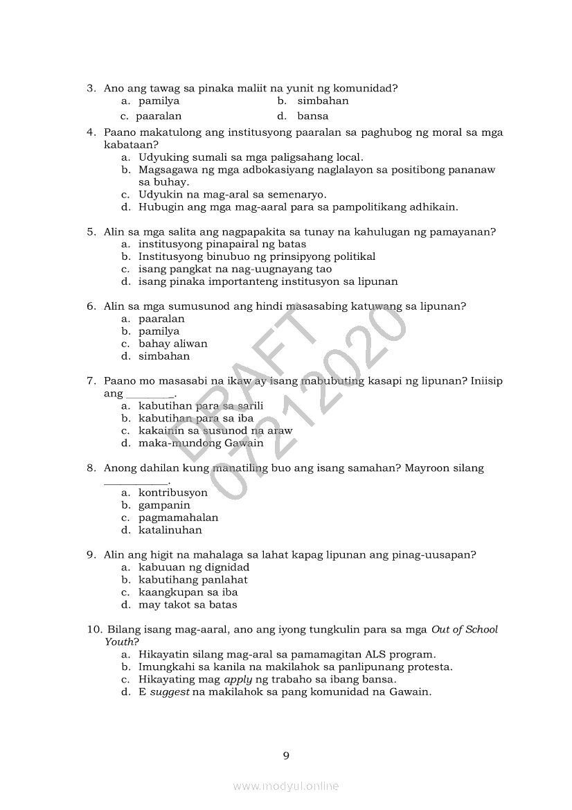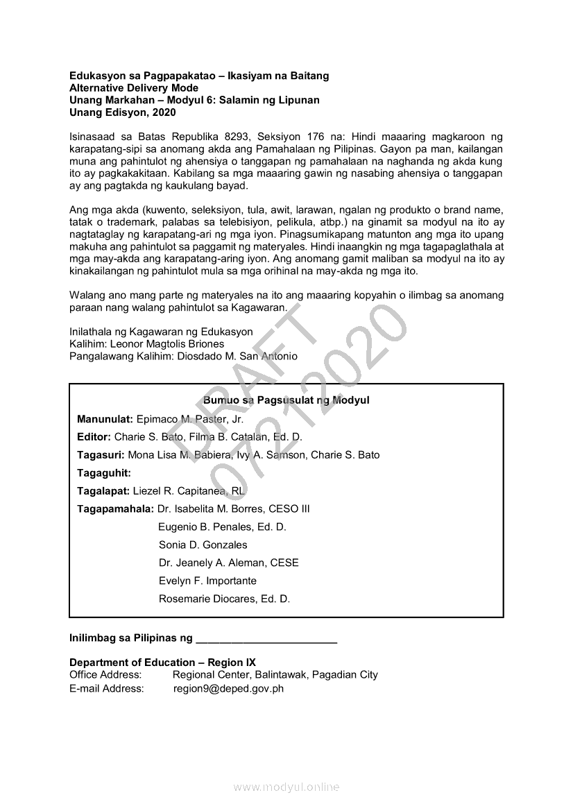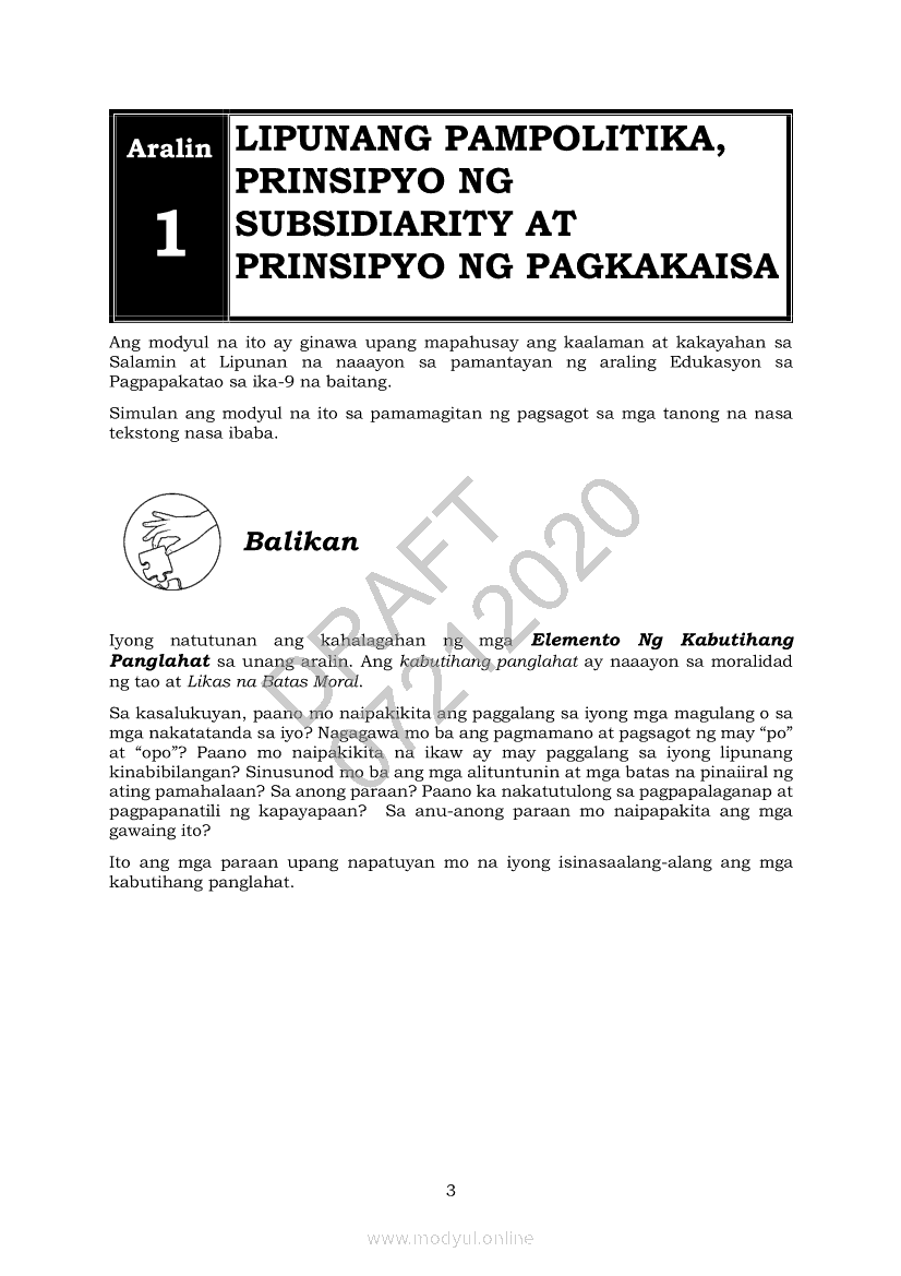 Edukasyon sa Pagpapakatao 9 Modyul 6: Salamin ng LipunanApr 22, 2021 Grade 9Xiaomi Redmi Watch 5 Active 2inch LCD Display Clear Calling 5ATM Waterproof Smart Watch for only ₱3,999 ₱1,200!. Edukasyon sa Pagpapakatao 9RelatedEdukasyon sa Pagpapakatao Ikaapat na Markahan – Modyul 4: Personal na Pahayag ng Misyon sa Buhay (Ikaapat na Linggo)Edukasyon sa Pagpapakatao Ikaapat na Markahan – Modyul 3: Personal na Pahayag ng Misyon sa Buhay (Ikatlong Linggo)Edukasyon sa Pagpapakatao Ikaapat na Markahan- Modyul 2: Mga Pansariling Salik sa Pagpili ng Track o Kursong Akademik, Teknikal-Bokasyonal, Sining at Disenyo, at Isports. (Ikalawang Linggo)Edukasyon sa Pagpapakatao Ikaapat na Markahan- Modyul 1: Mga Pansariling Salik sa Pagpili ng Track o Kursong Akademik, Teknikal-Bokasyonal, Sining at Disenyo, at Isports. (Unang Linggo)Edukasyon sa Pagpapakatao 9 Modyul 4: Layunin ng Lipunan: Kabutihang Panlahat, Lahat Maiaangat
