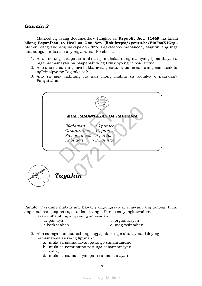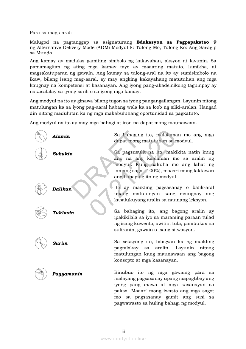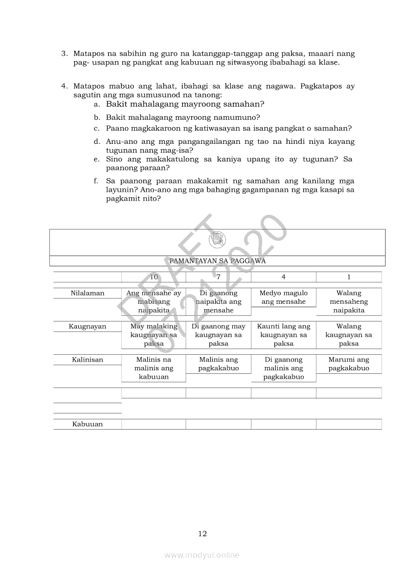 Edukasyon sa Pagpapakatao 9 Modyul 8: Tulong Mo, Tulong Ko: Ang Sasagip sa MundoApr 22, 2021 Grade 9Xiaomi Redmi Watch 5 Active 2inch LCD Display Clear Calling 5ATM Waterproof Smart Watch for only ₱3,999 ₱1,200!. Edukasyon sa Pagpapakatao 9RelatedEdukasyon sa Pagpapakatao Ikaapat na Markahan- Modyul 1: Mga Pansariling Salik sa Pagpili ng Track o Kursong Akademik, Teknikal-Bokasyonal, Sining at Disenyo, at Isports. (Unang Linggo)Edukasyon sa Pagpapakatao Ikaapat na Markahan – Modyul 4: Personal na Pahayag ng Misyon sa Buhay (Ikaapat na Linggo)Edukasyon sa Pagpapakatao Ikaapat na Markahan – Modyul 3: Personal na Pahayag ng Misyon sa Buhay (Ikatlong Linggo)Edukasyon sa Pagpapakatao Ikaapat na Markahan- Modyul 2: Mga Pansariling Salik sa Pagpili ng Track o Kursong Akademik, Teknikal-Bokasyonal, Sining at Disenyo, at Isports. (Ikalawang Linggo)Edukasyon sa Pagpapakatao 9 Modyul 1: Tulong sa Bayan, Isulong