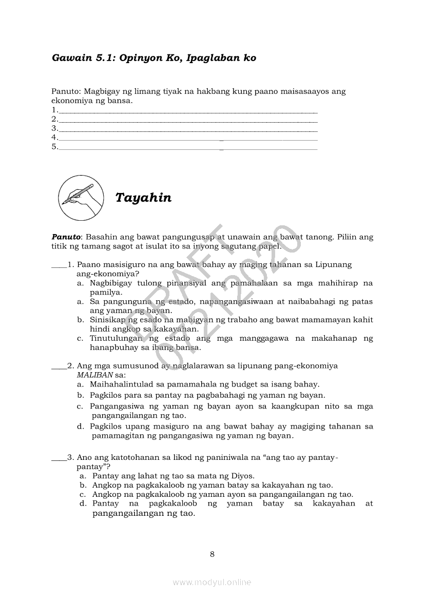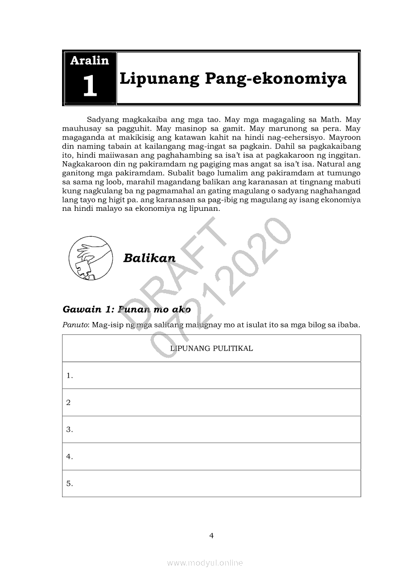 Edukasyon sa Pagpapakatao 9 Modyul 9: Lipunang Pang-ekonomiyaApr 22, 2021 Grade 9Xiaomi Redmi Watch 5 Active 2inch LCD Display Clear Calling 5ATM Waterproof Smart Watch for only ₱3,999 ₱1,200!. Edukasyon sa Pagpapakatao 9RelatedEdukasyon sa Pagpapakatao Ikaapat na Markahan – Modyul 3: Personal na Pahayag ng Misyon sa Buhay (Ikatlong Linggo)Edukasyon sa Pagpapakatao Ikaapat na Markahan- Modyul 1: Mga Pansariling Salik sa Pagpili ng Track o Kursong Akademik, Teknikal-Bokasyonal, Sining at Disenyo, at Isports. (Unang Linggo)Edukasyon sa Pagpapakatao Ikaapat na Markahan – Modyul 4: Personal na Pahayag ng Misyon sa Buhay (Ikaapat na Linggo)Edukasyon sa Pagpapakatao Ikaapat na Markahan- Modyul 2: Mga Pansariling Salik sa Pagpili ng Track o Kursong Akademik, Teknikal-Bokasyonal, Sining at Disenyo, at Isports. (Ikalawang Linggo)Edukasyon sa Pagpapakatao 9 Modyul 12: Magsikap para sa Hinaharap