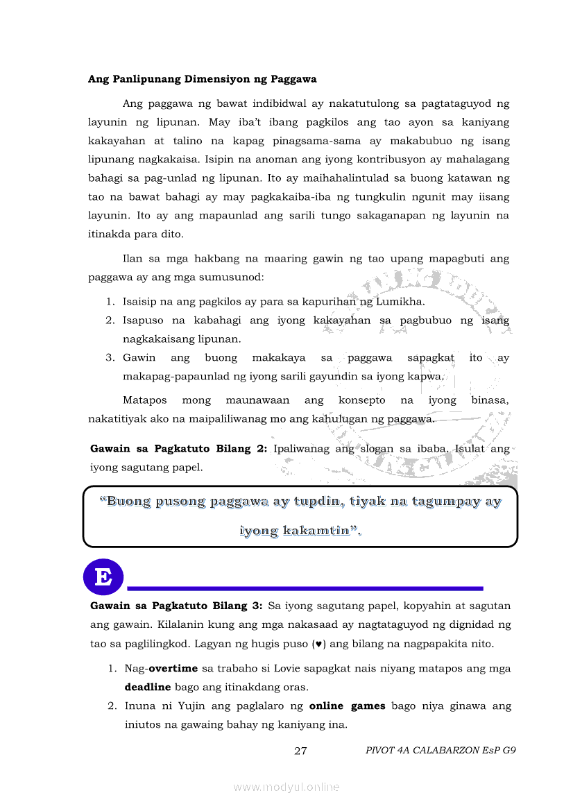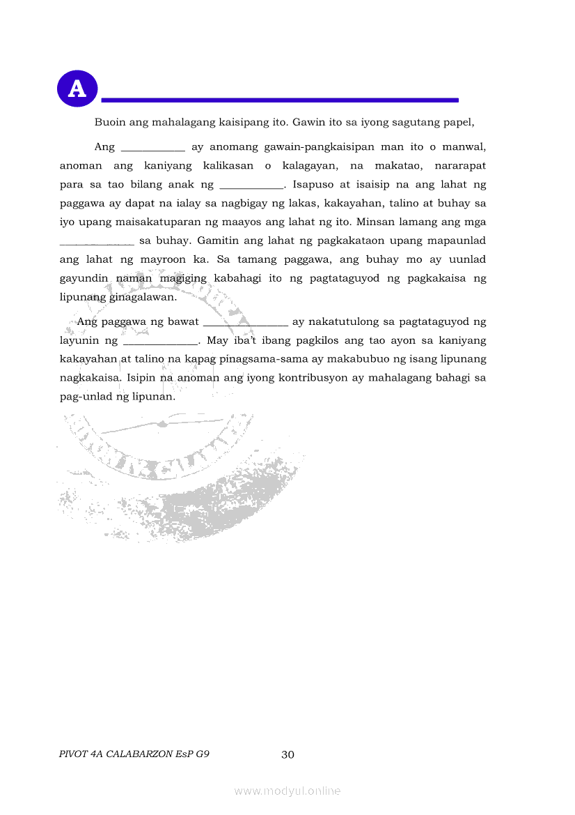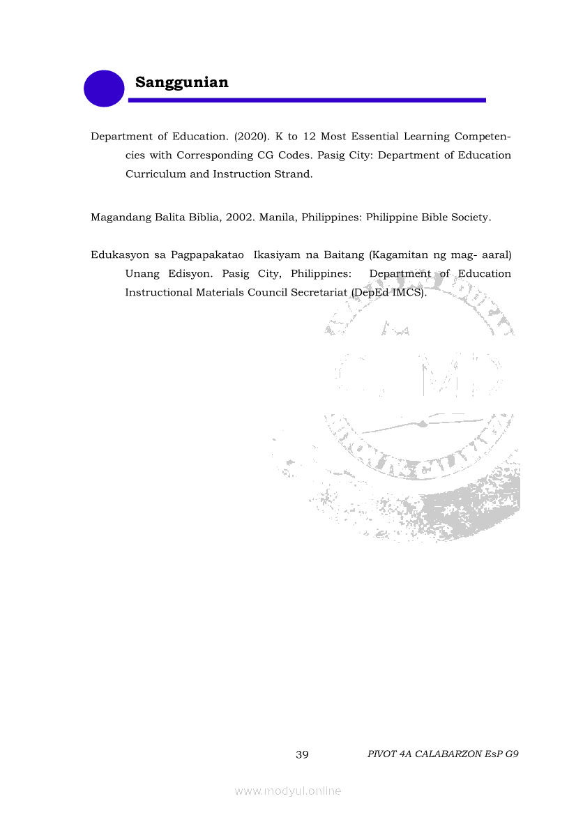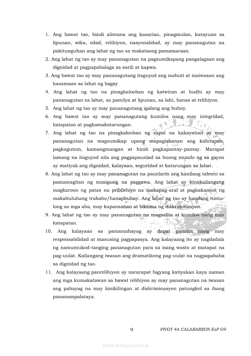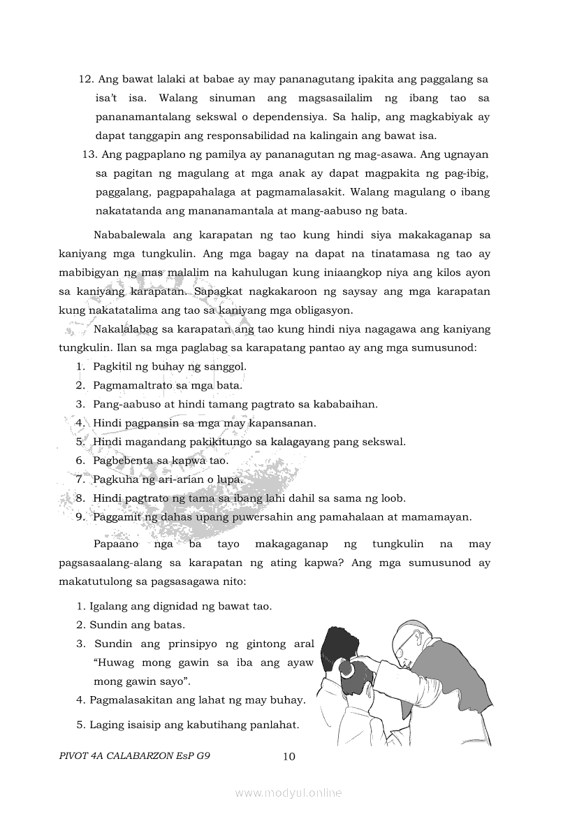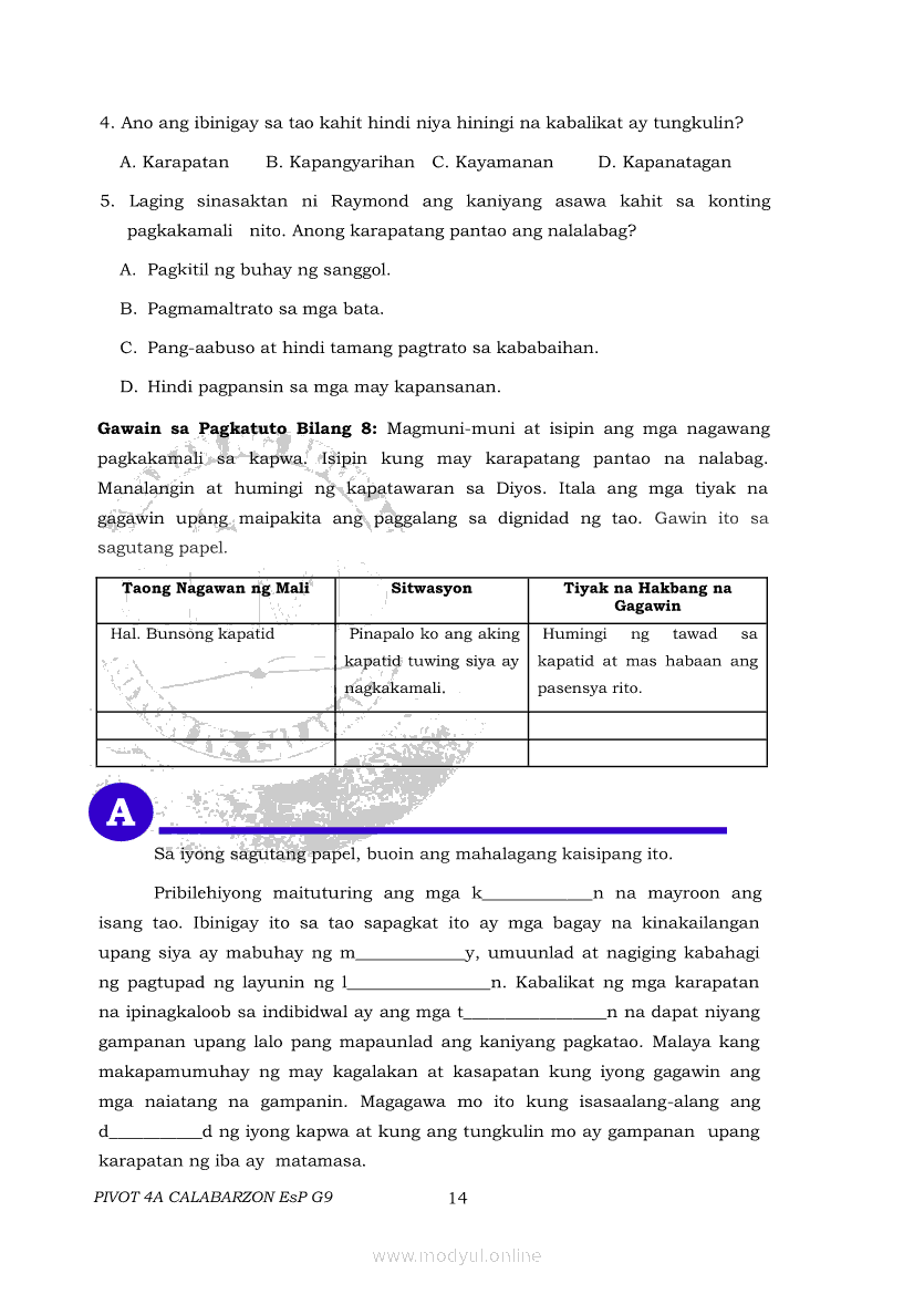 Edukasyon sa Pagpapakatao 9 Modyul para sa Ikalawang Markahan (PIVOT)Apr 22, 2021 Grade 9Xiaomi Redmi Watch 5 Active 2inch LCD Display Clear Calling 5ATM Waterproof Smart Watch for only ₱3,999 ₱1,200!. Edukasyon sa Pagpapakatao 9RelatedEdukasyon sa Pagpapakatao Ikaapat na Markahan- Modyul 2: Mga Pansariling Salik sa Pagpili ng Track o Kursong Akademik, Teknikal-Bokasyonal, Sining at Disenyo, at Isports. (Ikalawang Linggo)Edukasyon sa Pagpapakatao Ikaapat na Markahan- Modyul 1: Mga Pansariling Salik sa Pagpili ng Track o Kursong Akademik, Teknikal-Bokasyonal, Sining at Disenyo, at Isports. (Unang Linggo)Edukasyon sa Pagpapakatao Ikaapat na Markahan – Modyul 3: Personal na Pahayag ng Misyon sa Buhay (Ikatlong Linggo)Edukasyon sa Pagpapakatao Ikaapat na Markahan – Modyul 4: Personal na Pahayag ng Misyon sa Buhay (Ikaapat na Linggo)Edukasyon sa Pagpapakatao 9 Ikalawang Markahan – Modyul 4: Pakikilahok at Bolunterismo