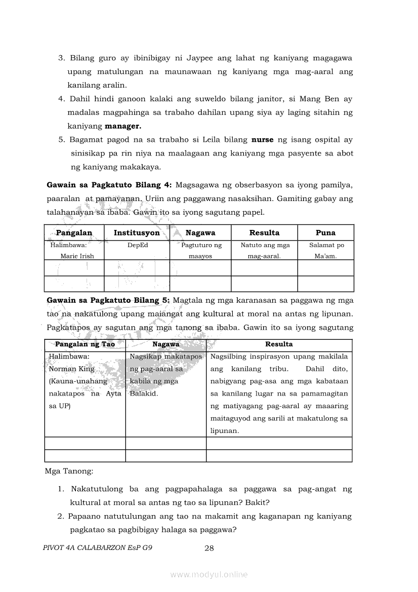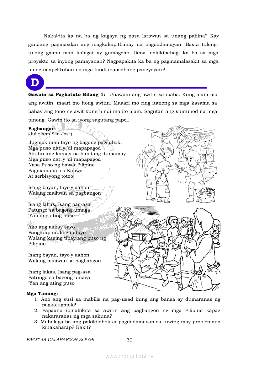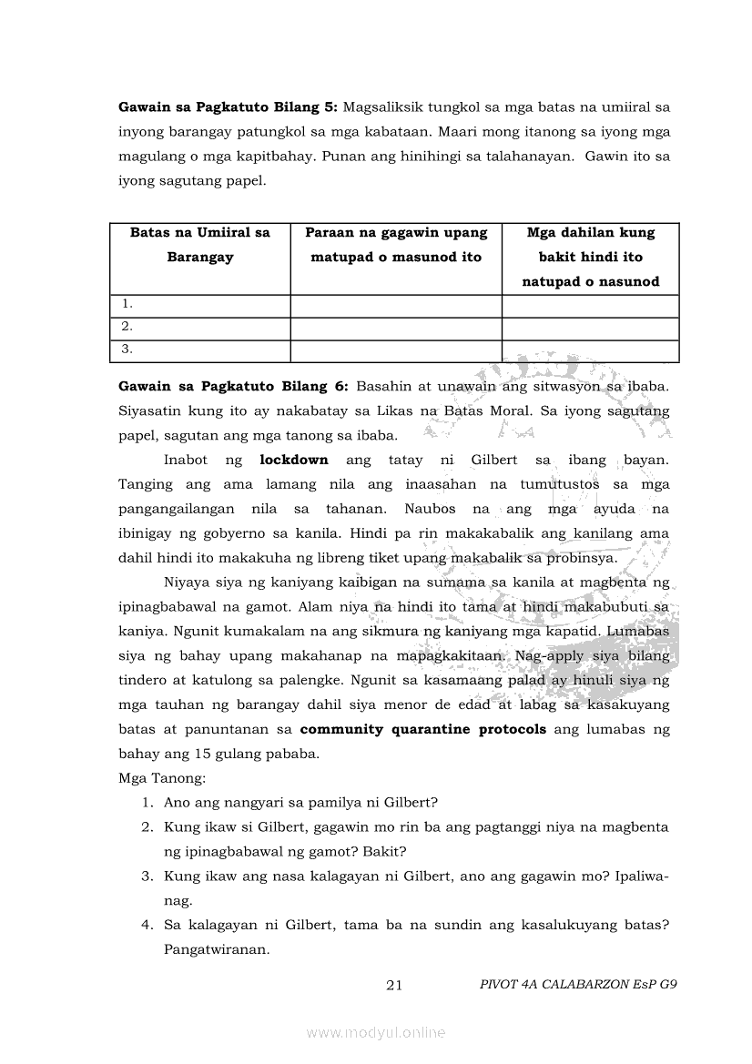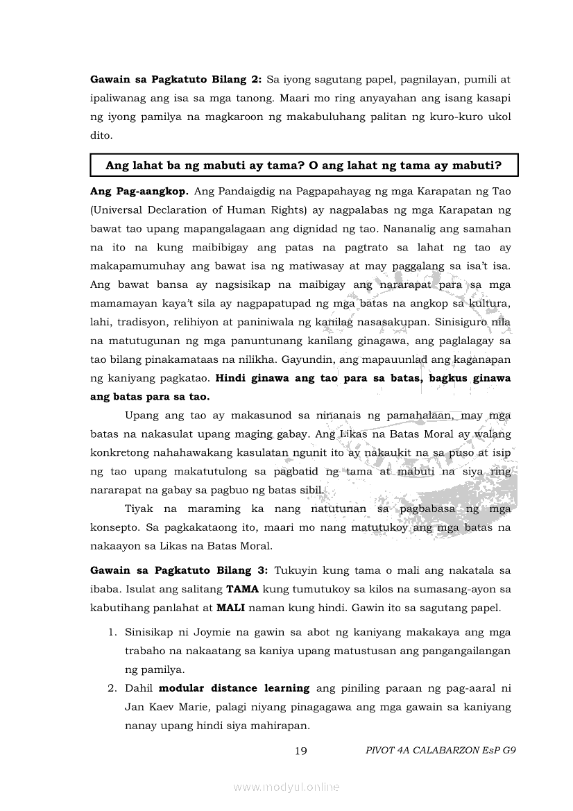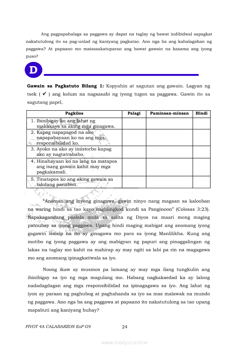 Edukasyon sa Pagpapakatao 9 Modyul para sa Ikalawang Markahan (PIVOT)Apr 22, 2021 Grade 9Xiaomi Redmi Watch 5 Active 2inch LCD Display Clear Calling 5ATM Waterproof Smart Watch for only ₱3,999 ₱1,200!. Edukasyon sa Pagpapakatao 9RelatedEdukasyon sa Pagpapakatao Ikaapat na Markahan- Modyul 2: Mga Pansariling Salik sa Pagpili ng Track o Kursong Akademik, Teknikal-Bokasyonal, Sining at Disenyo, at Isports. (Ikalawang Linggo)Edukasyon sa Pagpapakatao Ikaapat na Markahan- Modyul 1: Mga Pansariling Salik sa Pagpili ng Track o Kursong Akademik, Teknikal-Bokasyonal, Sining at Disenyo, at Isports. (Unang Linggo)Edukasyon sa Pagpapakatao Ikaapat na Markahan – Modyul 3: Personal na Pahayag ng Misyon sa Buhay (Ikatlong Linggo)Edukasyon sa Pagpapakatao Ikaapat na Markahan – Modyul 4: Personal na Pahayag ng Misyon sa Buhay (Ikaapat na Linggo)Edukasyon sa Pagpapakatao 9 Ikalawang Markahan – Modyul 4: Pakikilahok at Bolunterismo