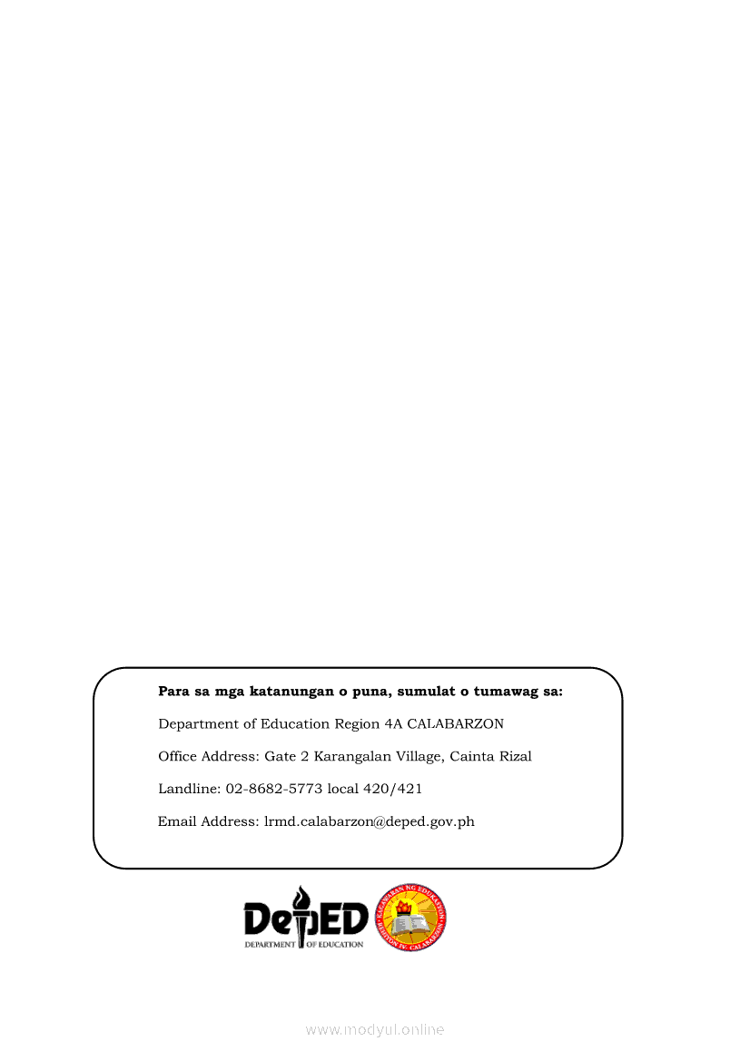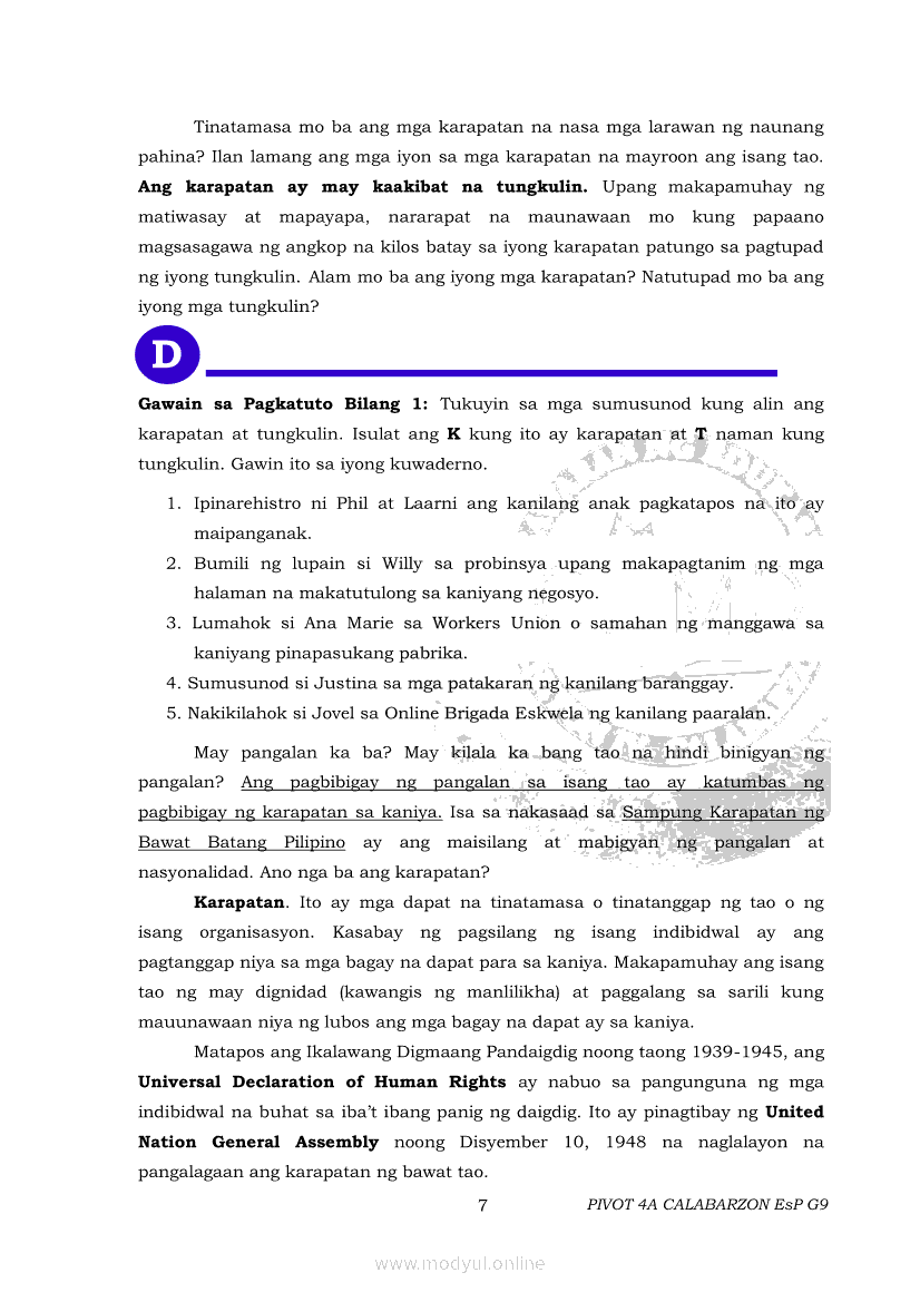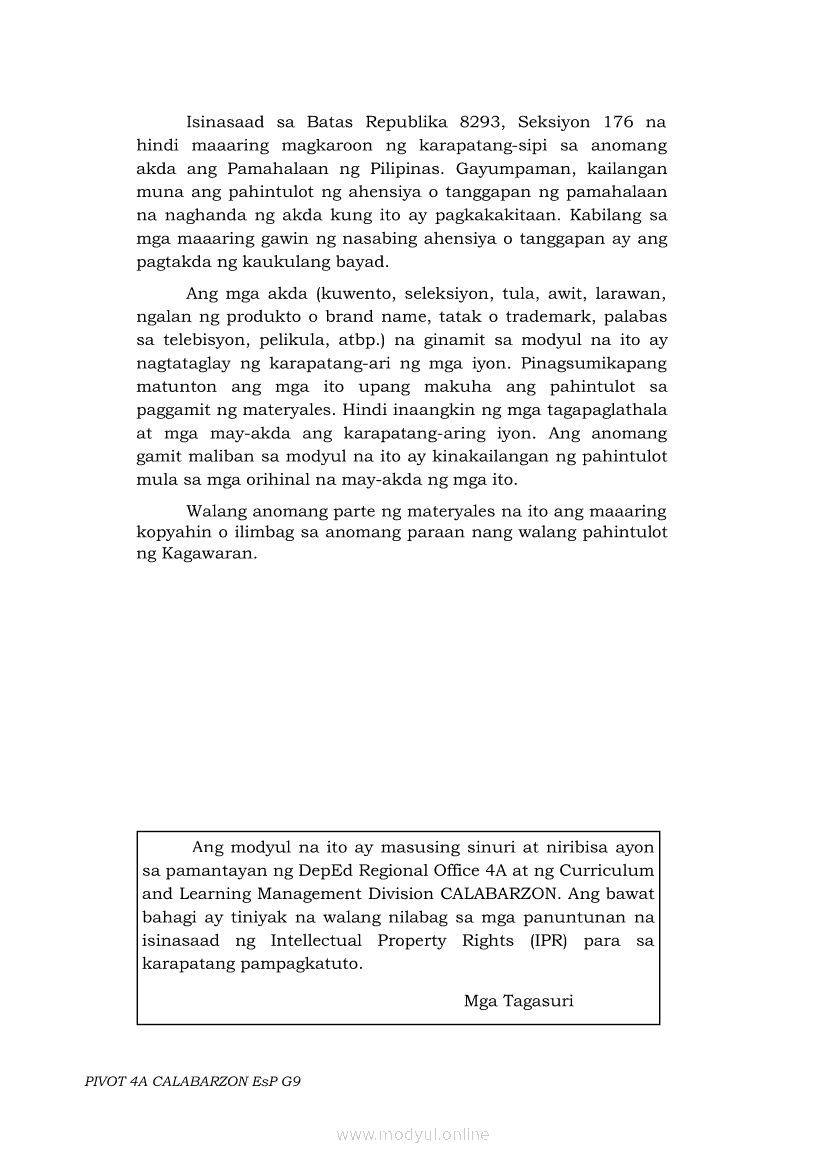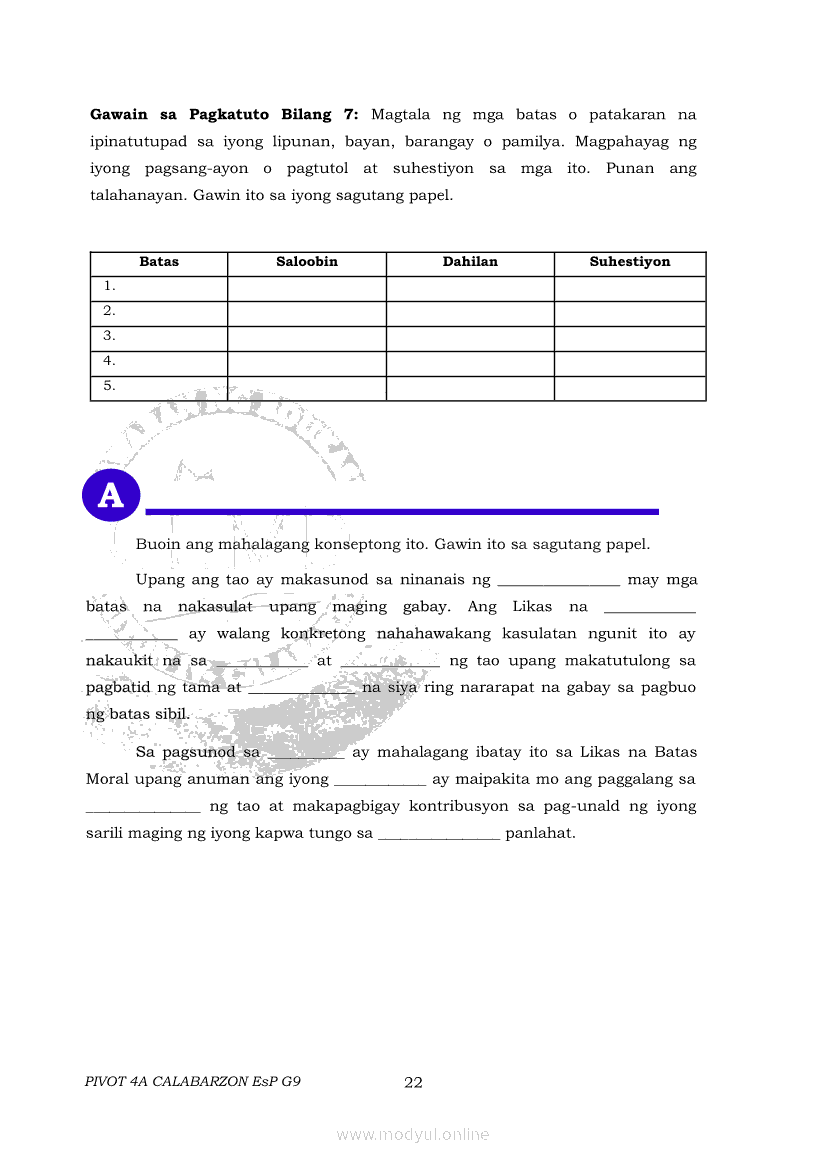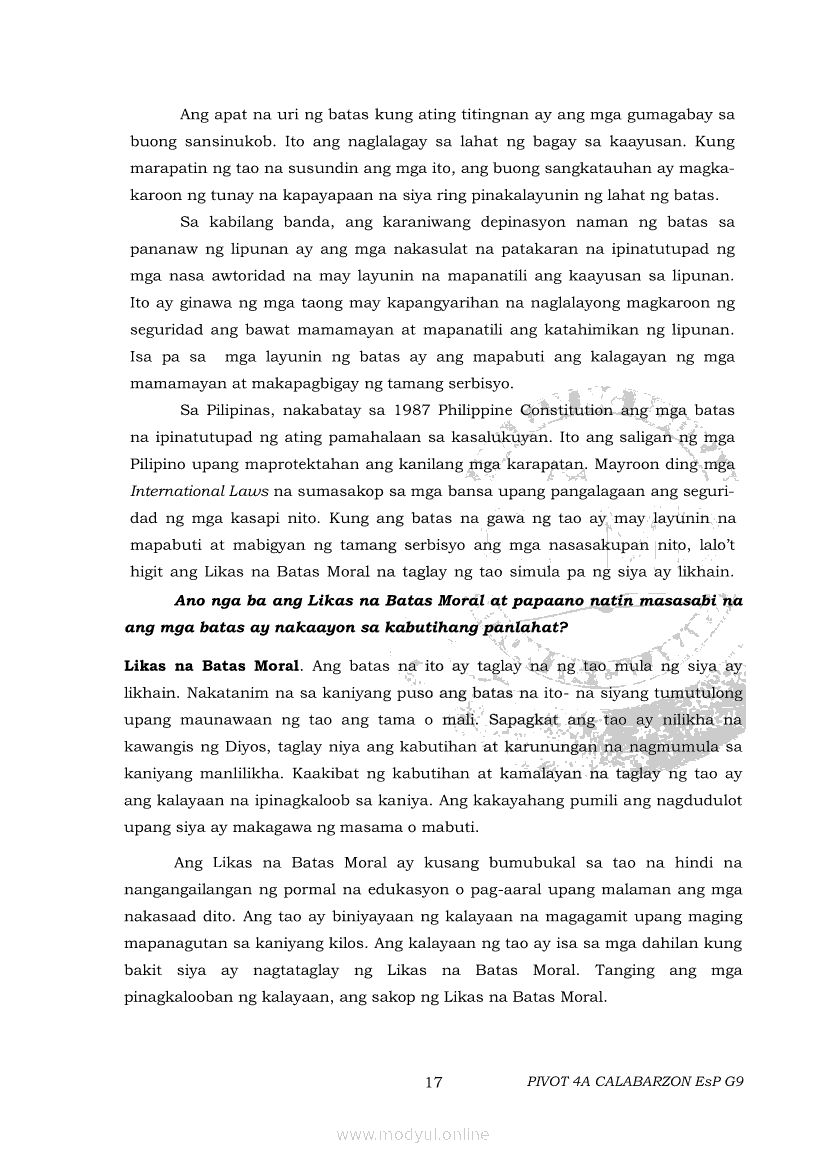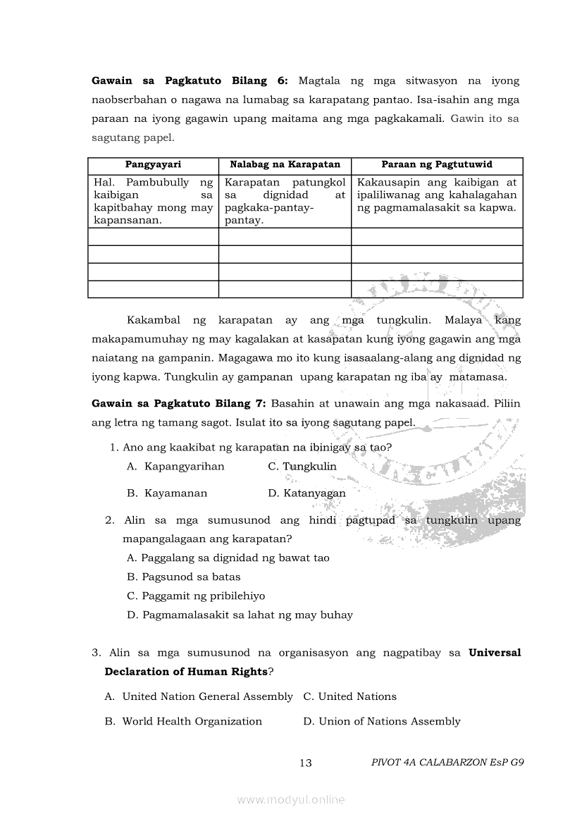 Edukasyon sa Pagpapakatao 9 Modyul para sa Ikalawang Markahan (PIVOT)Apr 22, 2021 Grade 9Xiaomi Redmi Watch 5 Active 2inch LCD Display Clear Calling 5ATM Waterproof Smart Watch for only ₱3,999 ₱1,200!. Edukasyon sa Pagpapakatao 9RelatedEdukasyon sa Pagpapakatao Ikaapat na Markahan- Modyul 2: Mga Pansariling Salik sa Pagpili ng Track o Kursong Akademik, Teknikal-Bokasyonal, Sining at Disenyo, at Isports. (Ikalawang Linggo)Edukasyon sa Pagpapakatao Ikaapat na Markahan- Modyul 1: Mga Pansariling Salik sa Pagpili ng Track o Kursong Akademik, Teknikal-Bokasyonal, Sining at Disenyo, at Isports. (Unang Linggo)Edukasyon sa Pagpapakatao Ikaapat na Markahan – Modyul 3: Personal na Pahayag ng Misyon sa Buhay (Ikatlong Linggo)Edukasyon sa Pagpapakatao Ikaapat na Markahan – Modyul 4: Personal na Pahayag ng Misyon sa Buhay (Ikaapat na Linggo)Edukasyon sa Pagpapakatao 9 Ikalawang Markahan – Modyul 4: Pakikilahok at Bolunterismo