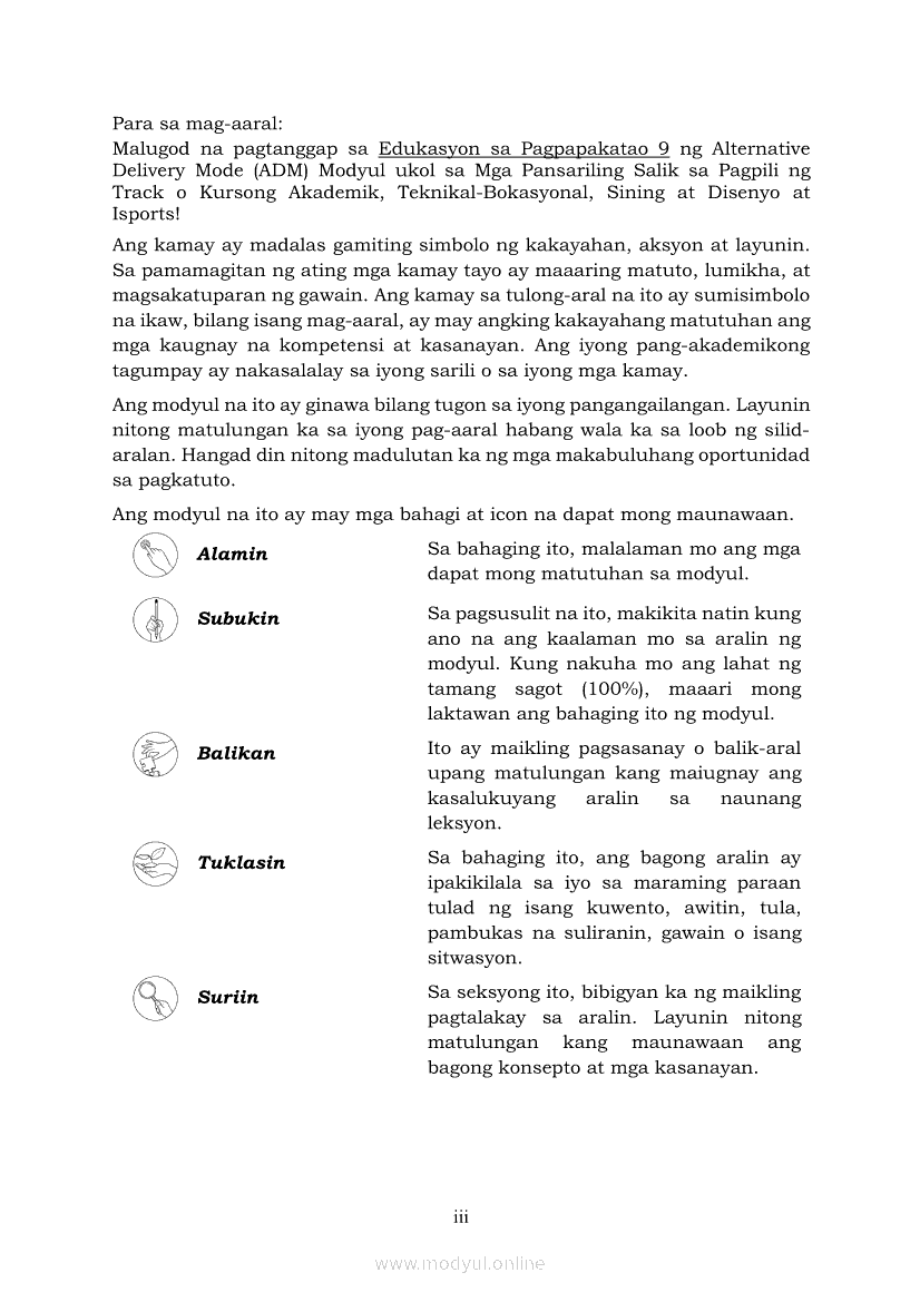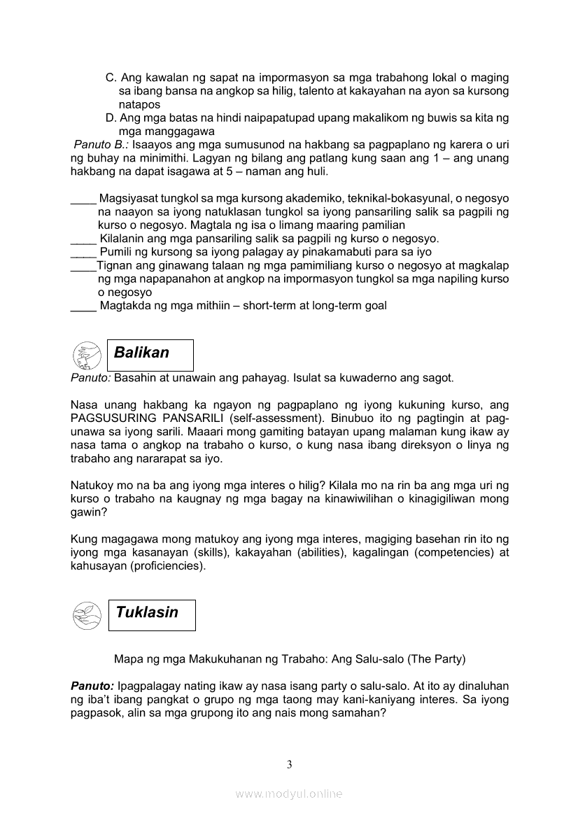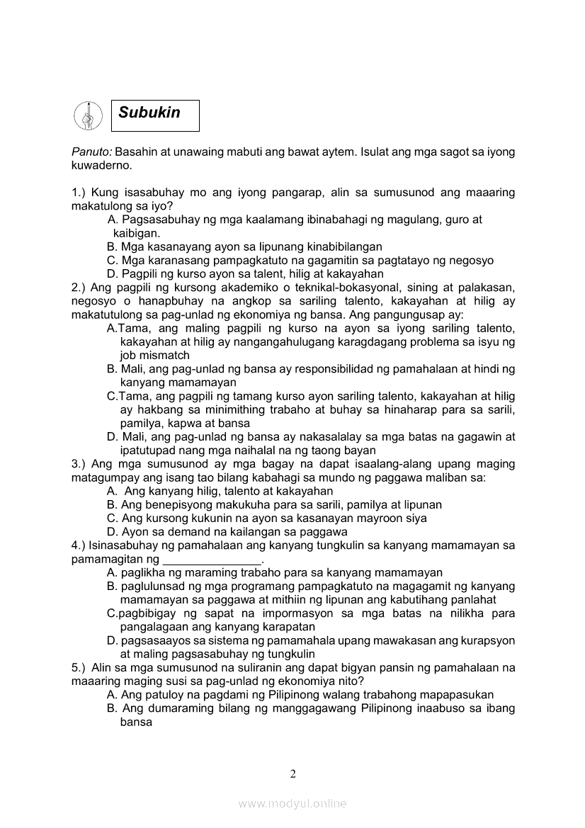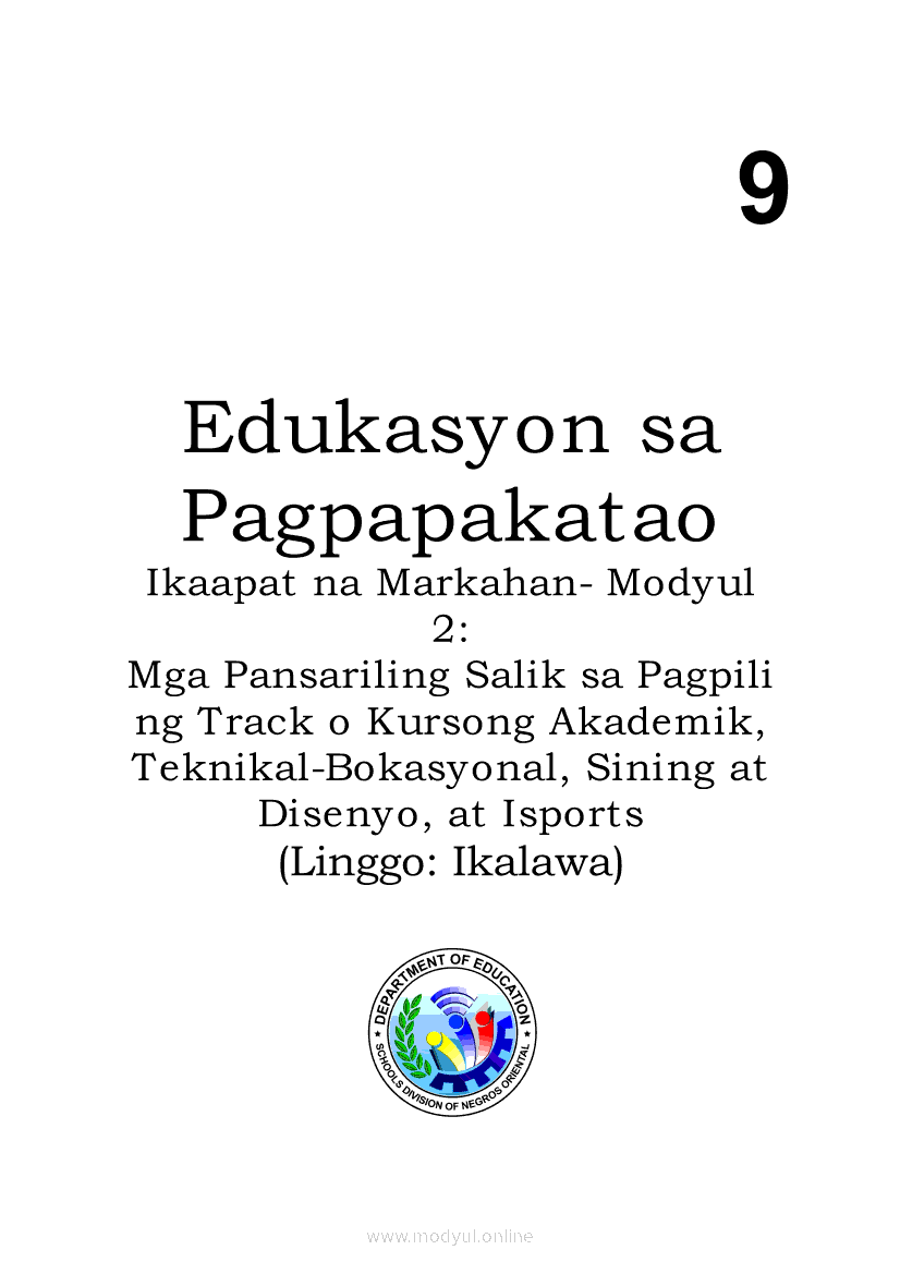 Edukasyon sa Pagpapakatao Ikaapat na Markahan- Modyul 2: Mga Pansariling Salik sa Pagpili ng Track o Kursong Akademik, Teknikal-Bokasyonal, Sining at Disenyo, at Isports. (Ikalawang Linggo)May 28, 2021 Grade 9Xiaomi Redmi Watch 5 Active 2inch LCD Display Clear Calling 5ATM Waterproof Smart Watch for only ₱3,999 ₱1,200!. Edukasyon sa Pagpapakatao 9 4th QuarterRelatedEdukasyon sa Pagpapakatao Ikaapat na Markahan- Modyul 1: Mga Pansariling Salik sa Pagpili ng Track o Kursong Akademik, Teknikal-Bokasyonal, Sining at Disenyo, at Isports. (Unang Linggo)Edukasyon sa Pagpapakatao Ikaapat na Markahan – Modyul 4: Personal na Pahayag ng Misyon sa Buhay (Ikaapat na Linggo)Edukasyon sa Pagpapakatao Ikaapat na Markahan – Modyul 3: Personal na Pahayag ng Misyon sa Buhay (Ikatlong Linggo)English Quarter 4 – Module 2: React to Lay Value Judgement on Critical IssuesTLE-IA-SMAW Quarter 4 – Module 1 (Week 1&2) PREPARE WELDING CONSUMABLES