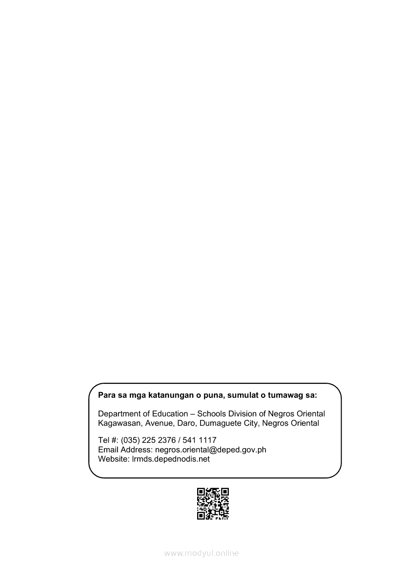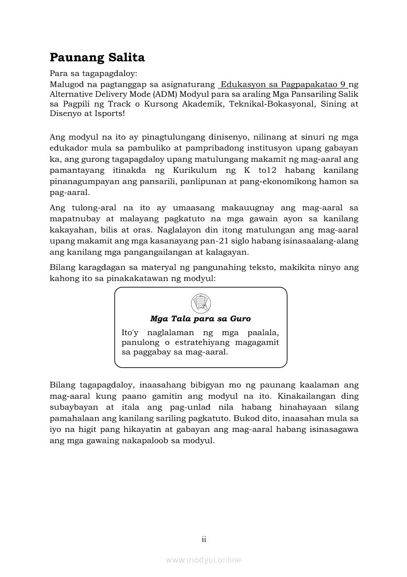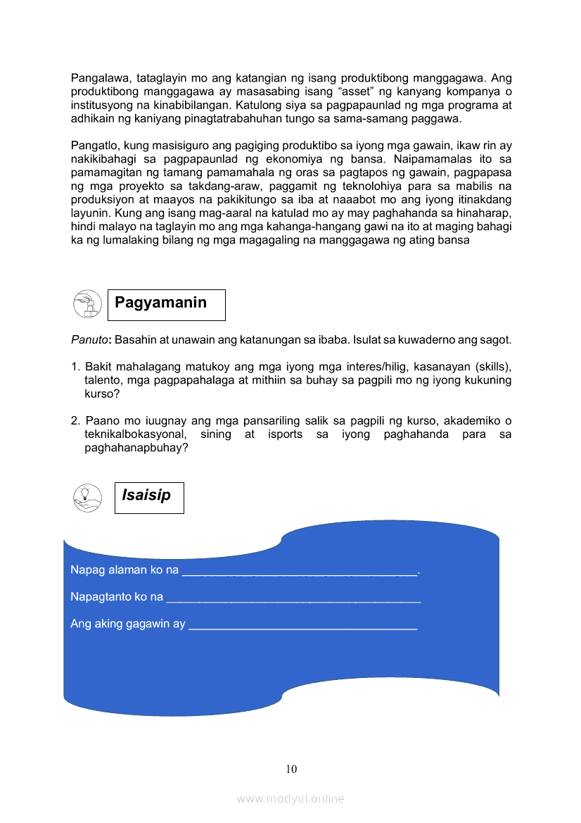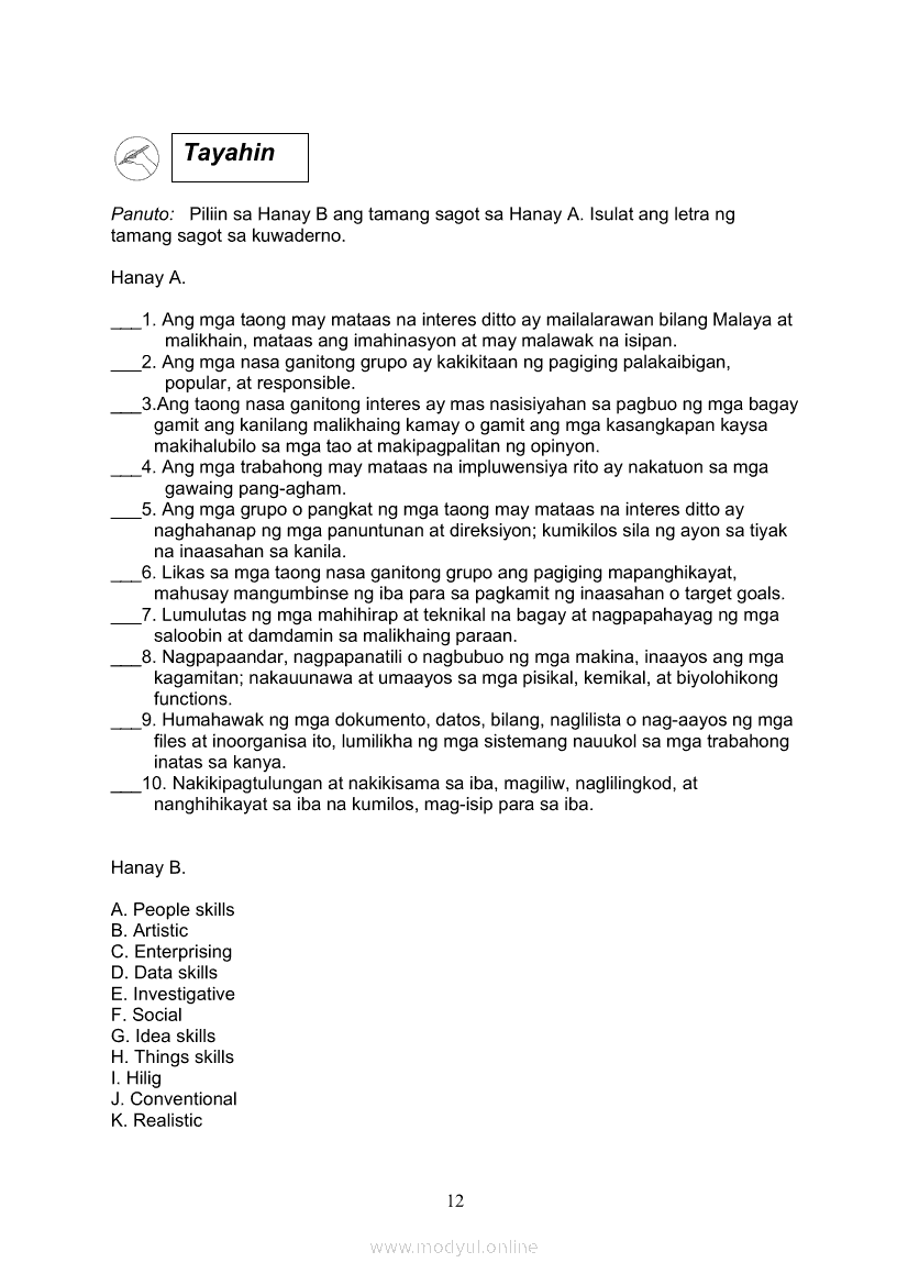 Edukasyon sa Pagpapakatao Ikaapat na Markahan- Modyul 2: Mga Pansariling Salik sa Pagpili ng Track o Kursong Akademik, Teknikal-Bokasyonal, Sining at Disenyo, at Isports. (Ikalawang Linggo)May 28, 2021 Grade 9Xiaomi Redmi Watch 5 Active 2inch LCD Display Clear Calling 5ATM Waterproof Smart Watch for only ₱3,999 ₱1,200!. Edukasyon sa Pagpapakatao 9 4th QuarterRelatedEdukasyon sa Pagpapakatao Ikaapat na Markahan- Modyul 1: Mga Pansariling Salik sa Pagpili ng Track o Kursong Akademik, Teknikal-Bokasyonal, Sining at Disenyo, at Isports. (Unang Linggo)Edukasyon sa Pagpapakatao Ikaapat na Markahan – Modyul 4: Personal na Pahayag ng Misyon sa Buhay (Ikaapat na Linggo)Edukasyon sa Pagpapakatao Ikaapat na Markahan – Modyul 3: Personal na Pahayag ng Misyon sa Buhay (Ikatlong Linggo)English Quarter 4 – Module 2: React to Lay Value Judgement on Critical IssuesTLE-IA-SMAW Quarter 4 – Module 1 (Week 1&2) PREPARE WELDING CONSUMABLES
