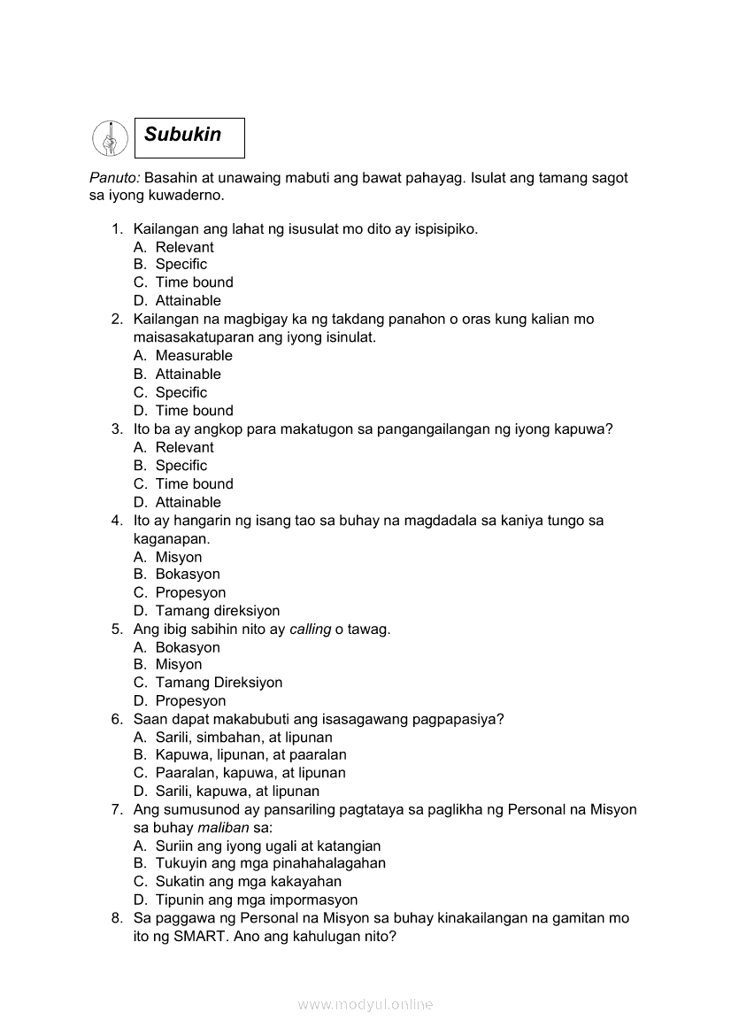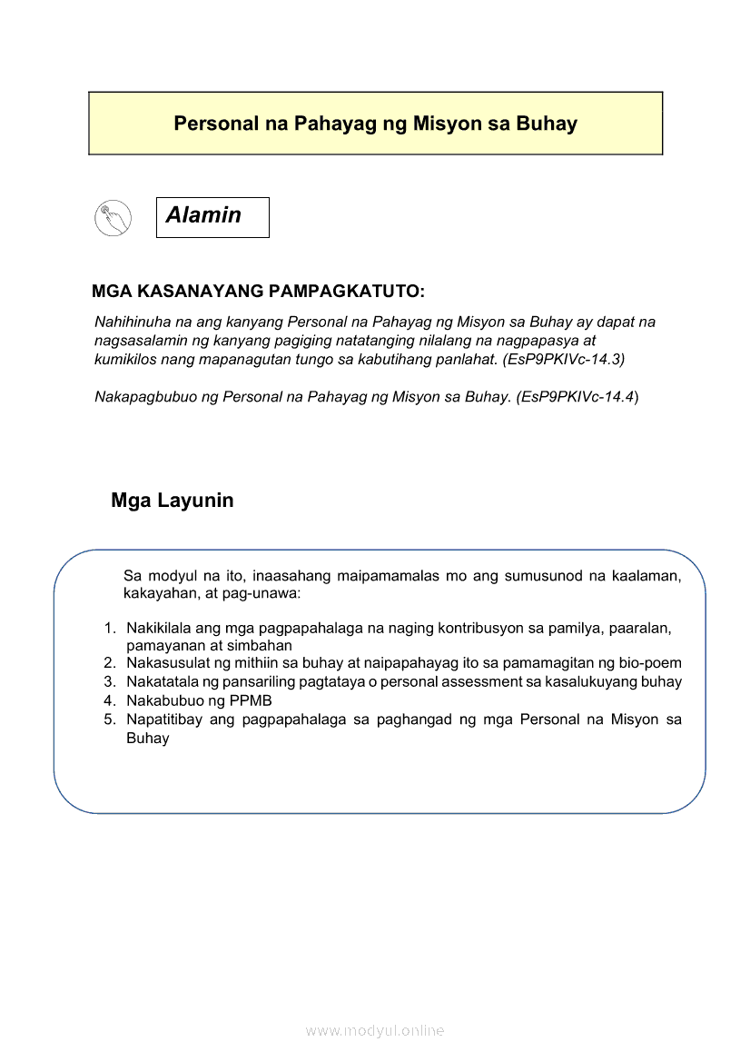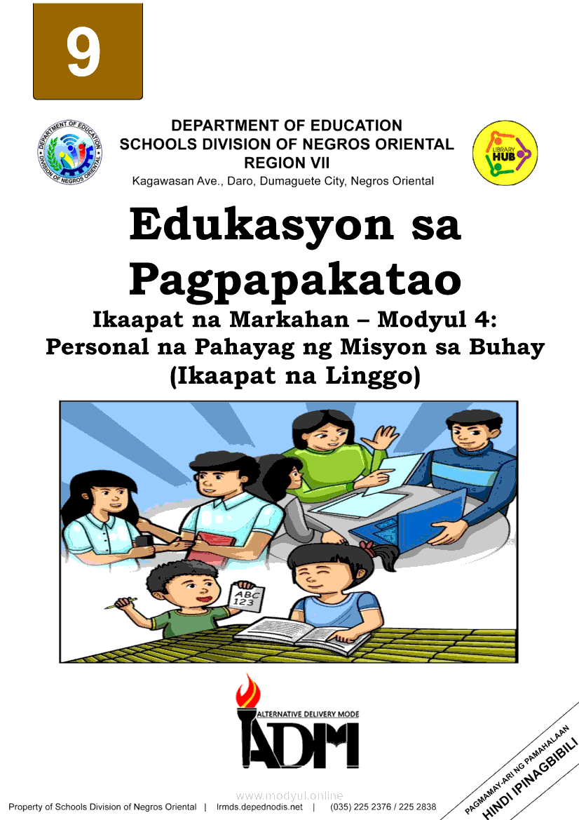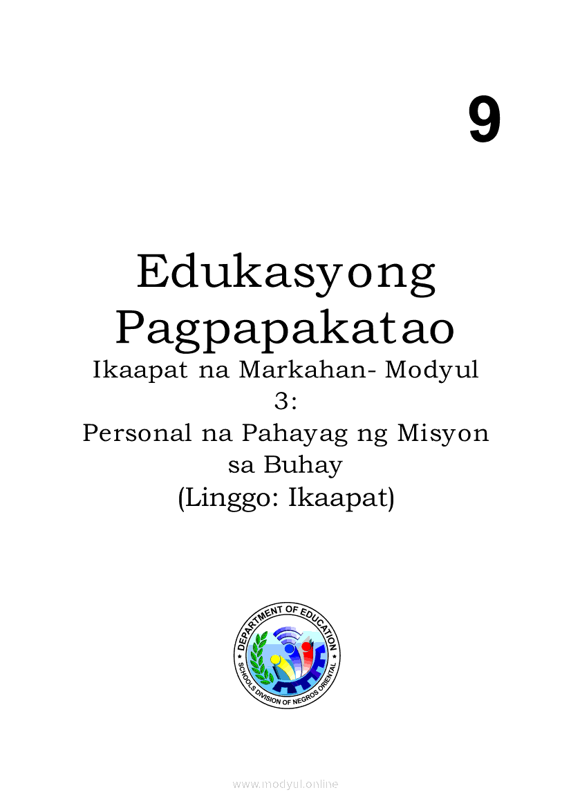 Edukasyon sa Pagpapakatao Ikaapat na Markahan – Modyul 4: Personal na Pahayag ng Misyon sa Buhay (Ikaapat na Linggo)May 28, 2021 Grade 9Xiaomi Redmi Watch 5 Active 2inch LCD Display Clear Calling 5ATM Waterproof Smart Watch for only ₱3,999 ₱1,200!. Edukasyon sa Pagpapakatao 9 4th QuarterRelatedEdukasyon sa Pagpapakatao Ikaapat na Markahan- Modyul 1: Mga Pansariling Salik sa Pagpili ng Track o Kursong Akademik, Teknikal-Bokasyonal, Sining at Disenyo, at Isports. (Unang Linggo)Edukasyon sa Pagpapakatao Ikaapat na Markahan- Modyul 2: Mga Pansariling Salik sa Pagpili ng Track o Kursong Akademik, Teknikal-Bokasyonal, Sining at Disenyo, at Isports. (Ikalawang Linggo)Edukasyon sa Pagpapakatao Ikaapat na Markahan – Modyul 3: Personal na Pahayag ng Misyon sa Buhay (Ikatlong Linggo)Araling Panlipunan Ikaapat na Markahan – Modyul 1: Konsepto at Palatandaan ng Pambansang KaunlaranAraling Panlipunan Ikaapat na Markahan – Modyul 2: Sama-samang Pagkilos para sa Pambansang Kaunlaran