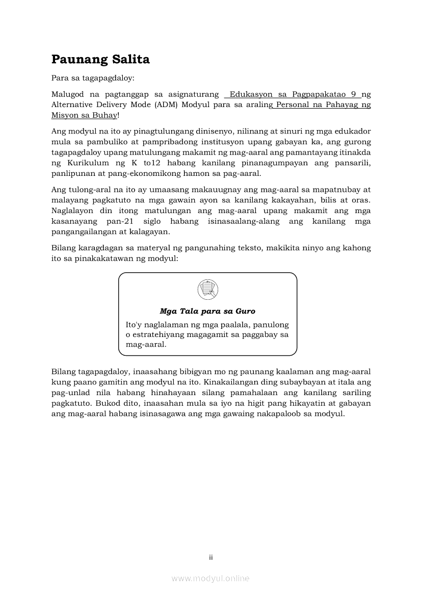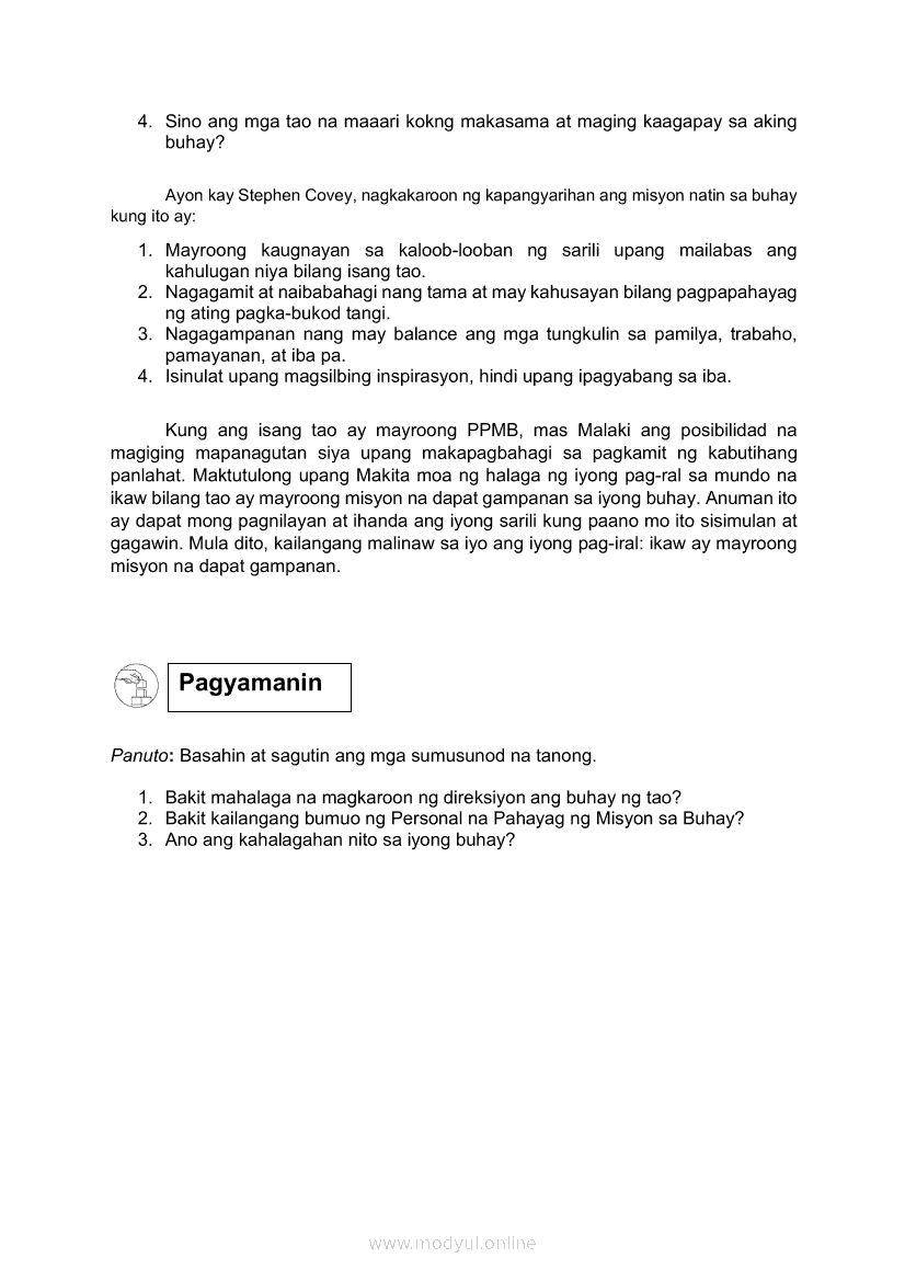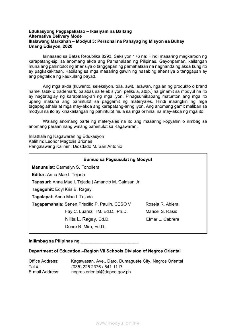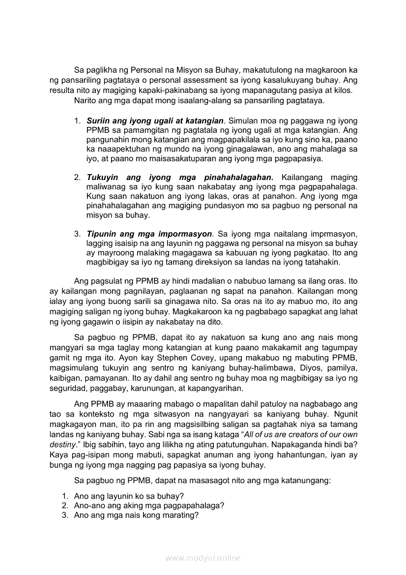 Edukasyon sa Pagpapakatao Ikaapat na Markahan – Modyul 4: Personal na Pahayag ng Misyon sa Buhay (Ikaapat na Linggo)May 28, 2021 Grade 9Xiaomi Redmi Watch 5 Active 2inch LCD Display Clear Calling 5ATM Waterproof Smart Watch for only ₱3,999 ₱1,200!. Edukasyon sa Pagpapakatao 9 4th QuarterRelatedEdukasyon sa Pagpapakatao Ikaapat na Markahan- Modyul 1: Mga Pansariling Salik sa Pagpili ng Track o Kursong Akademik, Teknikal-Bokasyonal, Sining at Disenyo, at Isports. (Unang Linggo)Edukasyon sa Pagpapakatao Ikaapat na Markahan- Modyul 2: Mga Pansariling Salik sa Pagpili ng Track o Kursong Akademik, Teknikal-Bokasyonal, Sining at Disenyo, at Isports. (Ikalawang Linggo)Edukasyon sa Pagpapakatao Ikaapat na Markahan – Modyul 3: Personal na Pahayag ng Misyon sa Buhay (Ikatlong Linggo)Araling Panlipunan Ikaapat na Markahan – Modyul 1: Konsepto at Palatandaan ng Pambansang KaunlaranAraling Panlipunan Ikaapat na Markahan – Modyul 2: Sama-samang Pagkilos para sa Pambansang Kaunlaran