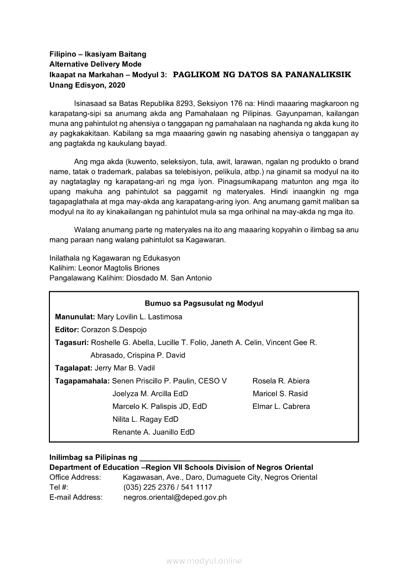 Filipino 9 Ikaapat na Markahan – Modyul 3 Paglikom ng Datos sa PananaliksikMay 28, 2021 Grade 9Xiaomi Redmi Watch 5 Active 2inch LCD Display Clear Calling 5ATM Waterproof Smart Watch for only ₱3,999 ₱1,200!. Filipino 9 4th QuarterRelatedFilipino 9 Ikaapat na Markahan – Modyul 2 DAPAT O DI DAPAT GINAMIT NI JOSE RIZAL ANG PANULAT PARA SA KAPAKANAN NG BANSAFilipino 9 Ikaapat na Markahan – Modyul 5 NOLI ME TANGERE: Mga Mahahalagang Tauhan sa NobelaFilipino 9 Ikaapat na Markahan – Modyul 1 KALIGIRANG PANGKASAYSAYAN NG NOLI ME TANGEREEnglish Quarter 4 – Module 1: Judge the Relevance and Worth of Ideas, Soundness of Author’s Reasoning, and the Effectiveness of the PresentationAraling Panlipunan Ikaapat na Markahan – Modyul 2: Sama-samang Pagkilos para sa Pambansang Kaunlaran