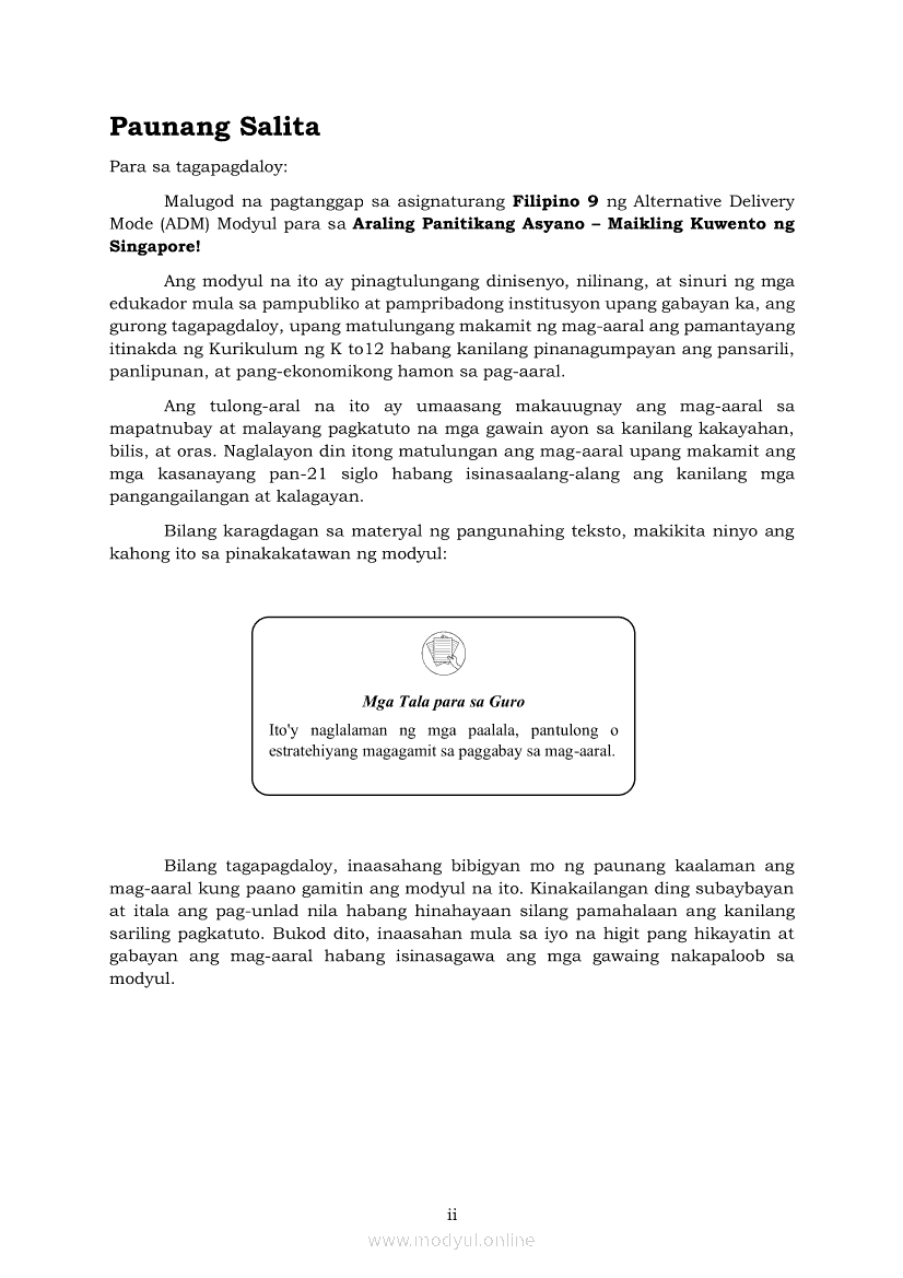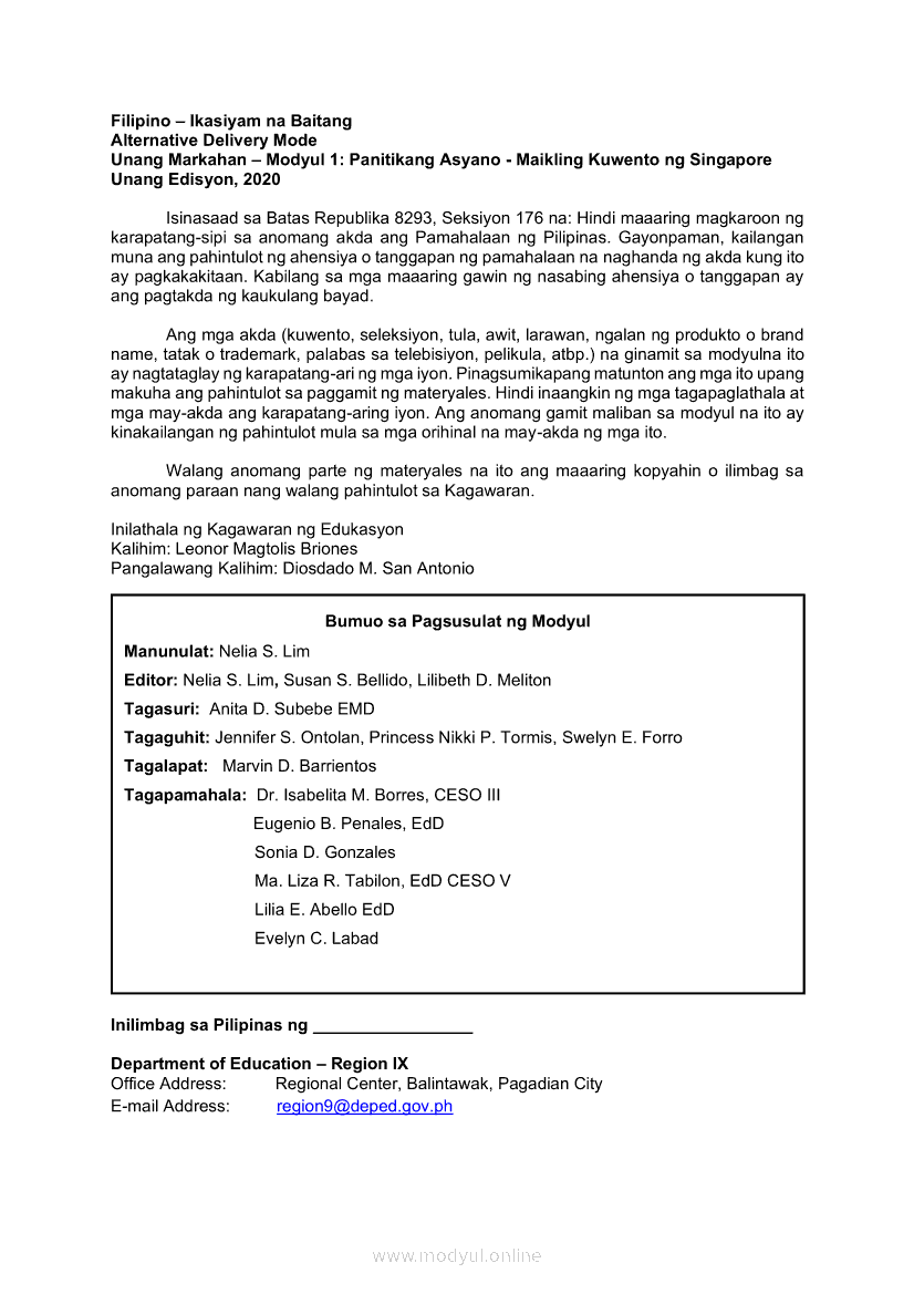 Filipino 9 Modyul 1: Panitikang Asyano- Maikling Kwento ng SingaporeApr 22, 2021 Grade 9Xiaomi Redmi Watch 5 Active 2inch LCD Display Clear Calling 5ATM Waterproof Smart Watch for only ₱3,999 ₱1,200!. Filipino 9RelatedFilipino 9 Ikaapat na Markahan – Modyul 1 KALIGIRANG PANGKASAYSAYAN NG NOLI ME TANGEREFilipino 9 Ikaapat na Markahan – Modyul 3 Paglikom ng Datos sa PananaliksikFilipino 9 Ikaapat na Markahan – Modyul 2 DAPAT O DI DAPAT GINAMIT NI JOSE RIZAL ANG PANULAT PARA SA KAPAKANAN NG BANSAFilipino 9 Ikaapat na Markahan – Modyul 5 NOLI ME TANGERE: Mga Mahahalagang Tauhan sa NobelaFilipino 9 Modyul 3: Panitikang Asyano- Tula ng Pilipinas