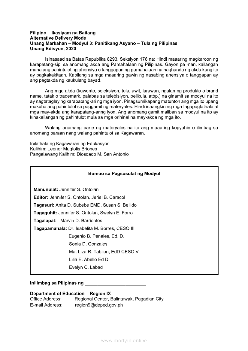 Filipino 9 Modyul 3: Panitikang Asyano- Tula ng PilipinasApr 22, 2021 Grade 9Xiaomi Redmi Watch 5 Active 2inch LCD Display Clear Calling 5ATM Waterproof Smart Watch for only ₱3,999 ₱1,200!. Filipino 9RelatedFilipino 9 Ikaapat na Markahan – Modyul 5 NOLI ME TANGERE: Mga Mahahalagang Tauhan sa NobelaFilipino 9 Ikaapat na Markahan – Modyul 3 Paglikom ng Datos sa PananaliksikFilipino 9 Ikaapat na Markahan – Modyul 2 DAPAT O DI DAPAT GINAMIT NI JOSE RIZAL ANG PANULAT PARA SA KAPAKANAN NG BANSAFilipino 9 Ikaapat na Markahan – Modyul 1 KALIGIRANG PANGKASAYSAYAN NG NOLI ME TANGEREFilipino 9 Modyul 1: Panitikang Asyano- Maikling Kwento ng Singapore