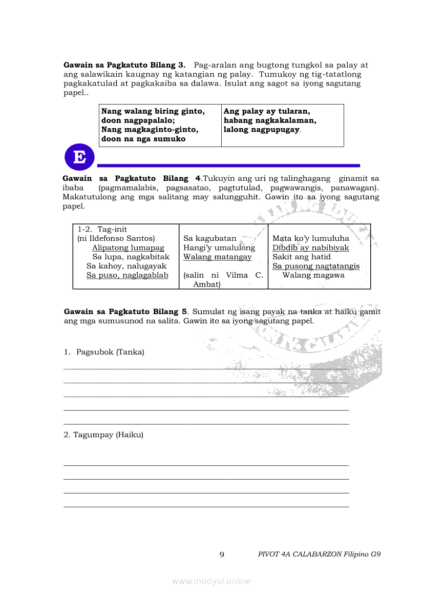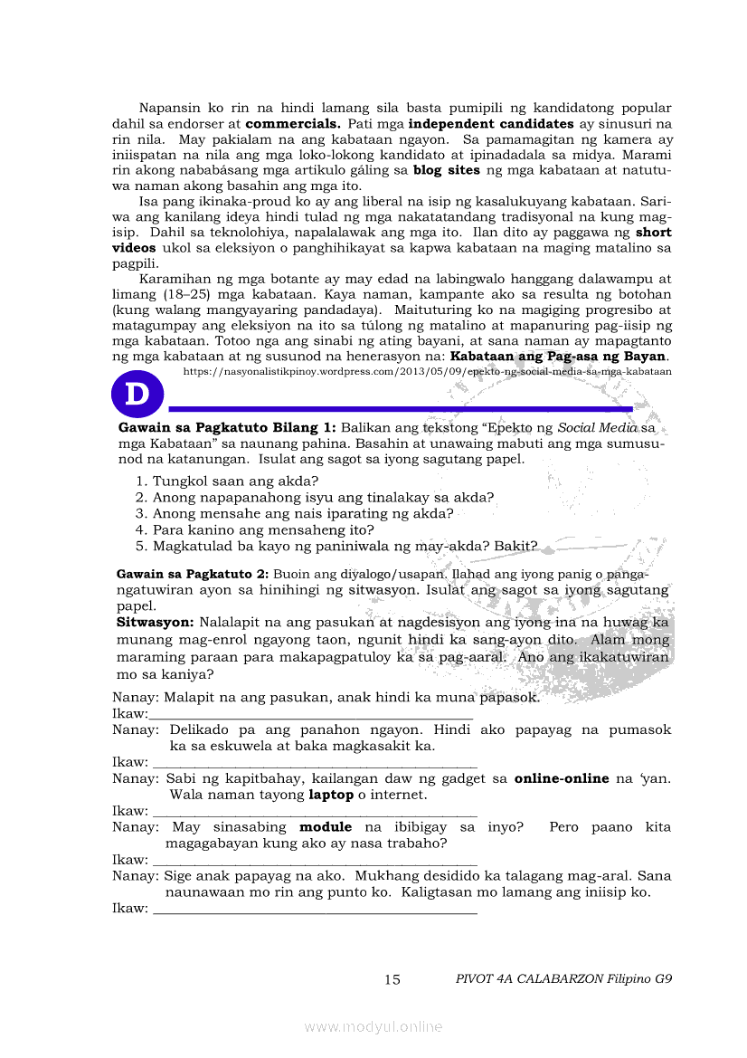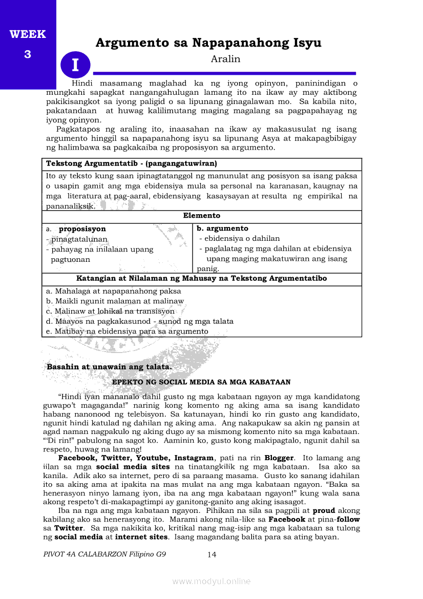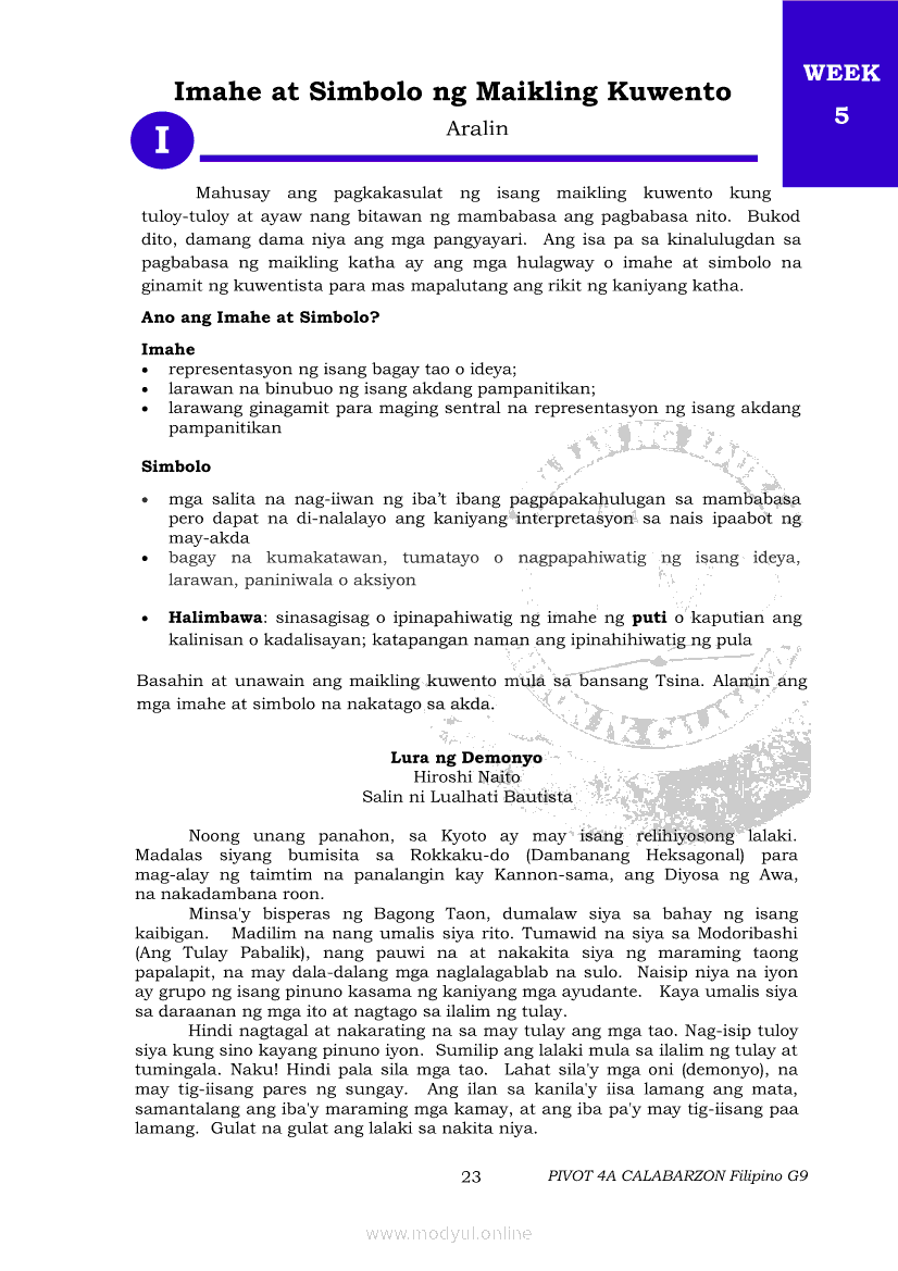 Filipino 9 Modyul para sa Ikalawang Markahan (PIVOT)Apr 22, 2021 Grade 9Xiaomi Redmi Watch 5 Active 2inch LCD Display Clear Calling 5ATM Waterproof Smart Watch for only ₱3,999 ₱1,200!. Filipino 9RelatedFilipino 9 Ikaapat na Markahan – Modyul 2 DAPAT O DI DAPAT GINAMIT NI JOSE RIZAL ANG PANULAT PARA SA KAPAKANAN NG BANSAFilipino 9 Ikaapat na Markahan – Modyul 1 KALIGIRANG PANGKASAYSAYAN NG NOLI ME TANGEREFilipino 9 Ikaapat na Markahan – Modyul 5 NOLI ME TANGERE: Mga Mahahalagang Tauhan sa NobelaFilipino 9 Ikaapat na Markahan – Modyul 3 Paglikom ng Datos sa PananaliksikFilipino 9 Modyul 6: Pangwakas na Awtput
