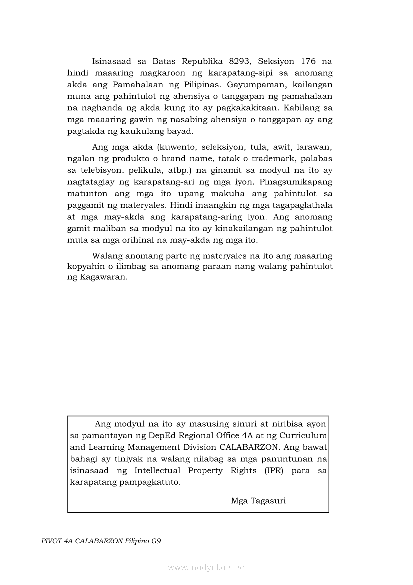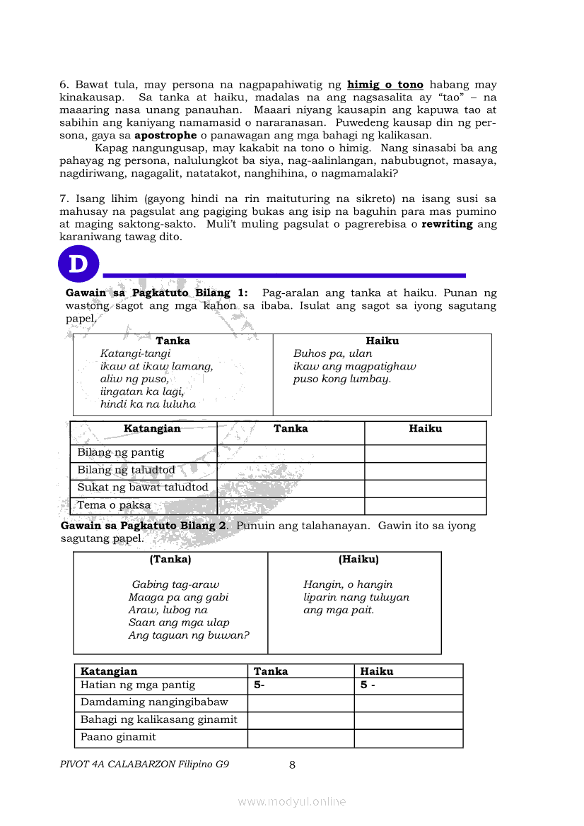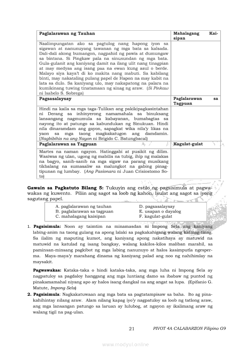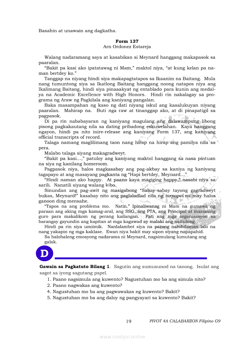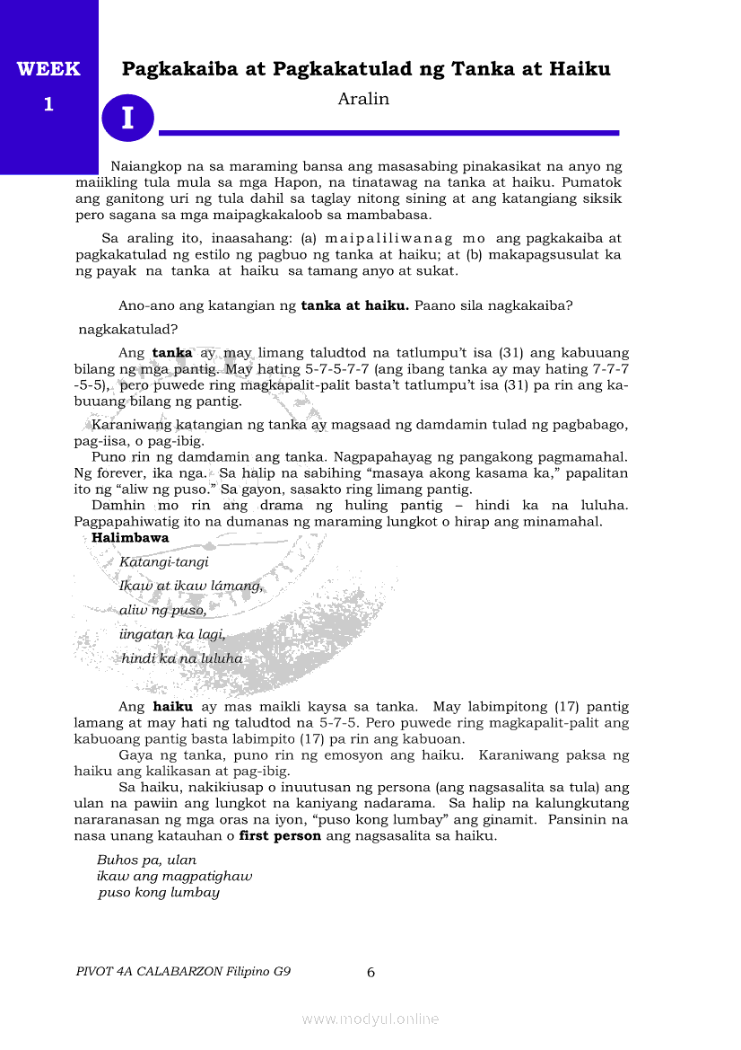 Filipino 9 Modyul para sa Ikalawang Markahan (PIVOT)Apr 22, 2021 Grade 9Xiaomi Redmi Watch 5 Active 2inch LCD Display Clear Calling 5ATM Waterproof Smart Watch for only ₱3,999 ₱1,200!. Filipino 9RelatedFilipino 9 Ikaapat na Markahan – Modyul 2 DAPAT O DI DAPAT GINAMIT NI JOSE RIZAL ANG PANULAT PARA SA KAPAKANAN NG BANSAFilipino 9 Ikaapat na Markahan – Modyul 1 KALIGIRANG PANGKASAYSAYAN NG NOLI ME TANGEREFilipino 9 Ikaapat na Markahan – Modyul 5 NOLI ME TANGERE: Mga Mahahalagang Tauhan sa NobelaFilipino 9 Ikaapat na Markahan – Modyul 3 Paglikom ng Datos sa PananaliksikFilipino 9 Modyul 6: Pangwakas na Awtput