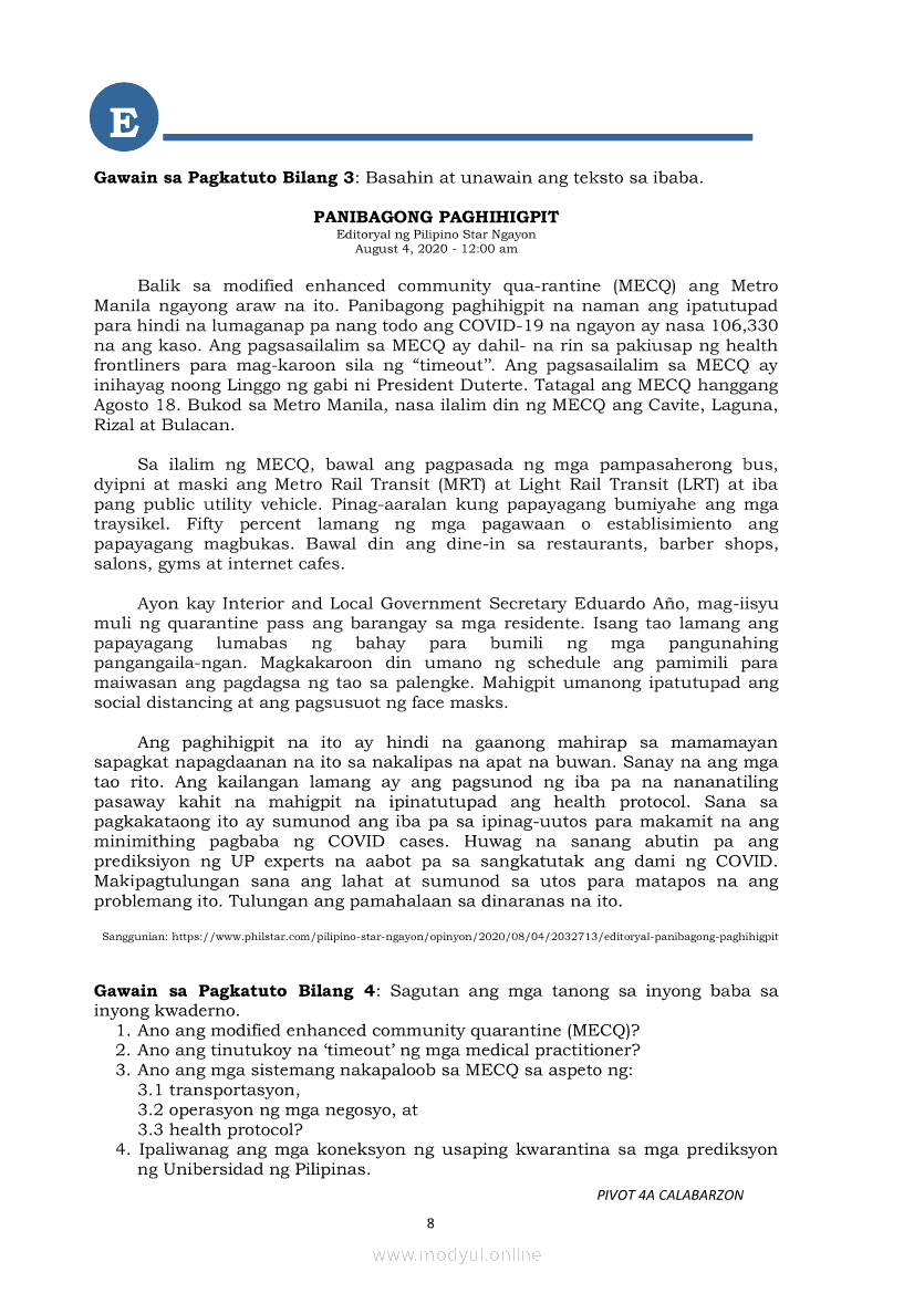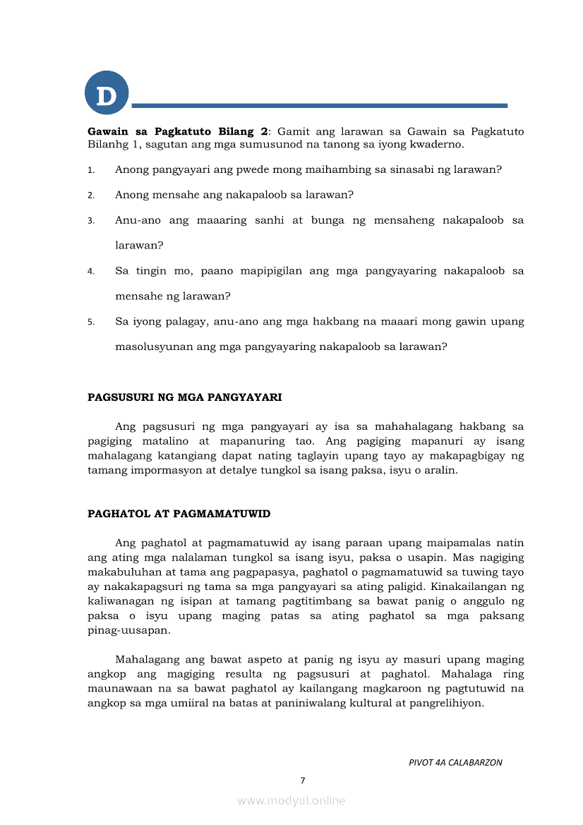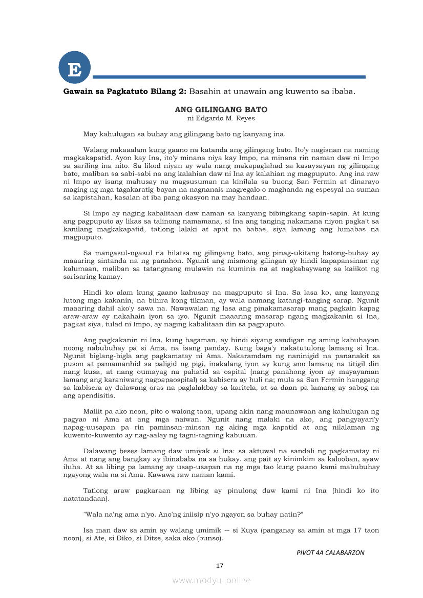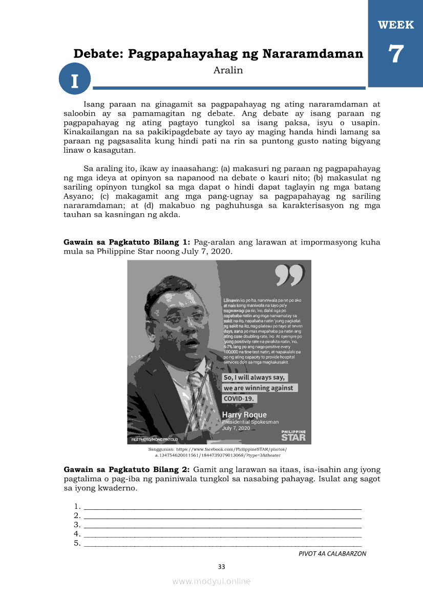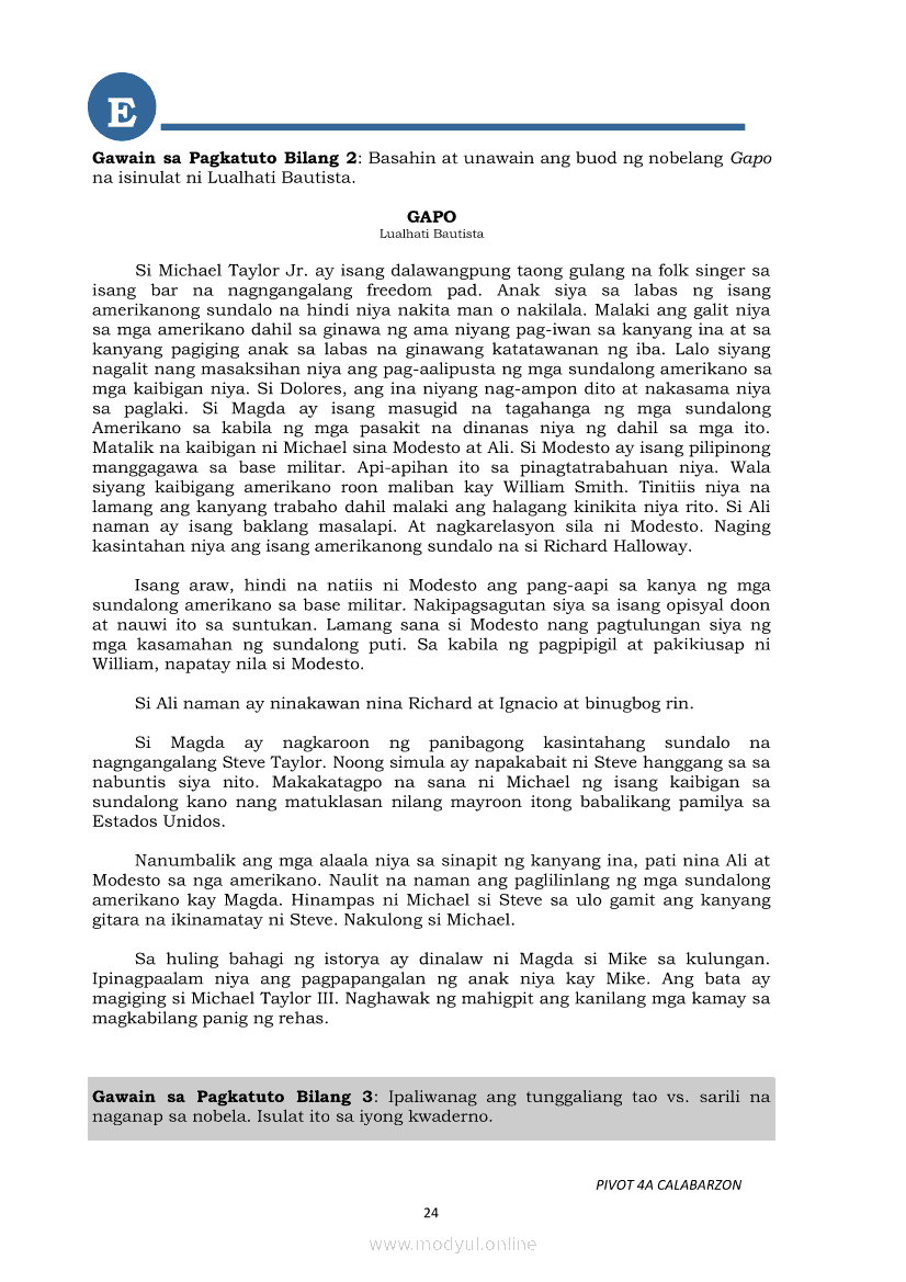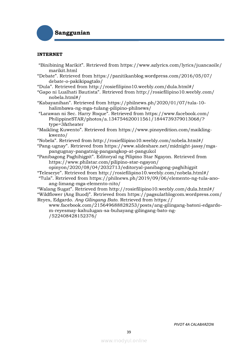 Filipino 9 Modyul sa FilipinoApr 22, 2021 Grade 9Xiaomi Redmi Watch 5 Active 2inch LCD Display Clear Calling 5ATM Waterproof Smart Watch for only ₱3,999 ₱1,200!. Filipino 9RelatedFilipino 9 Ikaapat na Markahan – Modyul 2 DAPAT O DI DAPAT GINAMIT NI JOSE RIZAL ANG PANULAT PARA SA KAPAKANAN NG BANSAFilipino 9 Ikaapat na Markahan – Modyul 5 NOLI ME TANGERE: Mga Mahahalagang Tauhan sa NobelaFilipino 9 Ikaapat na Markahan – Modyul 1 KALIGIRANG PANGKASAYSAYAN NG NOLI ME TANGEREFilipino 9 Ikaapat na Markahan – Modyul 3 Paglikom ng Datos sa PananaliksikFilipino 9 Modyul 1: Panitikang Asyano- Maikling Kwento ng Singapore