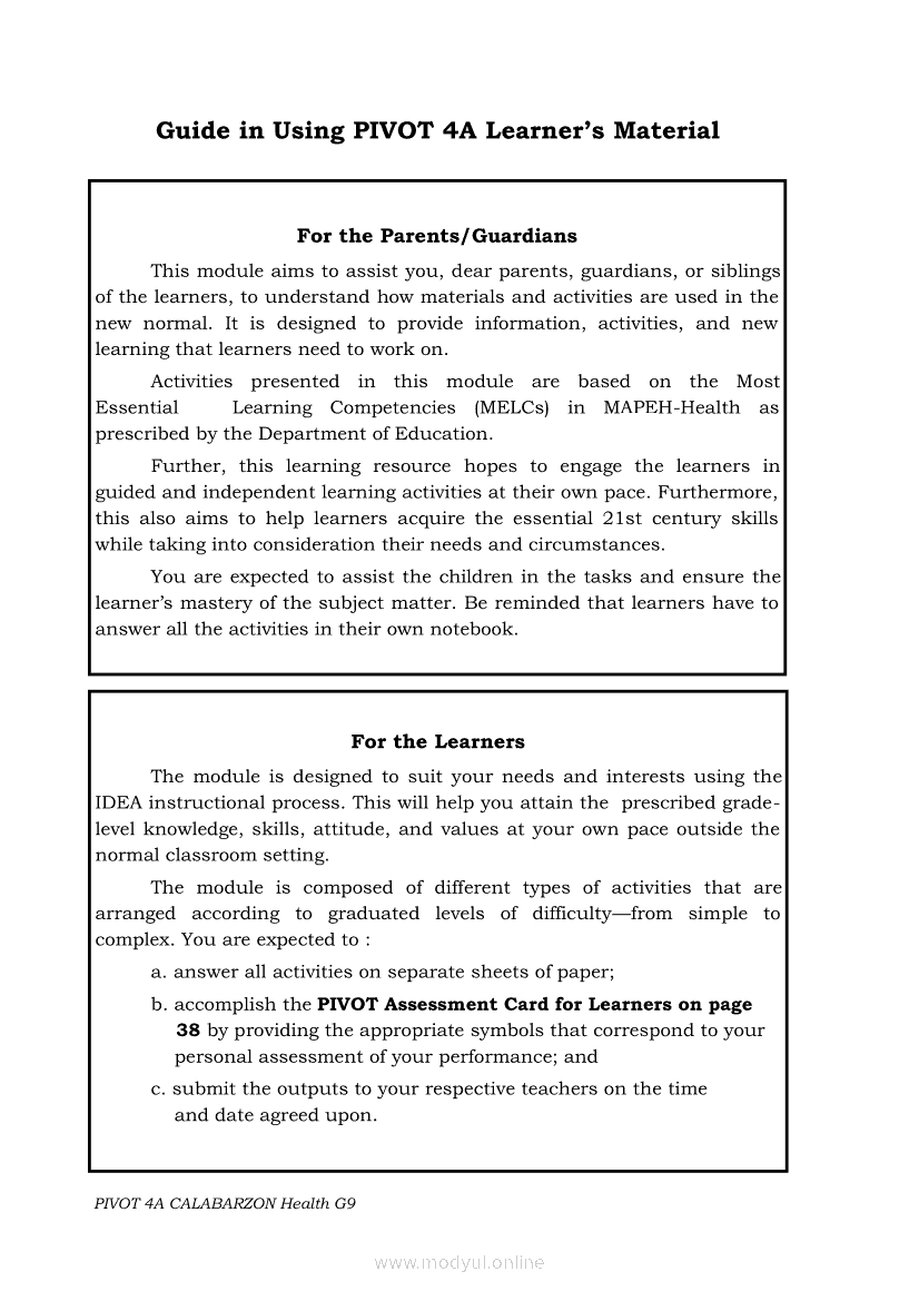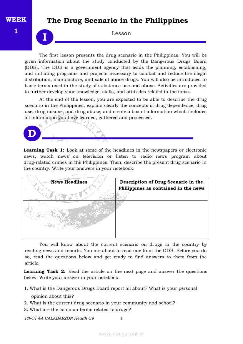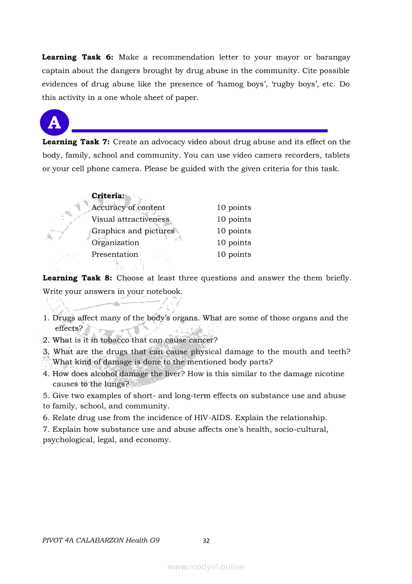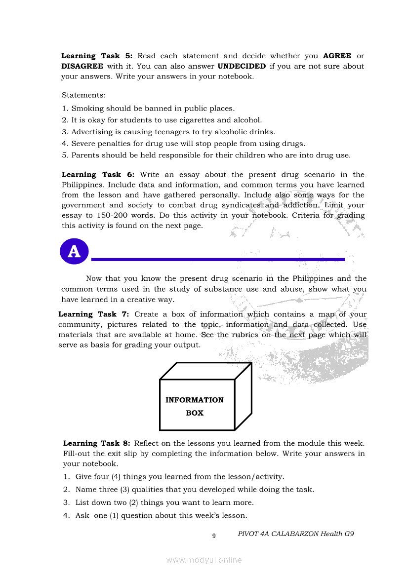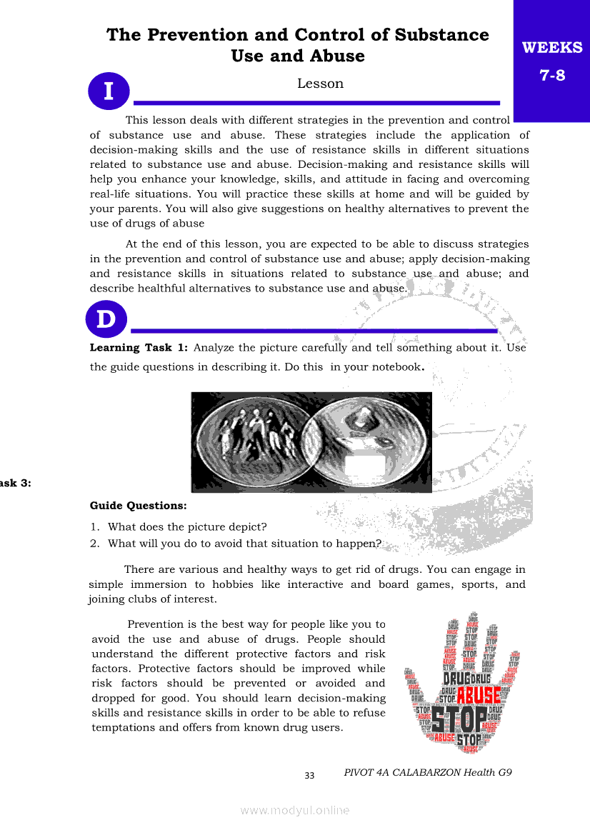 Health 9 Second Quarter Module (PIVOT)Apr 22, 2021 Grade 9Xiaomi Redmi Watch 5 Active 2inch LCD Display Clear Calling 5ATM Waterproof Smart Watch for only ₱3,999 ₱1,200!. Health 9RelatedHEALTH Fourth Quarter – Module 4b: Intentional Injury Prevention, Safety and First AidHEALTH Fourth Quarter – Module 4a: Intentional Injury Prevention, Safety and First AidHealth 9 Quarter 2 – Module 7: Decision-Making Skills and Resistance Skills to Prevent Substance Use and AbuseHealth 9 Quarter 2 – Module 1: Drug Scenario in the PhilippinesHealth 9 Quarter 2– Module 2: The Risks and Protective Factor of Using Drugs