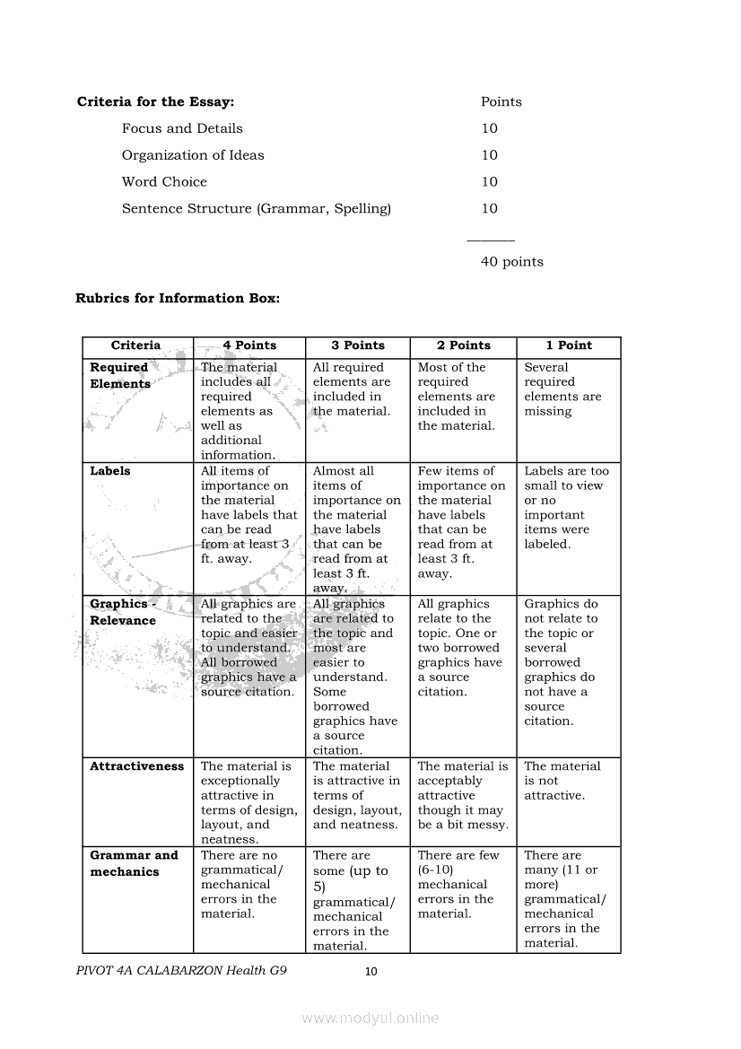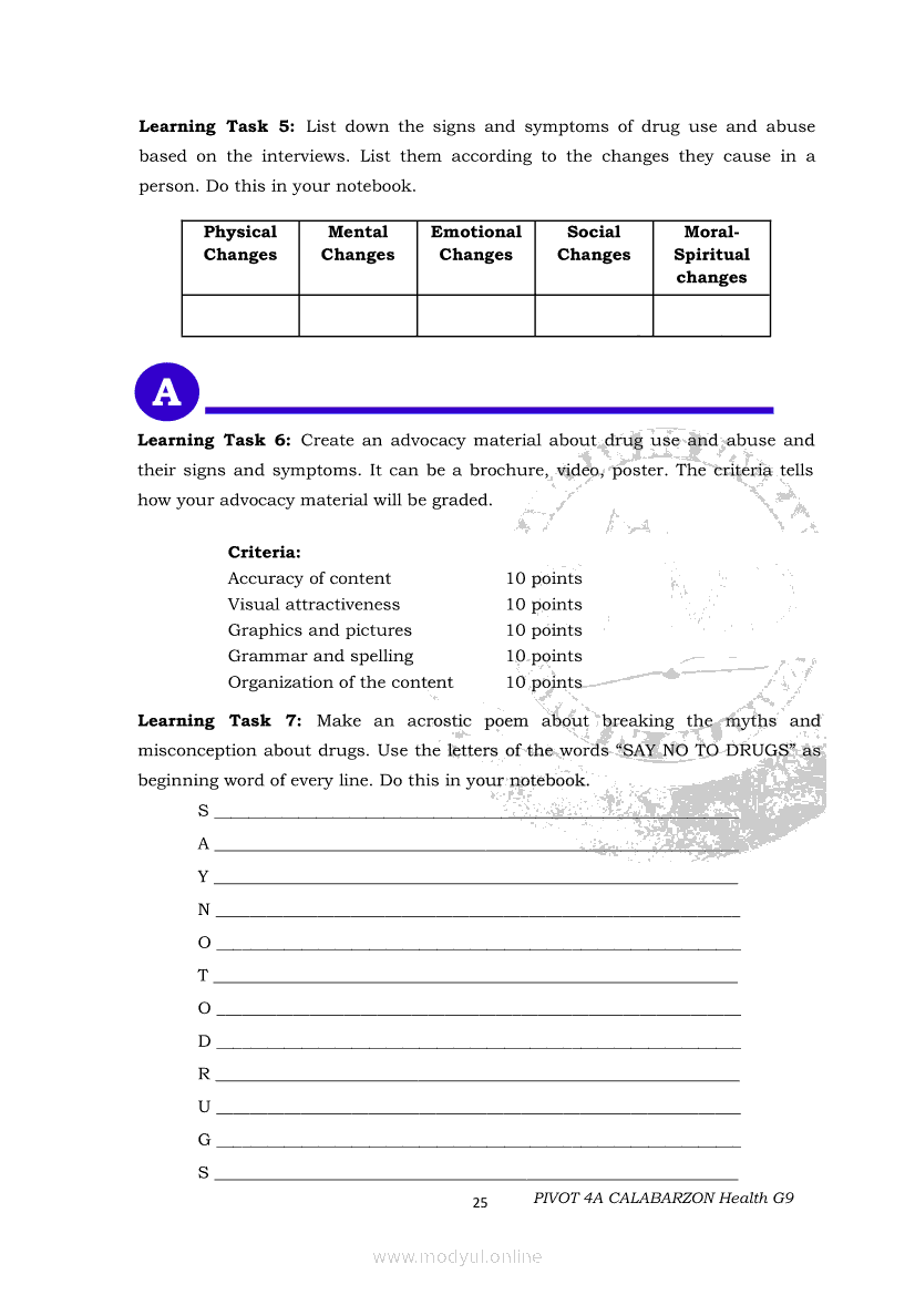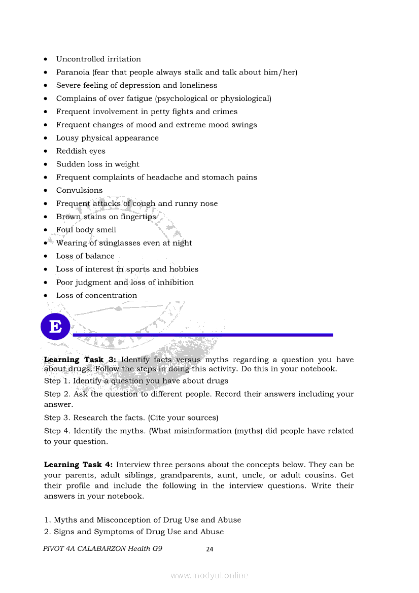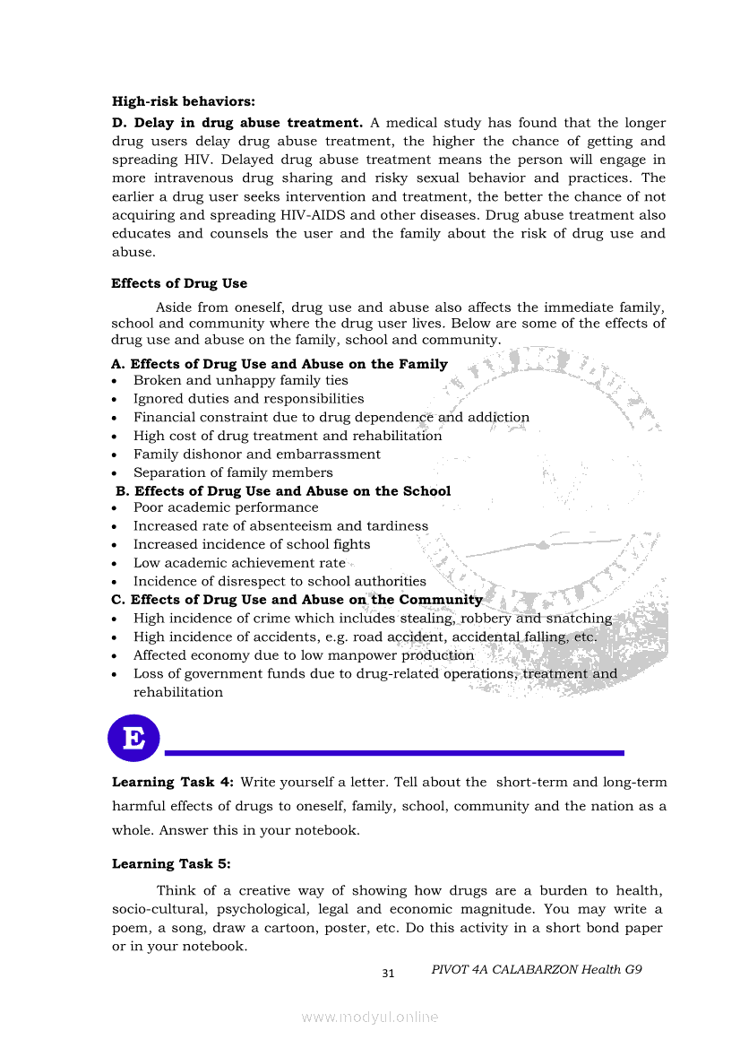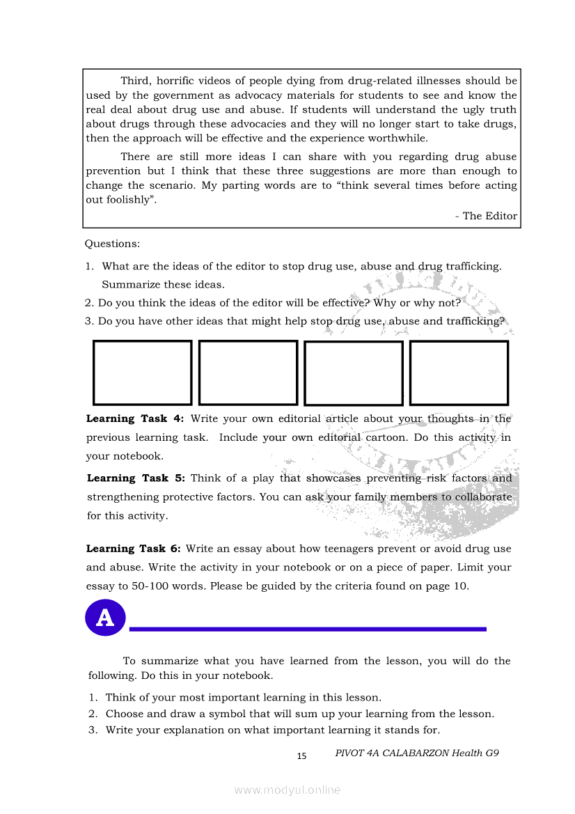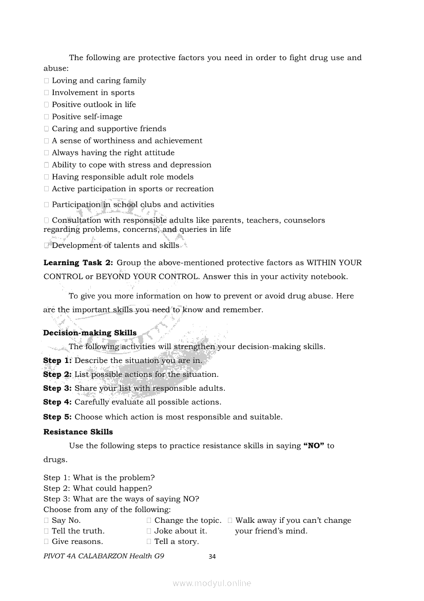 Health 9 Second Quarter Module (PIVOT)Apr 22, 2021 Grade 9Xiaomi Redmi Watch 5 Active 2inch LCD Display Clear Calling 5ATM Waterproof Smart Watch for only ₱3,999 ₱1,200!. Health 9RelatedHEALTH Fourth Quarter – Module 4b: Intentional Injury Prevention, Safety and First AidHEALTH Fourth Quarter – Module 4a: Intentional Injury Prevention, Safety and First AidHealth 9 Quarter 2 – Module 7: Decision-Making Skills and Resistance Skills to Prevent Substance Use and AbuseHealth 9 Quarter 2 – Module 1: Drug Scenario in the PhilippinesHealth 9 Quarter 2– Module 2: The Risks and Protective Factor of Using Drugs