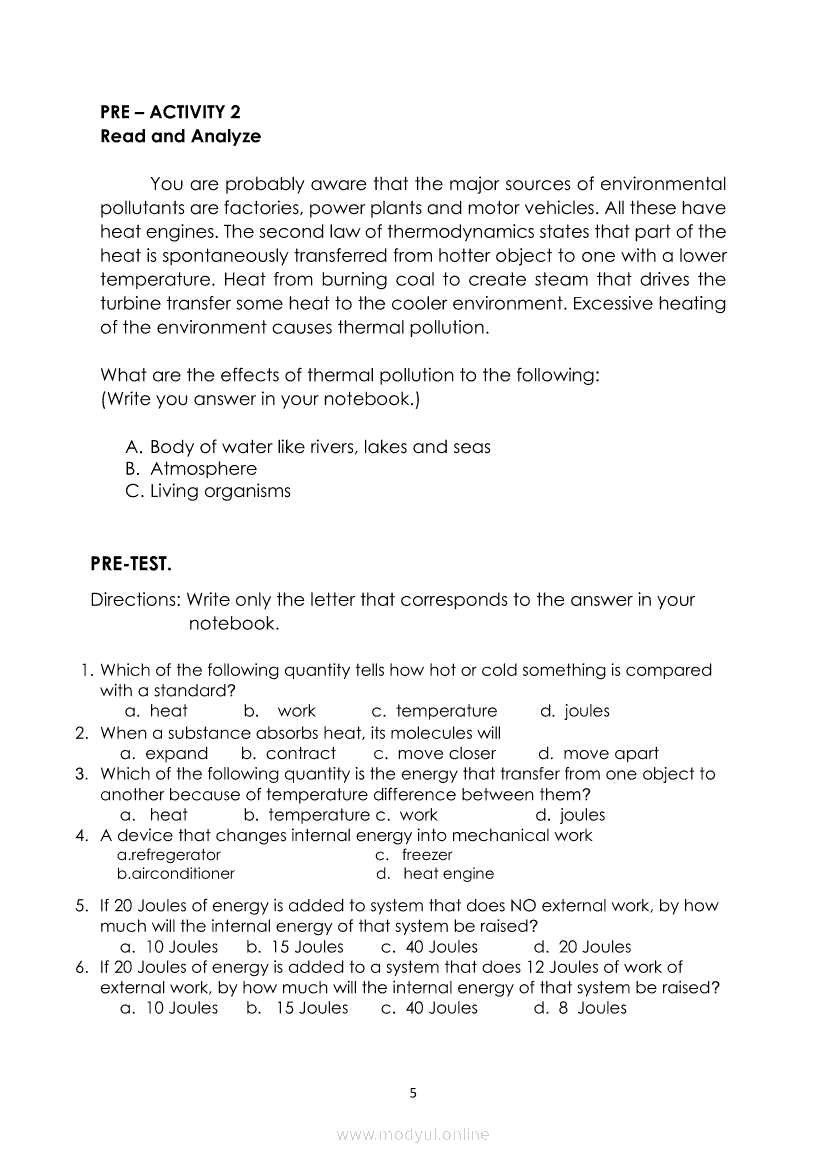 HEAT AND WORK for SCIENCE Grade 9 Quarter 4 / Week 5May 28, 2021 Grade 9Xiaomi Redmi Watch 5 Active 2inch LCD Display Clear Calling 5ATM Waterproof Smart Watch for only ₱3,999 ₱1,200!. Science 9 4th QuarterRelatedDESCRIBING PROJECTILE MOTION for SCIENCE Grade 9 Quarter 4 / Week 1HEAT ENGINES for SCIENCE Grade 9 Quarter 4 / Week 6TLE-IA-CARPENTRY Quarter 4 – Module 3 (Week 5&6) STEPS IN SETTING AND FIXING FORM PANELS AND COMPONENTS ASSEMBLYTLE-IA-SMAW Quarter 4 – Module 3 (Week 5&6) LAYING OUT BEADS ON CARBON STEEL PLATES (LO1: STRIKE AN ARC)Araling Panlipunan Ikaapat na Markahan – Modyul 4: Suliranin sa Sektor ng Agrikultura
