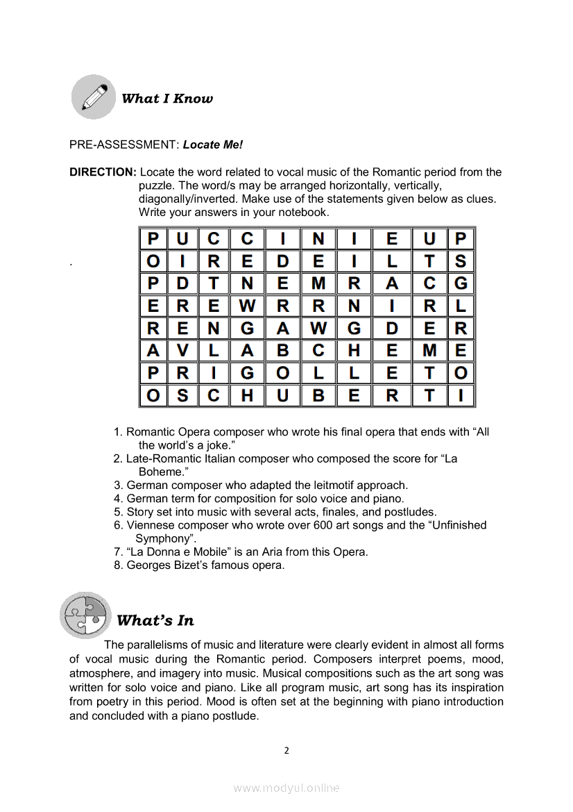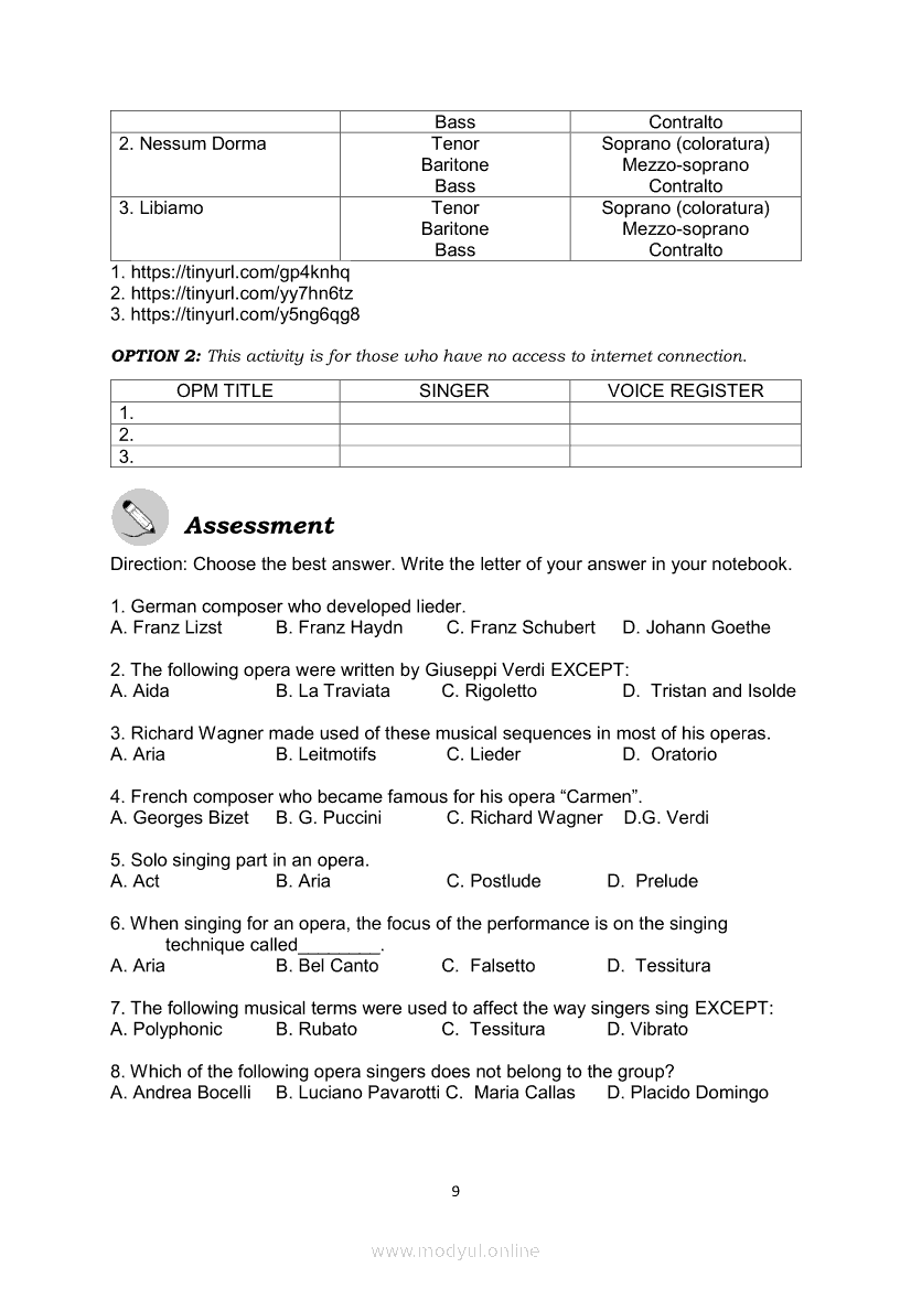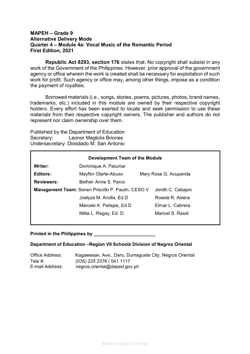 MUSIC Quarter 4 – Module 4a: Vocal Music of the Romantic PeriodMay 28, 2021 Grade 9Xiaomi Redmi Watch 5 Active 2inch LCD Display Clear Calling 5ATM Waterproof Smart Watch for only ₱3,999 ₱1,200!. Music 9 4th QuarterRelatedMUSIC Quarter 4 – Module 4b: Vocal Music of the Romantic PeriodMATHEMATICS Quarter 4 – Module 8 Solving Problems Involving Oblique Triangles Using the Law of CosinesMATHEMATICS Quarter 4 – Module 3 Angle of Elevation and Angle of DepressionARTS Quarter 4 – Module 4b: Western Classical Plays/Opera and Famous Filipino Playwrights and DirectorsEdukasyon sa Pagpapakatao Ikaapat na Markahan- Modyul 1: Mga Pansariling Salik sa Pagpili ng Track o Kursong Akademik, Teknikal-Bokasyonal, Sining at Disenyo, at Isports. (Unang Linggo)