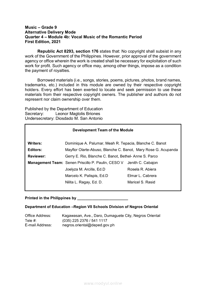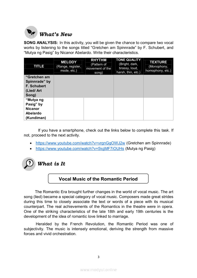 MUSIC Quarter 4 – Module 4b: Vocal Music of the Romantic PeriodMay 28, 2021 Grade 9Xiaomi Redmi Watch 5 Active 2inch LCD Display Clear Calling 5ATM Waterproof Smart Watch for only ₱3,999 ₱1,200!. Music 9 4th QuarterRelatedMUSIC Quarter 4 – Module 4a: Vocal Music of the Romantic PeriodTLE-IA-SMAW Quarter 4 – Module 2 (Week 3&4) SETTING UP WELDING EQUIPMENTMATHEMATICS Quarter 4 - Module 4 Application of Trigonometric Ratios Involving Right TrianglesMATHEMATICS Quarter 4 – Module 5 THE LAW OF SINEAraling Panlipunan Ikaapat na Markahan – Modyul 7: Ang Impormal na Sektor: Mga Dahilan at Epekto nito sa Ekonomiya