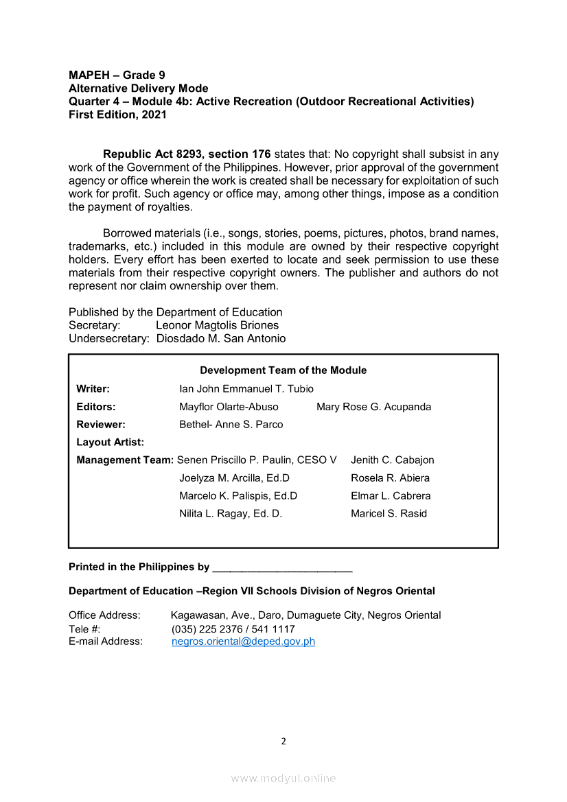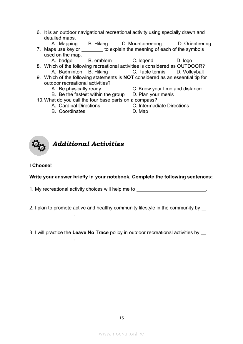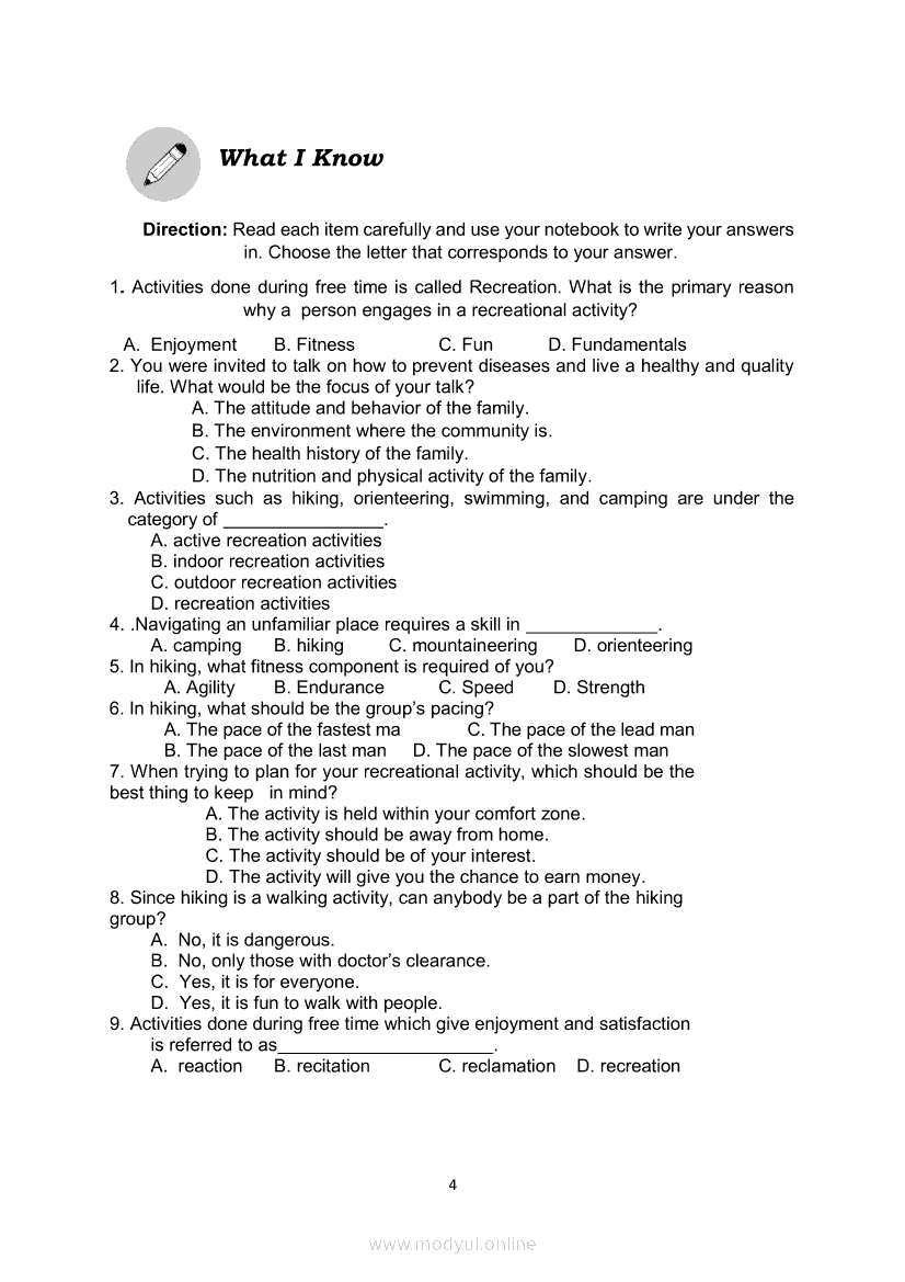 PHYSICAL EDUCATION Quarter 4 – Module 4b Active Recreation (Outdoor Recreational Activities)May 28, 2021 Grade 9Xiaomi Redmi Watch 5 Active 2inch LCD Display Clear Calling 5ATM Waterproof Smart Watch for only ₱3,999 ₱1,200!. PE 9 4th QuarterRelatedPHYSICAL EDUCATION Fourth Quarter – 4 a Active Recreation (Indoor Recreational Activities)Araling Panlipunan Ikaapat na Markahan – Modyul 8: Kalakalang PanlabasTLE-IA-CARPENTRY Quarter 4 – Module 1 (Week 1&2) PREFABRICATION OF FORMWORK PANELSTLE-Animal Production Quarter 4 – Module 3: Marketing BroilersAraling Panlipunan Ikaapat na Markahan – Modyul 2: Sama-samang Pagkilos para sa Pambansang Kaunlaran