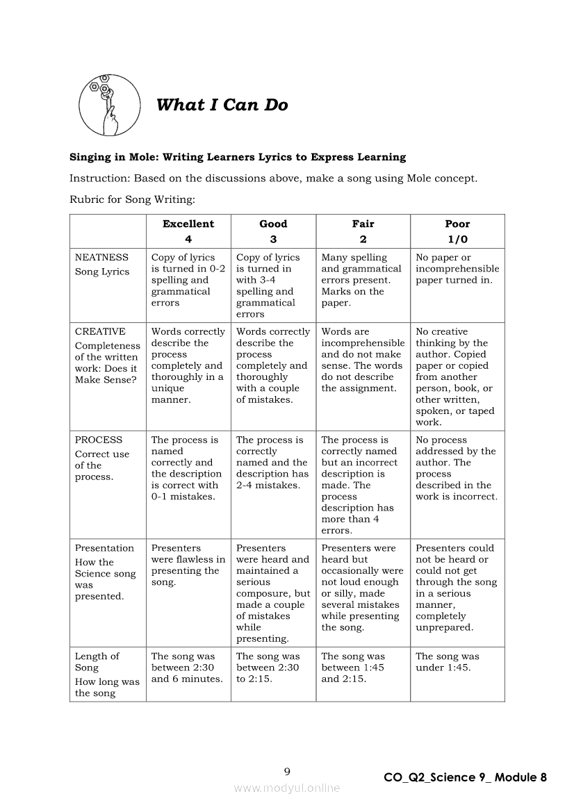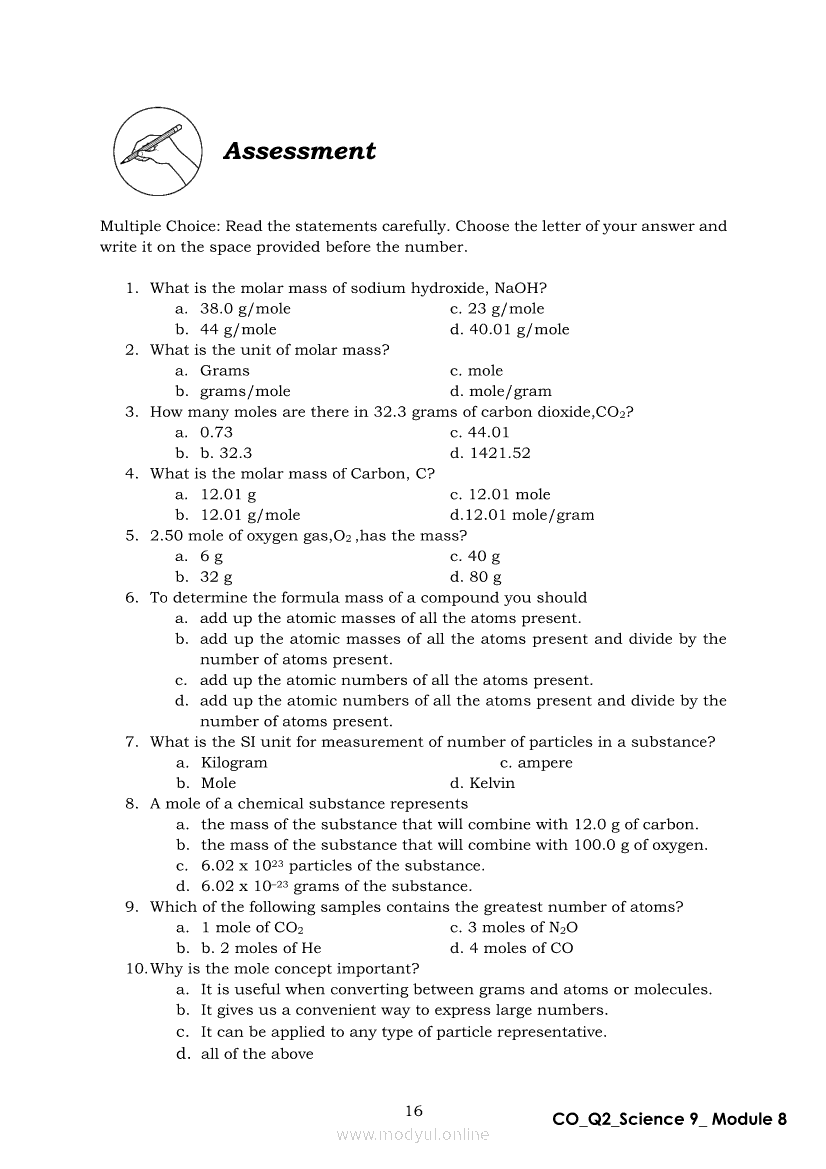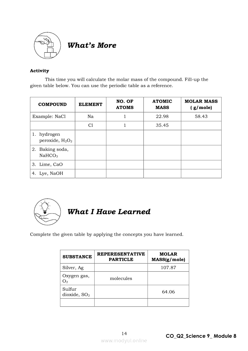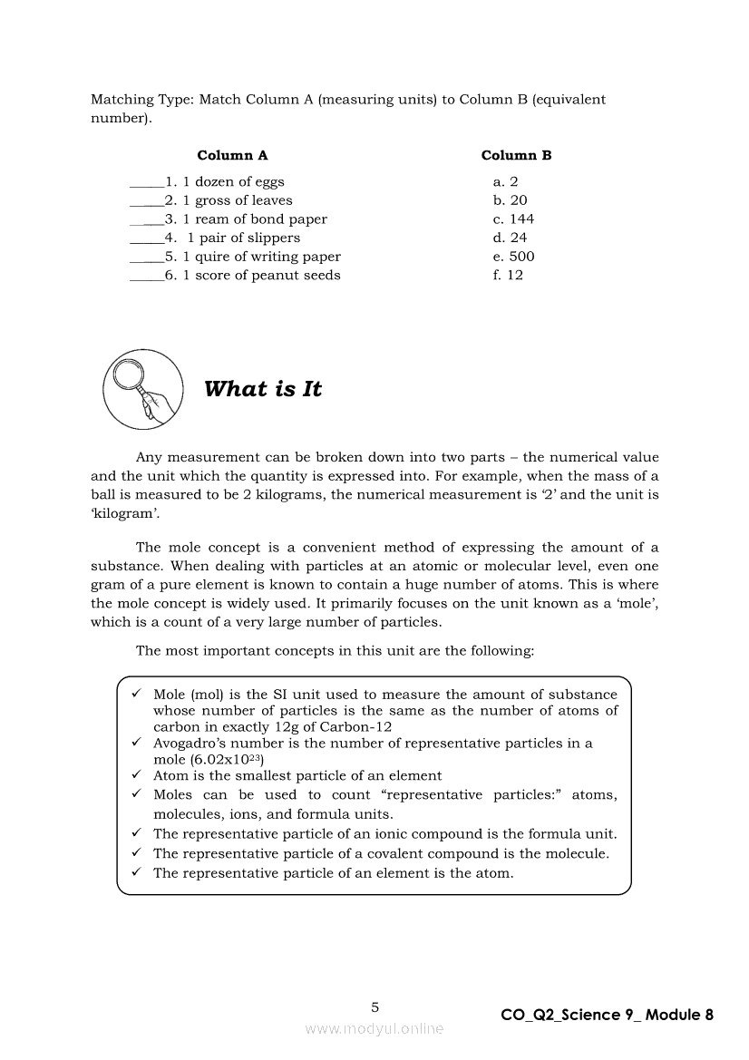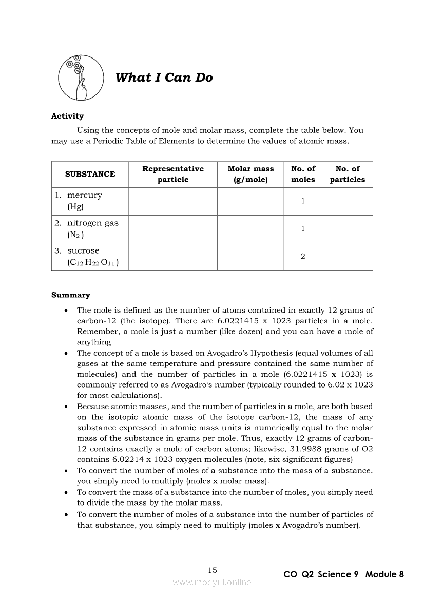 Science 9 Quarter 2 – Module 8: Mole ConceptApr 22, 2021 Grade 9Xiaomi Redmi Watch 5 Active 2inch LCD Display Clear Calling 5ATM Waterproof Smart Watch for only ₱3,999 ₱1,200!. Science 9RelatedHEAT ENGINES for SCIENCE Grade 9 Quarter 4 / Week 6DESCRIBING PROJECTILE MOTION for SCIENCE Grade 9 Quarter 4 / Week 1HEAT AND WORK for SCIENCE Grade 9 Quarter 4 / Week 5Science 9 PIVOT-Module in ScienceScience 9 Quarter 2 – Module 1: Quantum Mechanical Model of an Atom