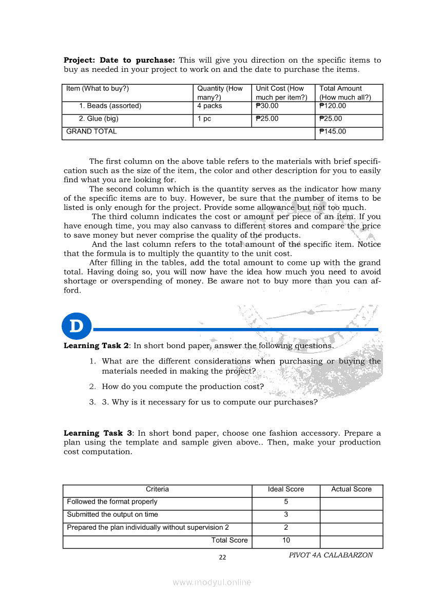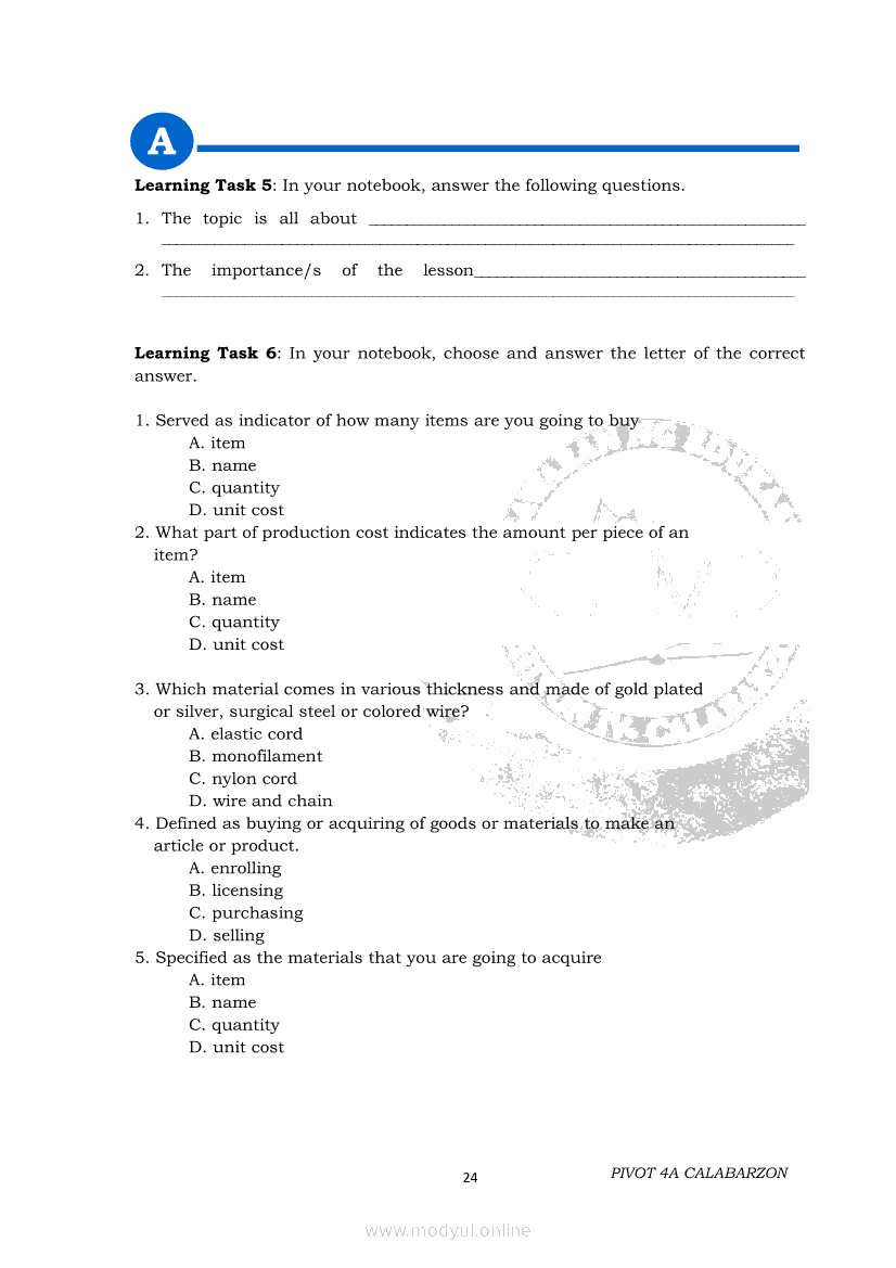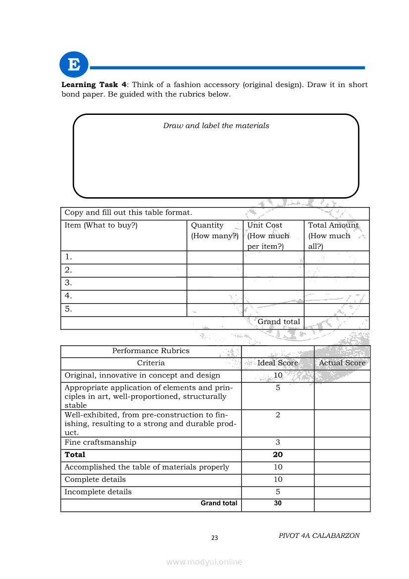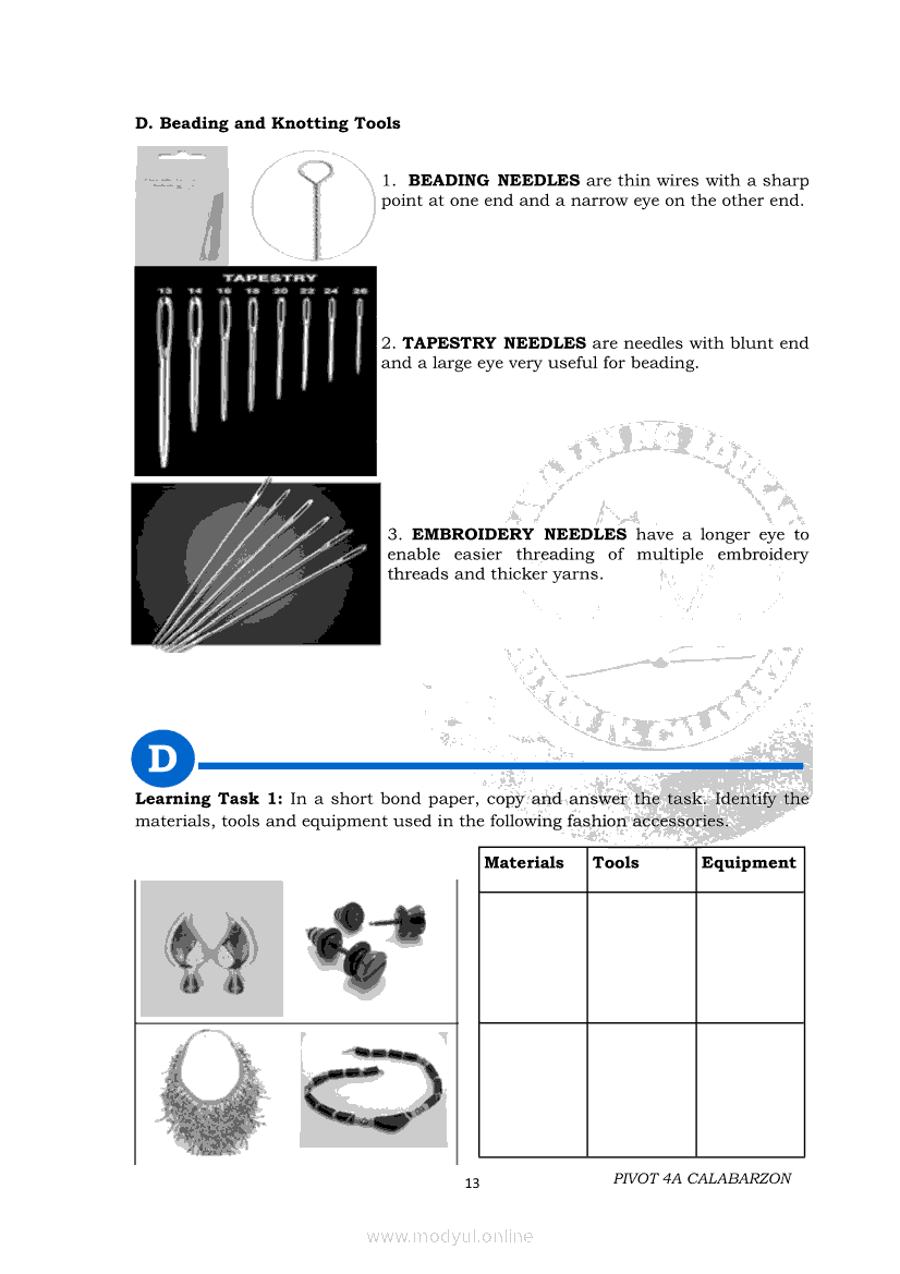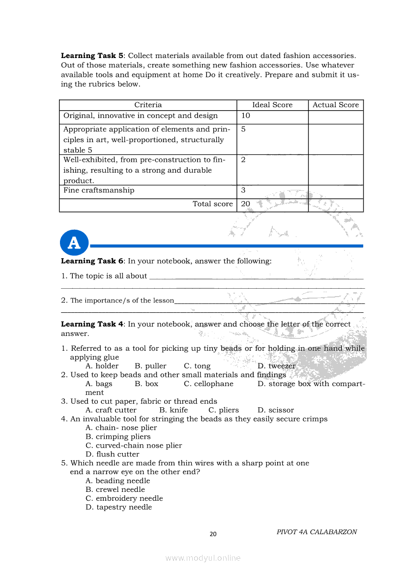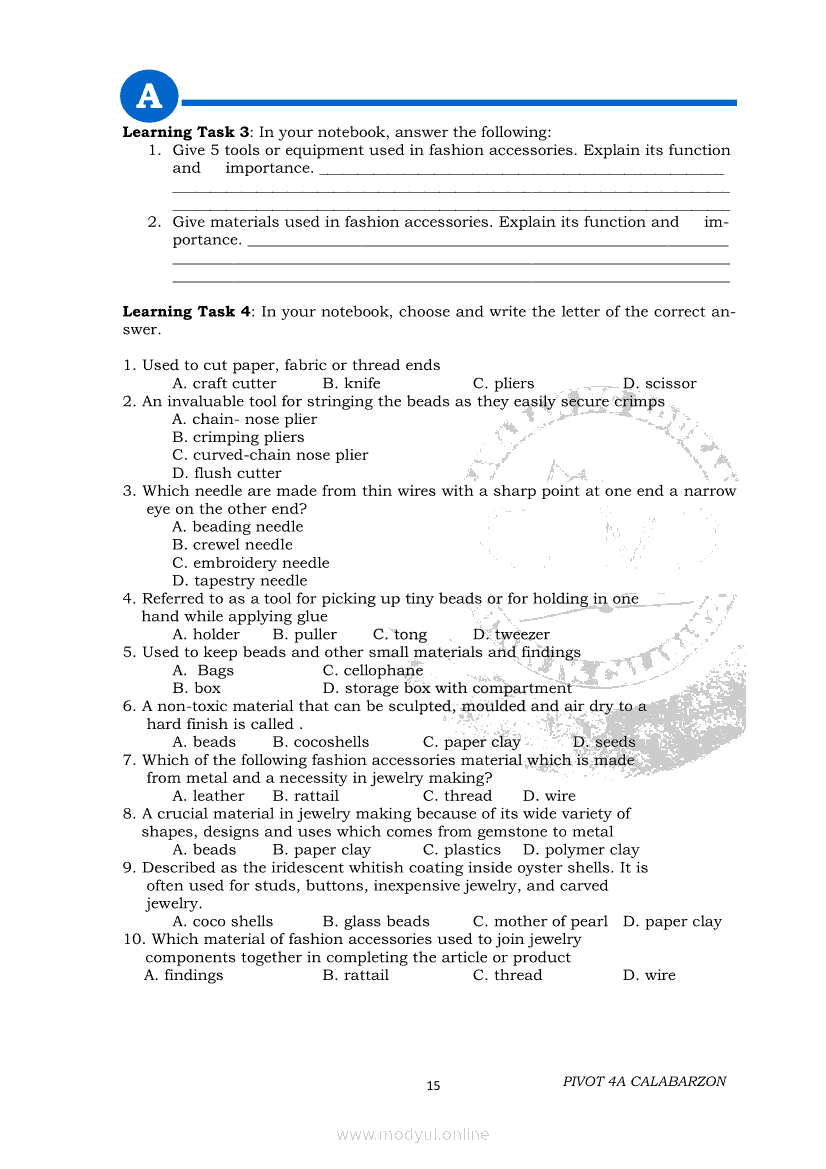 TLE 9 FASHION ACCESSORIESApr 22, 2021 Grade 9Xiaomi Redmi Watch 5 Active 2inch LCD Display Clear Calling 5ATM Waterproof Smart Watch for only ₱3,999 ₱1,200!. TLE 9RelatedTLE-AFA-AGRI CROP PRODUCTION Quarter 4 Module 1: Maintenance Activities of Farm FacilitiesTLE–IA-EIM Quarter 4 – Module 1a (Week 1-2) Philippine Electrical Code (PEC) provisions in Installing Electrical BoxesTLE – H.E.- COOKERY Quarter 4 – Module 1: PREPARE SALAD DRESSING “Perform Mise en Place”TLE-IA-CARPENTRY Quarter 4 – Module 2 (Week 3&4) ASSEMBLING FORM PANELS AND STIFFENERSTLE – ICT – CSS Quarter 4 – Module 1-4: Testing Electronic Components