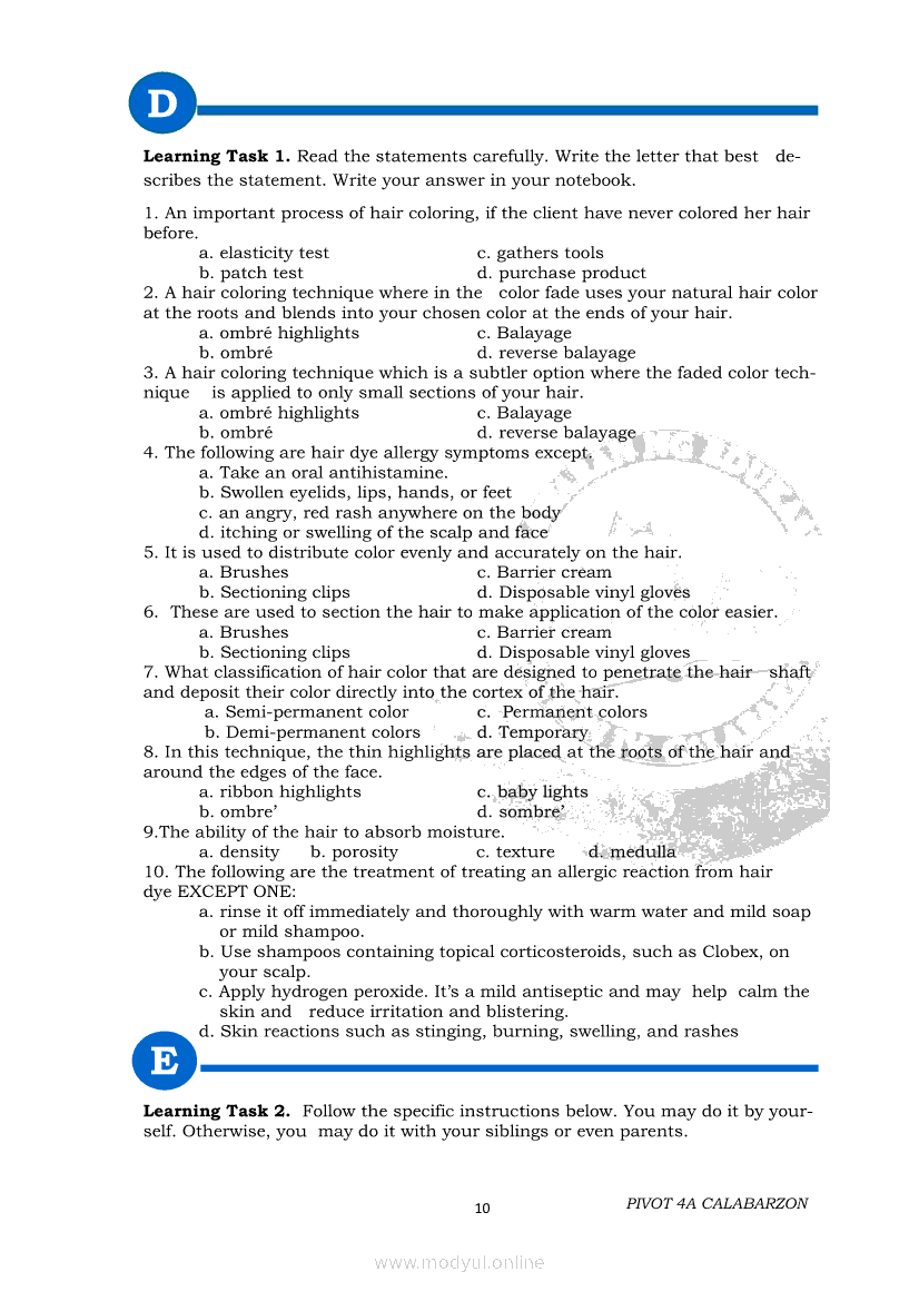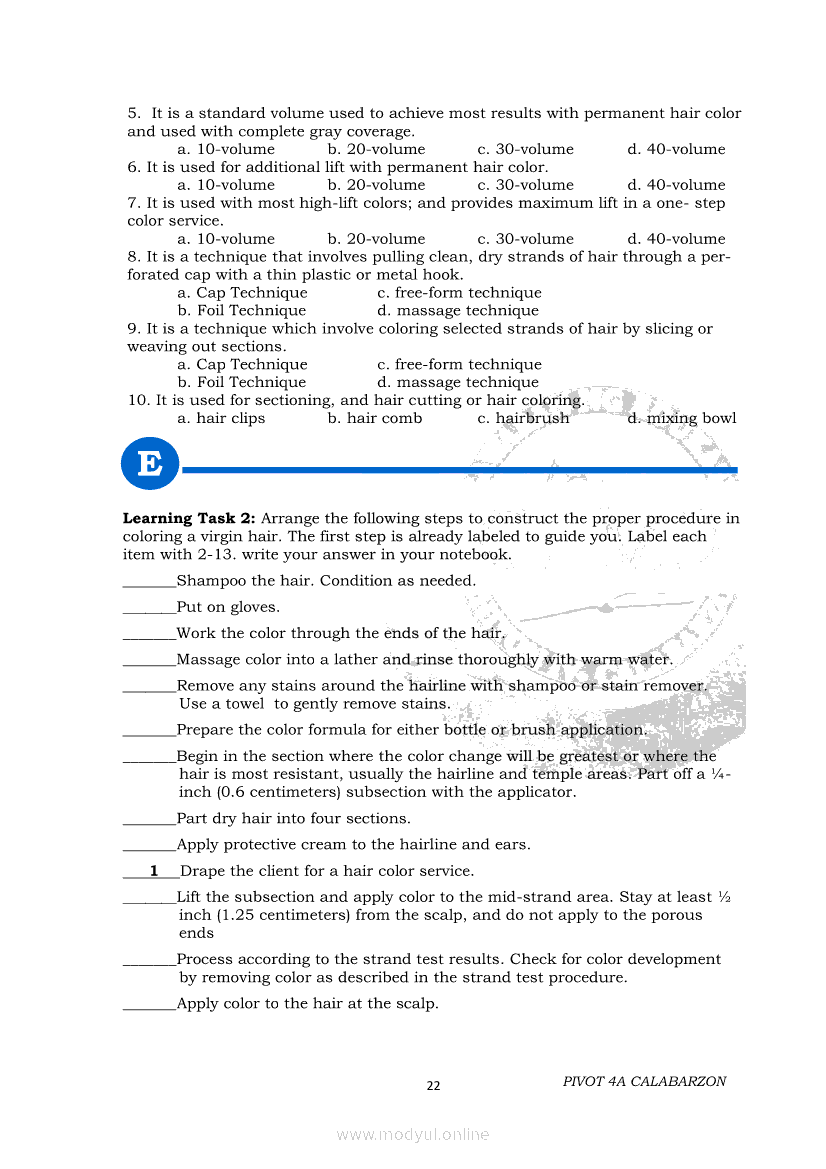 TLE 9 HAIRDRESSING IIApr 22, 2021 Grade 9Xiaomi Redmi Watch 5 Active 2inch LCD Display Clear Calling 5ATM Waterproof Smart Watch for only ₱3,999 ₱1,200!. TLE 9RelatedTLE-IA-SMAW Quarter 4 – Module 1 (Week 1&2) PREPARE WELDING CONSUMABLESTLE–IA-EIM Quarter 4 – Module 1a (Week 1-2) Philippine Electrical Code (PEC) provisions in Installing Electrical BoxesTLE-IA-SMAW Quarter 4 – Module 3 (Week 5&6) LAYING OUT BEADS ON CARBON STEEL PLATES (LO1: STRIKE AN ARC)TLE-Animal Production Quarter 4 – Module 2: Marketing EggsTLE – ICT – CSS Quarter 4 – Module 1-4: Testing Electronic Components