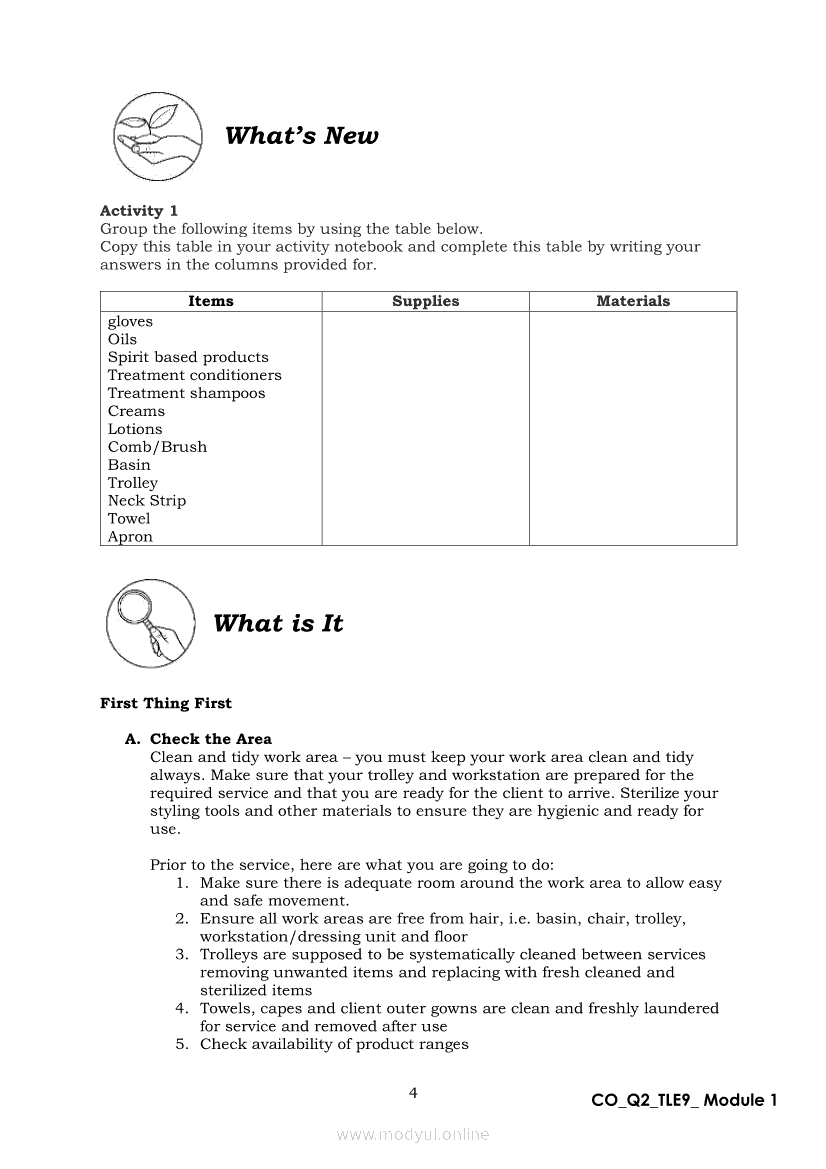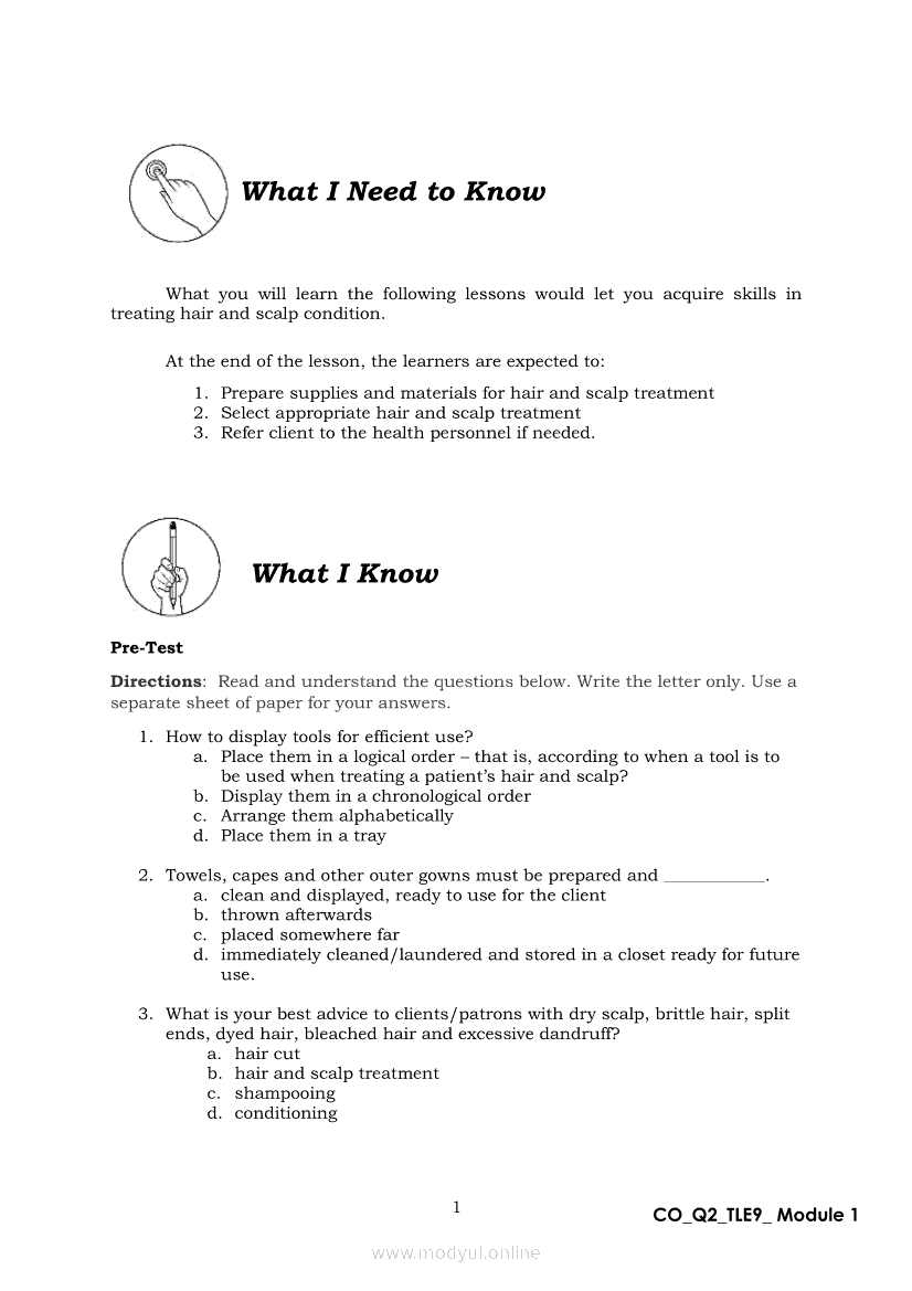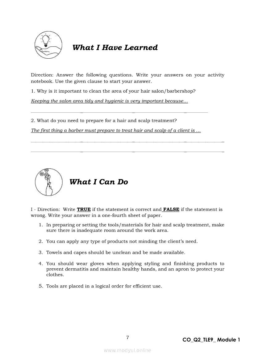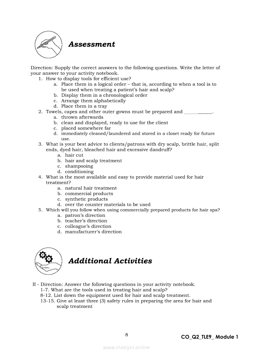 TLE 9 Quarter 2 – Module 1 Treat Hair and Scalp ConditionApr 22, 2021 Grade 9Xiaomi Redmi Watch 5 Active 2inch LCD Display Clear Calling 5ATM Waterproof Smart Watch for only ₱3,999 ₱1,200!. TLE 9RelatedTLE – ICT – CSS Quarter 4 – Module 1-4: Testing Electronic ComponentsTLE-IA-CARPENTRY Quarter 4 – Module 2 (Week 3&4) ASSEMBLING FORM PANELS AND STIFFENERSTLE-IA-CARPENTRY Quarter 4 – Module 3 (Week 5&6) STEPS IN SETTING AND FIXING FORM PANELS AND COMPONENTS ASSEMBLYTLE – H.E.- COOKERY Quarter 4 – Module 1: PREPARE SALAD DRESSING “Perform Mise en Place”TLE-IA-CARPENTRY Quarter 4 – Module 4: HAZARDS AND RISKS