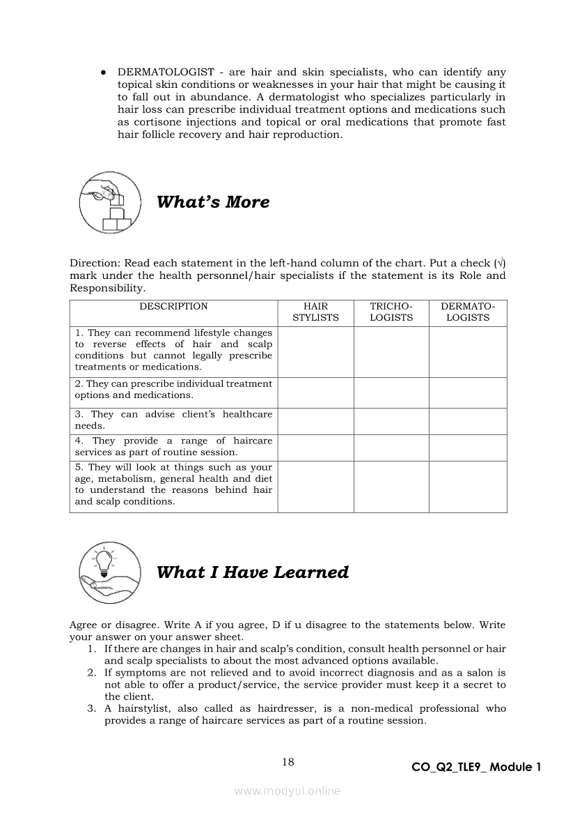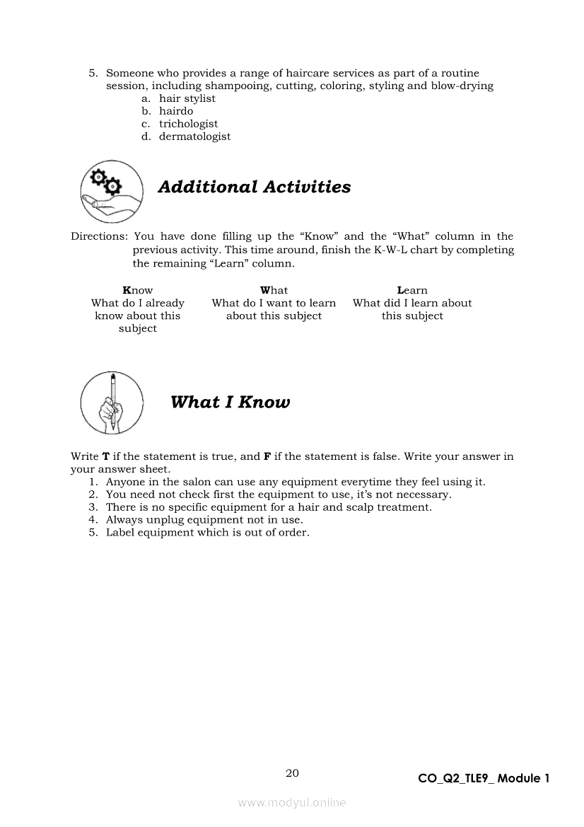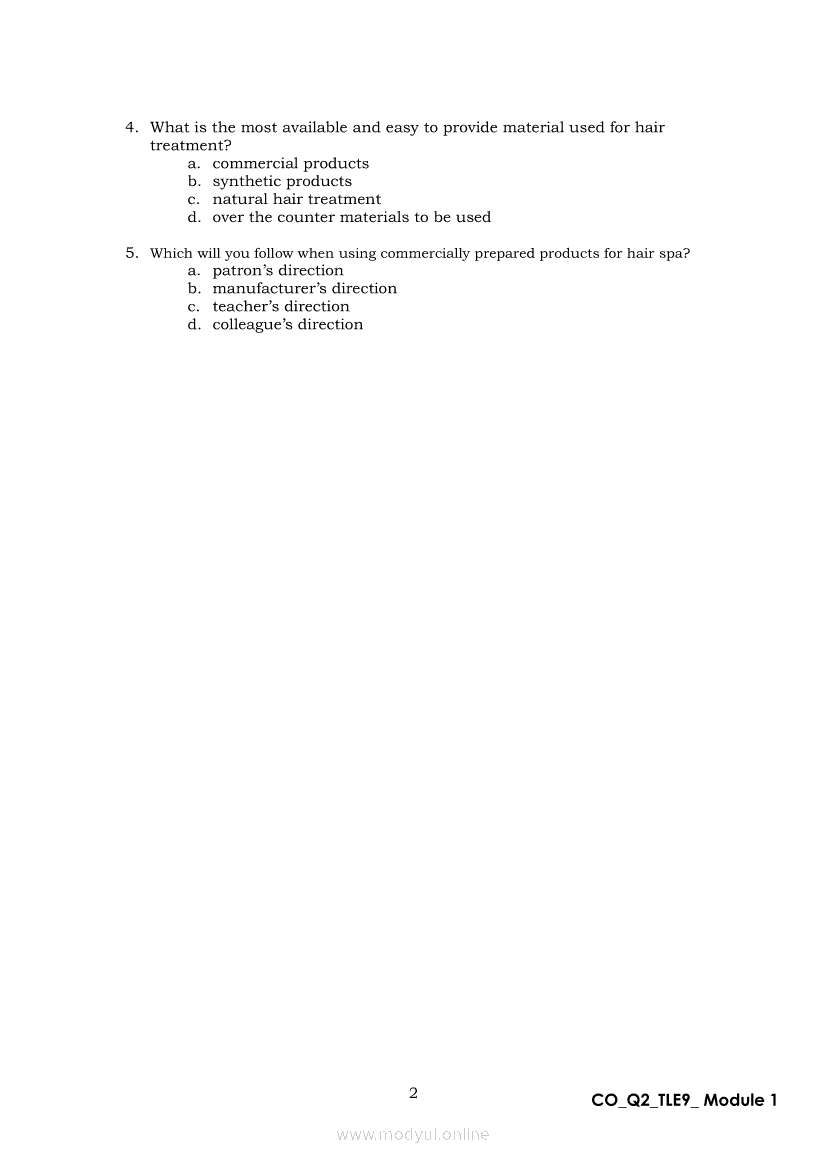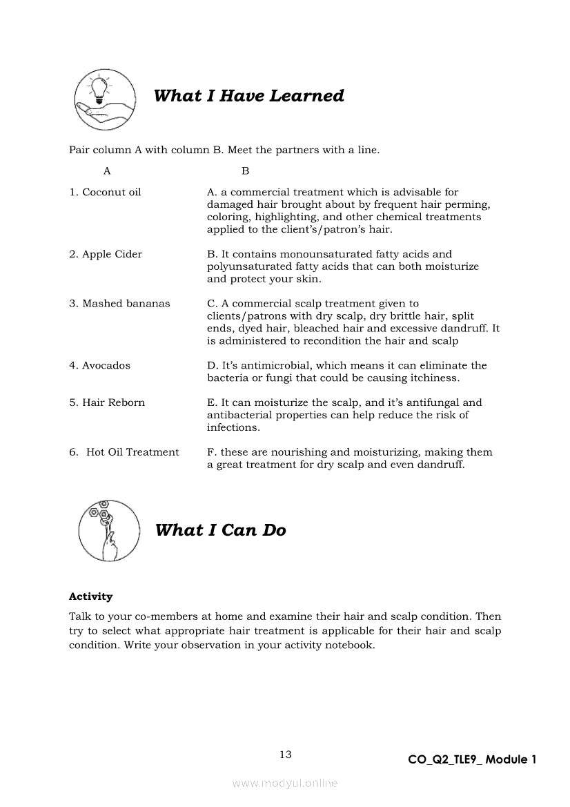 TLE 9 Quarter 2 – Module 1 Treat Hair and Scalp ConditionApr 22, 2021 Grade 9Xiaomi Redmi Watch 5 Active 2inch LCD Display Clear Calling 5ATM Waterproof Smart Watch for only ₱3,999 ₱1,200!. TLE 9RelatedTLE – ICT – CSS Quarter 4 – Module 1-4: Testing Electronic ComponentsTLE-IA-CARPENTRY Quarter 4 – Module 2 (Week 3&4) ASSEMBLING FORM PANELS AND STIFFENERSTLE-IA-CARPENTRY Quarter 4 – Module 3 (Week 5&6) STEPS IN SETTING AND FIXING FORM PANELS AND COMPONENTS ASSEMBLYTLE – H.E.- COOKERY Quarter 4 – Module 1: PREPARE SALAD DRESSING “Perform Mise en Place”TLE-IA-CARPENTRY Quarter 4 – Module 4: HAZARDS AND RISKS