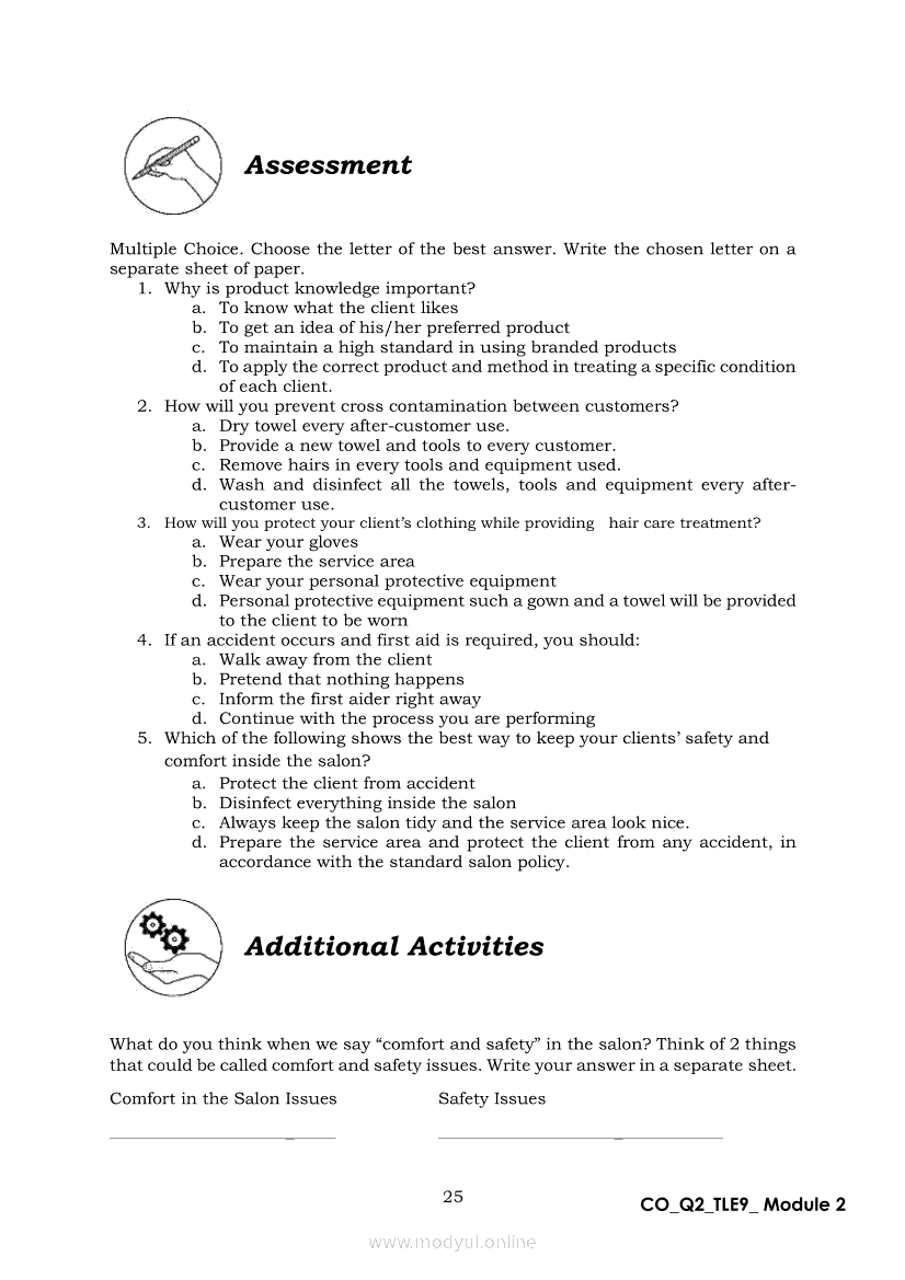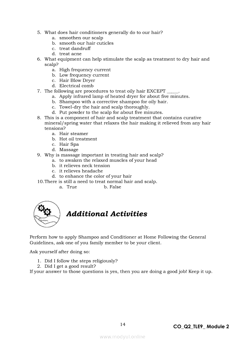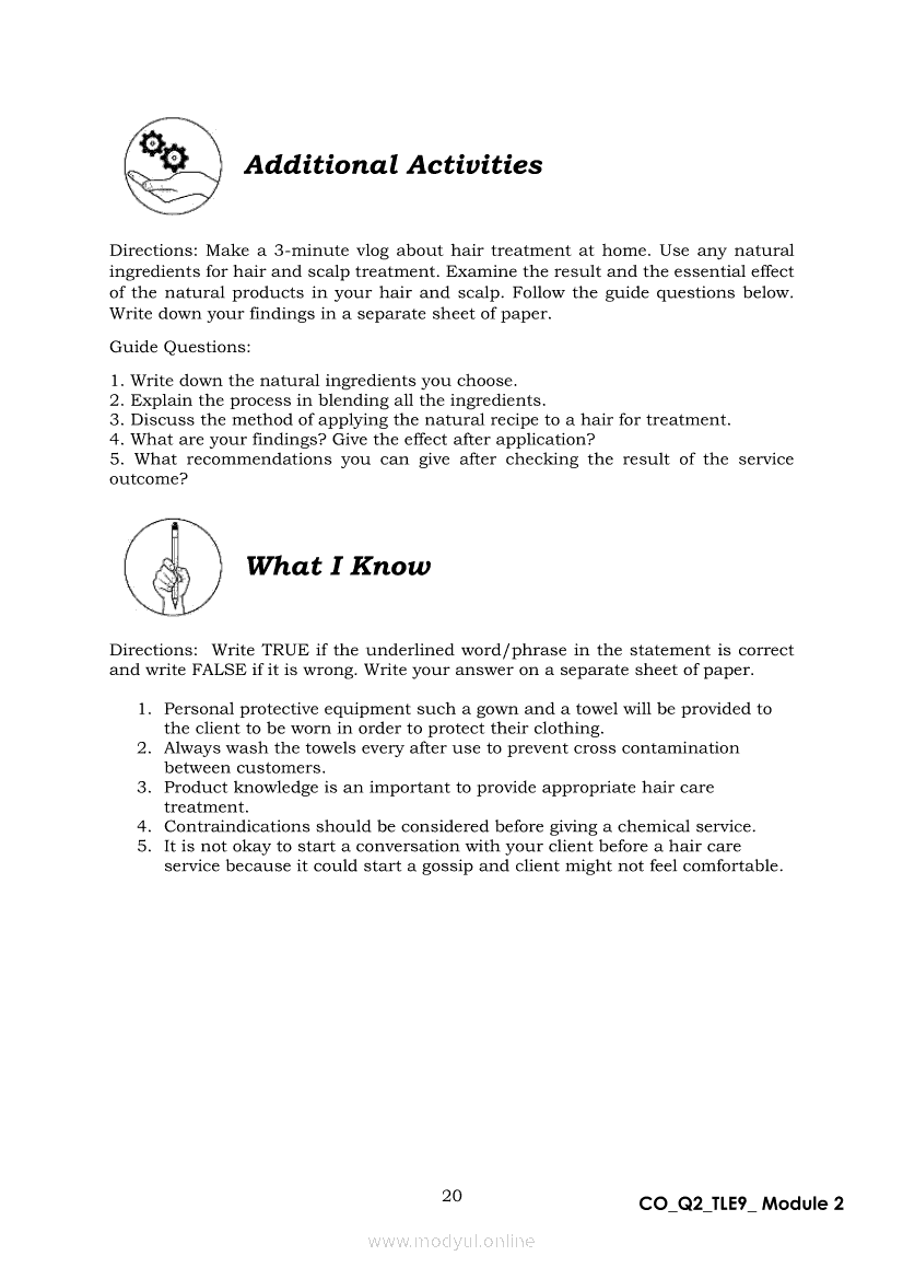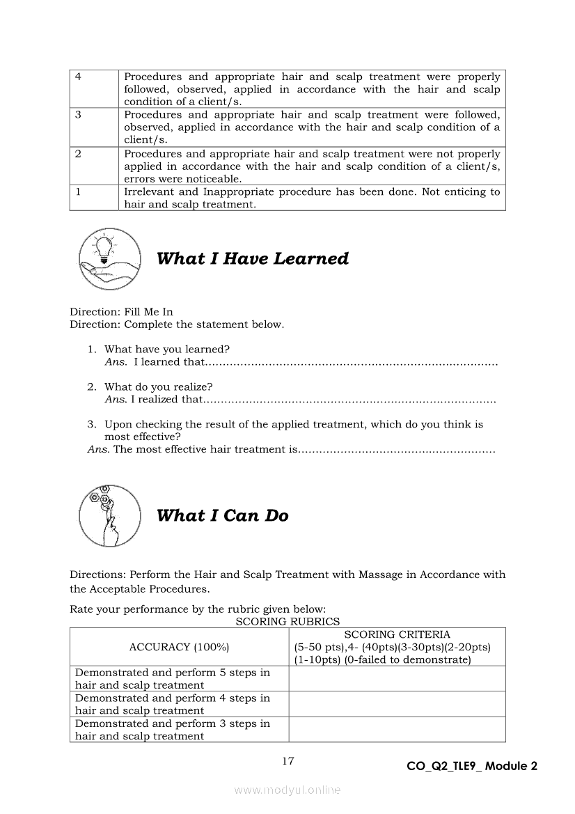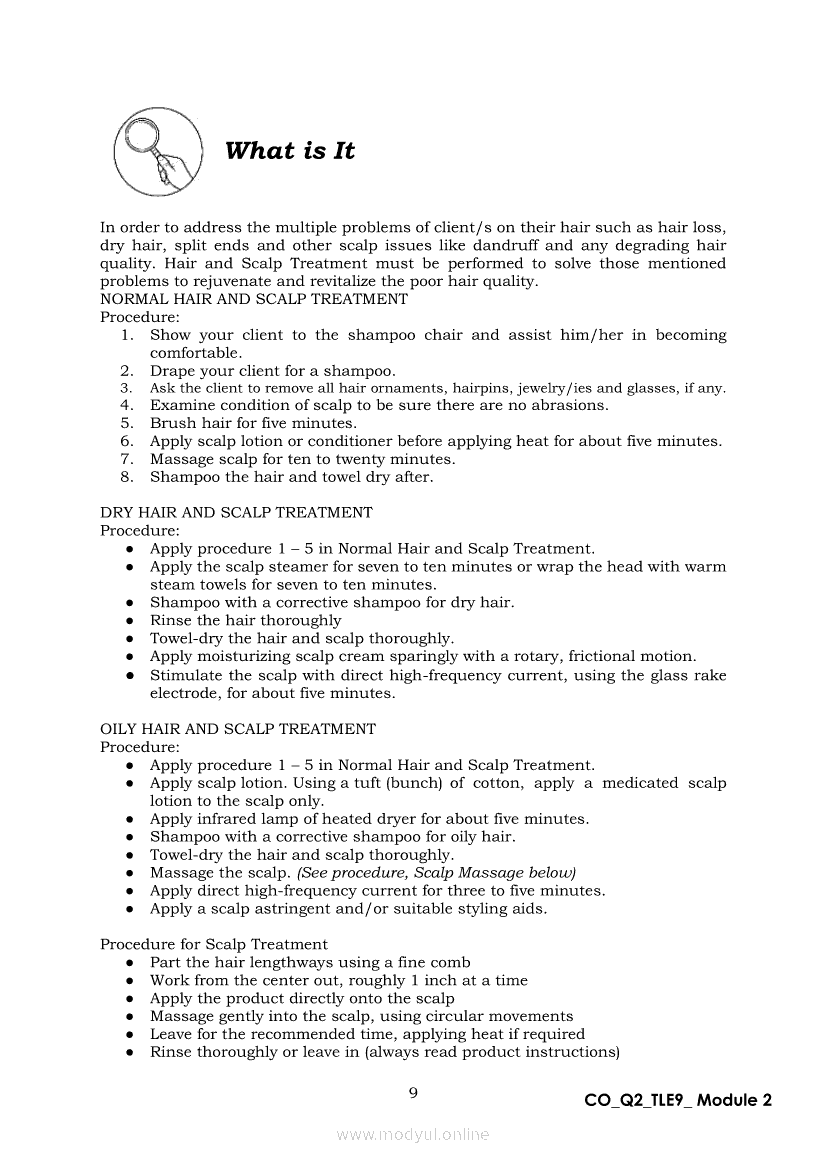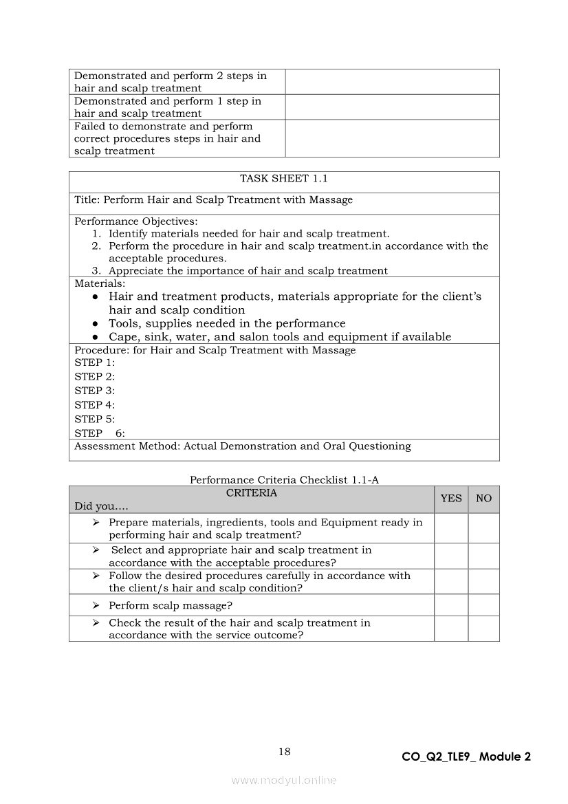 TLE 9 Quarter 2 – Module 2 Treat Hair and Scalp ConditionApr 22, 2021 Grade 9Xiaomi Redmi Watch 5 Active 2inch LCD Display Clear Calling 5ATM Waterproof Smart Watch for only ₱3,999 ₱1,200!. TLE 9RelatedTLE – H.E.- COOKERY Quarter 4 – Module 1: PREPARE SALAD DRESSING “Perform Mise en Place”TLE-AFA-AGRI CROP PRODUCTION Quarter 4 Module 1: Maintenance Activities of Farm FacilitiesTLE–IA-EIM Quarter 4 – Module 1a (Week 1-2) Philippine Electrical Code (PEC) provisions in Installing Electrical BoxesTLE-Animal Production Quarter 4 – Module 2: Marketing EggsTLE-IA-SMAW Quarter 4 – Module 3 (Week 5&6) LAYING OUT BEADS ON CARBON STEEL PLATES (LO1: STRIKE AN ARC)