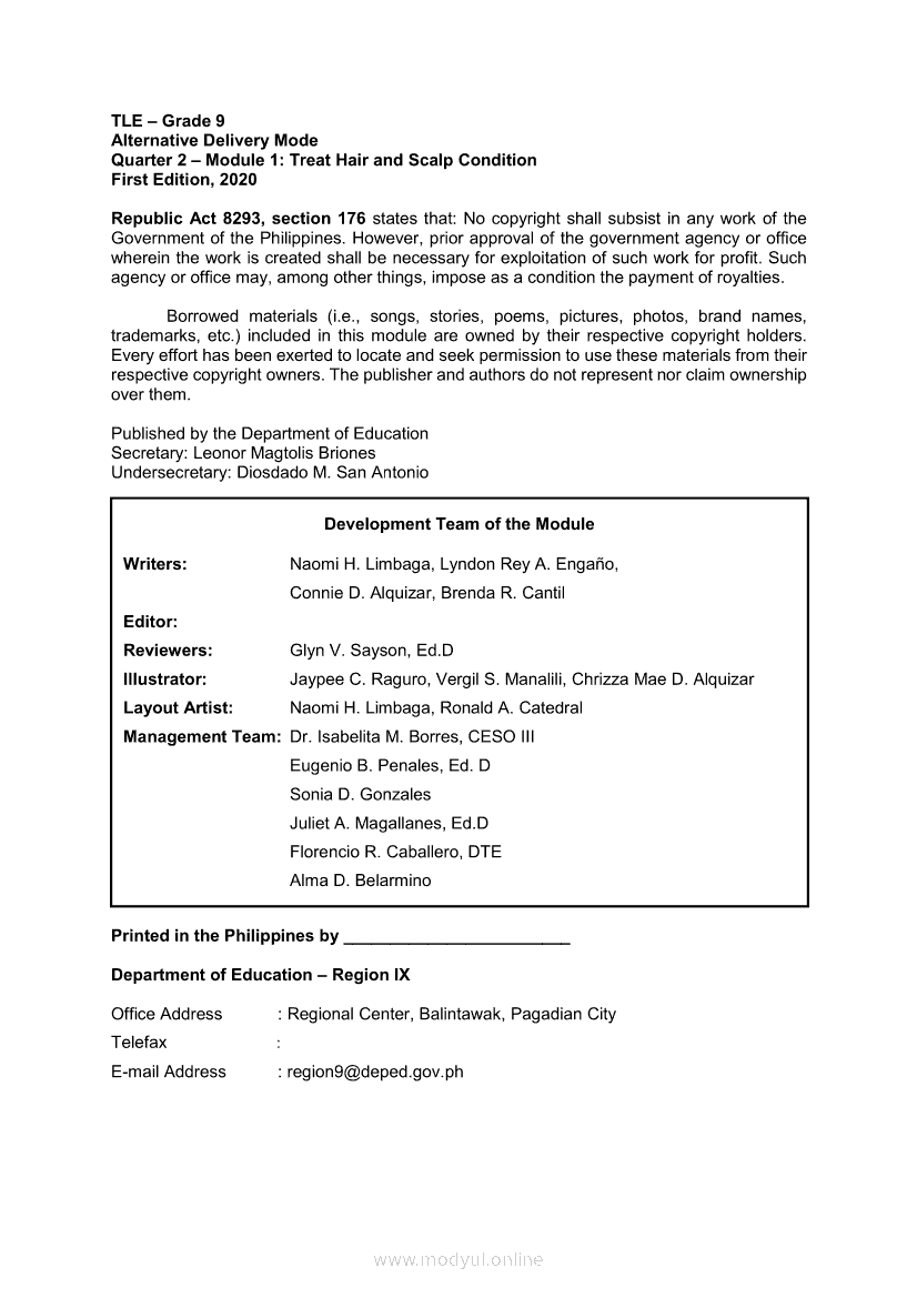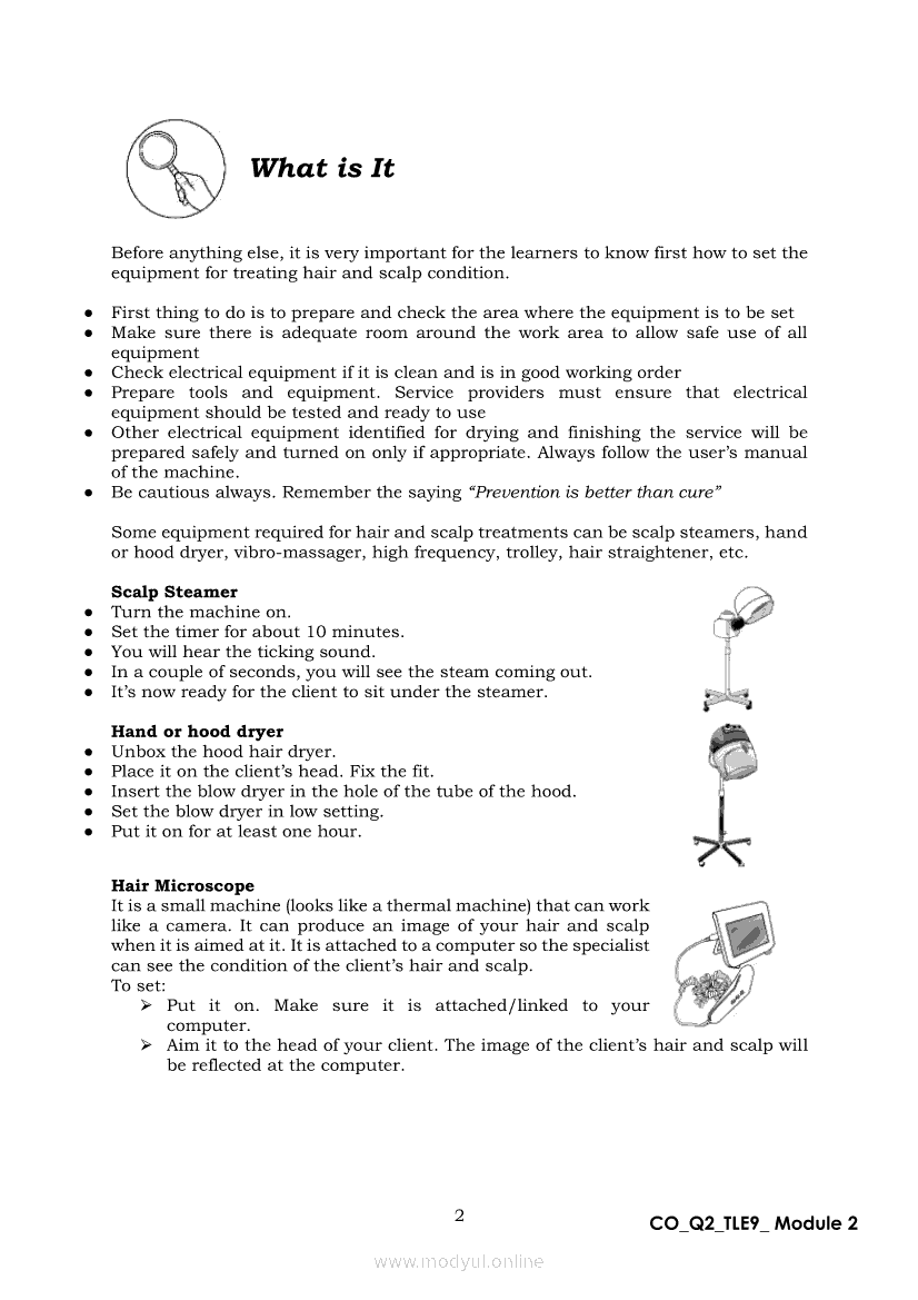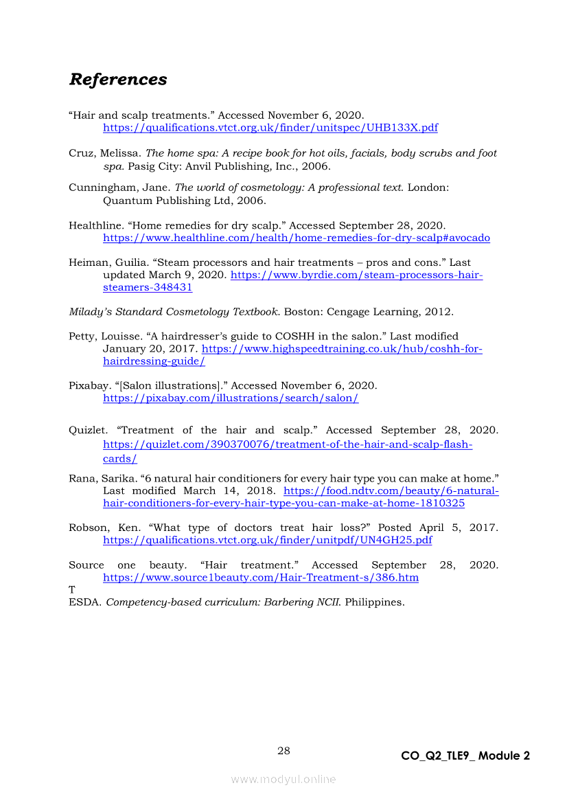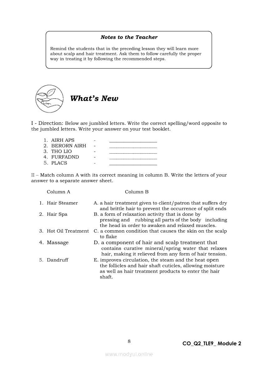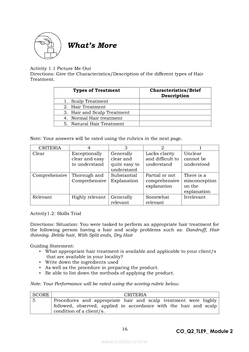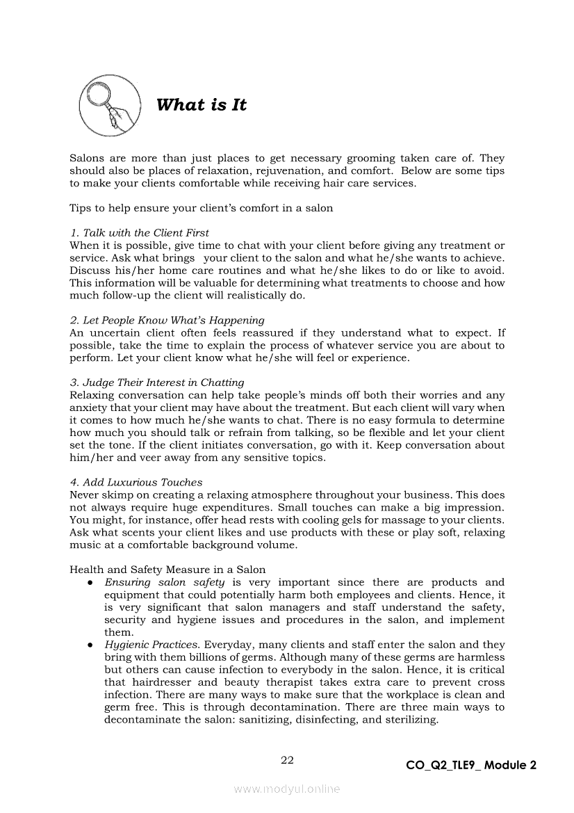 TLE 9 Quarter 2 – Module 2 Treat Hair and Scalp ConditionApr 22, 2021 Grade 9Xiaomi Redmi Watch 5 Active 2inch LCD Display Clear Calling 5ATM Waterproof Smart Watch for only ₱3,999 ₱1,200!. TLE 9RelatedTLE – H.E.- COOKERY Quarter 4 – Module 1: PREPARE SALAD DRESSING “Perform Mise en Place”TLE-AFA-AGRI CROP PRODUCTION Quarter 4 Module 1: Maintenance Activities of Farm FacilitiesTLE–IA-EIM Quarter 4 – Module 1a (Week 1-2) Philippine Electrical Code (PEC) provisions in Installing Electrical BoxesTLE-Animal Production Quarter 4 – Module 2: Marketing EggsTLE-IA-SMAW Quarter 4 – Module 3 (Week 5&6) LAYING OUT BEADS ON CARBON STEEL PLATES (LO1: STRIKE AN ARC)