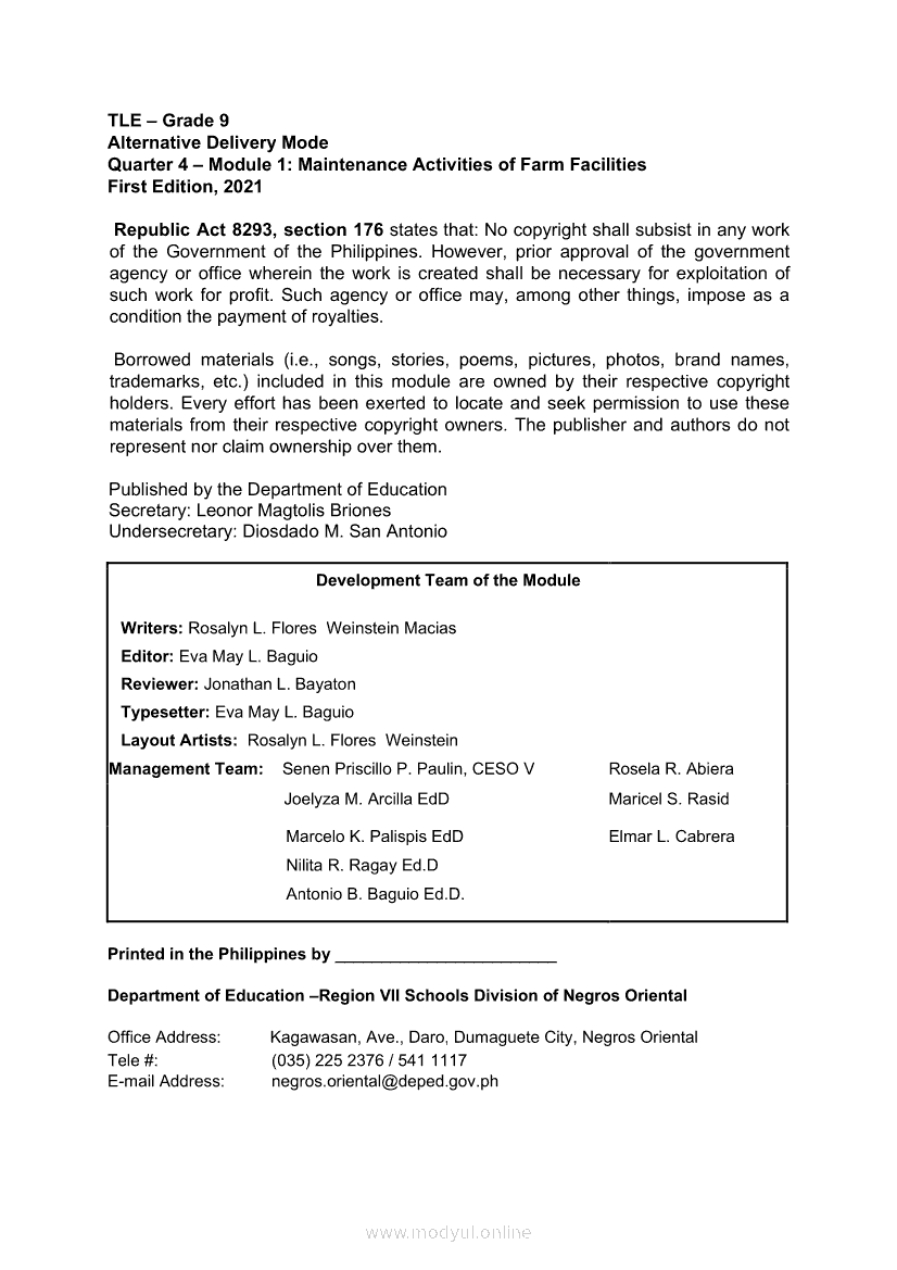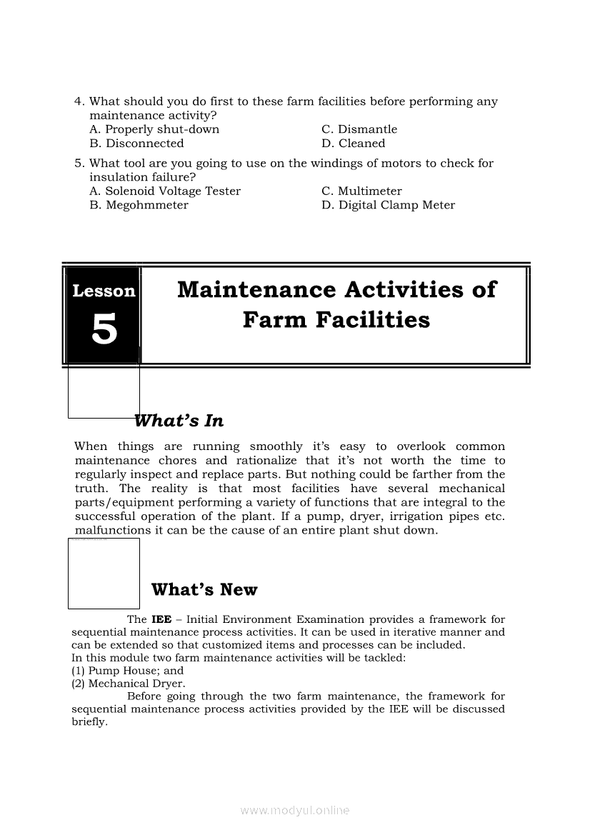 TLE-AFA-AGRI CROP PRODUCTION Quarter 4 Module 1: Maintenance Activities of Farm FacilitiesMay 28, 2021 Grade 9Xiaomi Redmi Watch 5 Active 2inch LCD Display Clear Calling 5ATM Waterproof Smart Watch for only ₱3,999 ₱1,200!. TLE 9 4th QuarterRelatedTLE-HE BEAUTY CARE Nail Care Services Quarter 4 – Module 2: NAIL DESIGNING TOOLSTLE-IA-AUTOMOTIVE SERVICING NC 1 Quarter 4 – Module 5,6,7 & 8 PARTS OF AN ENGINETLE-IA-CARPENTRY Quarter 4 – Module 2 (Week 3&4) ASSEMBLING FORM PANELS AND STIFFENERSTLE-AFAAGRI-CROP PRODUCTION QUARTER 4 MODULE 2 Storage HouseTLE-IA-CARPENTRY Quarter 4 – Module 1 (Week 1&2) PREFABRICATION OF FORMWORK PANELS