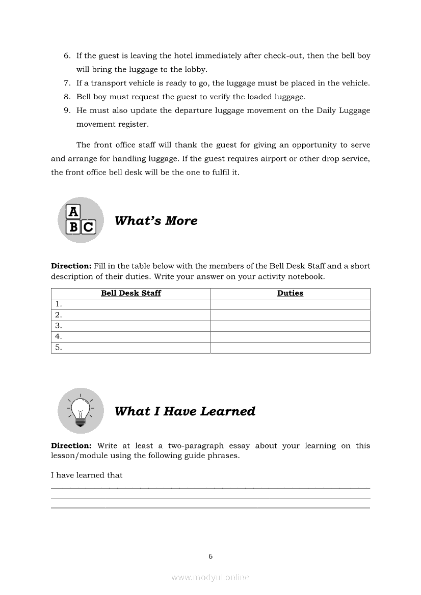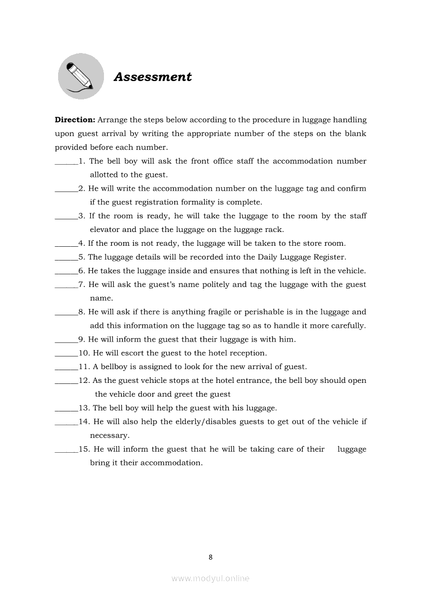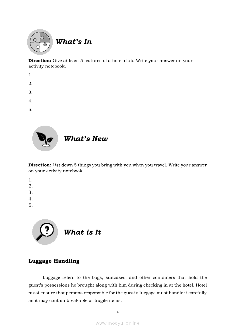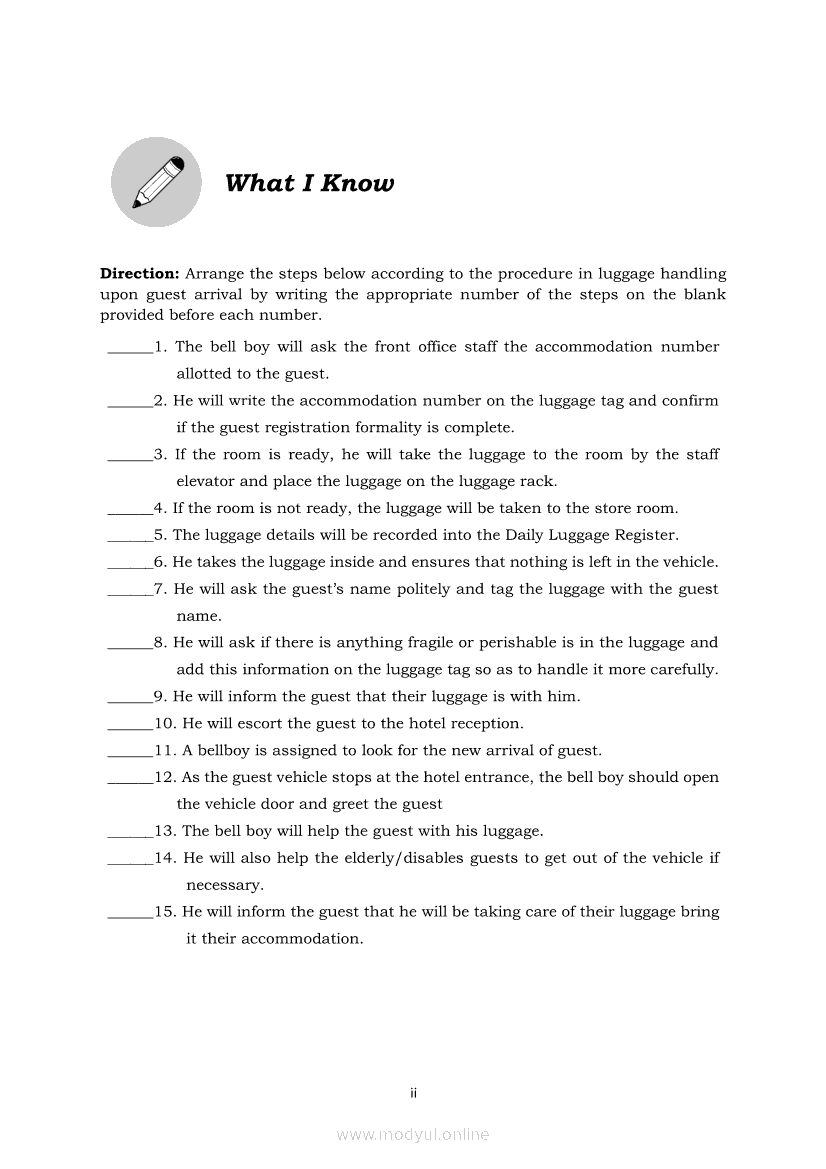 TLE – HE – FRONT OFFICE SERVICES Quarter 4 – Module 1: PROVIDE PORTER SERVICES Hotel Procedures for Handling LuggageMay 28, 2021 Grade 9Xiaomi Redmi Watch 5 Active 2inch LCD Display Clear Calling 5ATM Waterproof Smart Watch for only ₱3,999 ₱1,200!. TLE 9 4th QuarterRelatedTLE-IA-CARPENTRY Quarter 4 – Module 2 (Week 3&4) ASSEMBLING FORM PANELS AND STIFFENERSTLE-IA-SMAW Quarter 4 – Module 4 (Week 7&8) DEPOSIT STRAIGHT BEADTLE-AFAAGRI-CROP PRODUCTION QUARTER 4 MODULE 2 Storage HouseTLE-HE BEAUTY CARE Nail Care Services Quarter 4 – Module 2: NAIL DESIGNING TOOLSTLE-Animal Production Quarter 4 – Module 3: Marketing Broilers