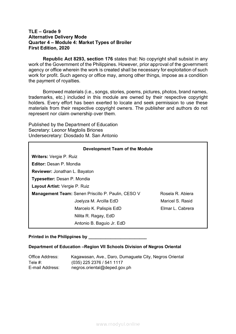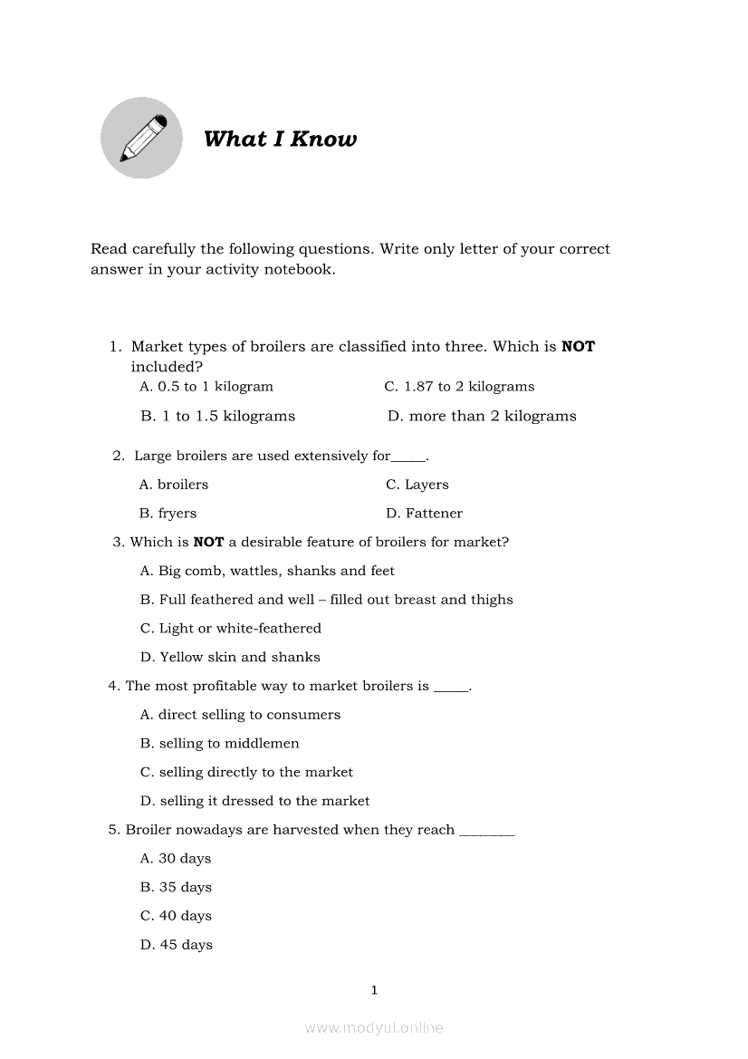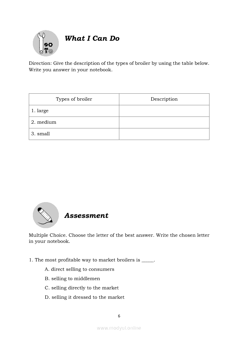 TLE Quarter 4 – Module 4: Market Types of BroilerMay 28, 2021 Grade 9Xiaomi Redmi Watch 5 Active 2inch LCD Display Clear Calling 5ATM Waterproof Smart Watch for only ₱3,999 ₱1,200!. TLE 9 4th QuarterRelatedTLE – ICT – CSS Quarter 4 – Module 1-4: Testing Electronic ComponentsTLE-Animal Production Quarter 4 – Module 2: Marketing EggsTLE-IA-CARPENTRY Quarter 4 – Module 3 (Week 5&6) STEPS IN SETTING AND FIXING FORM PANELS AND COMPONENTS ASSEMBLYTLE-Animal Production Quarter 4 – Module 5: Identify/Accomplish Records to Keep in Poultry EnterpriseTLE-IA-AUTOMOTIVE SERVICING NC 1 Quarter 4 – Module 5,6,7 & 8 PARTS OF AN ENGINE